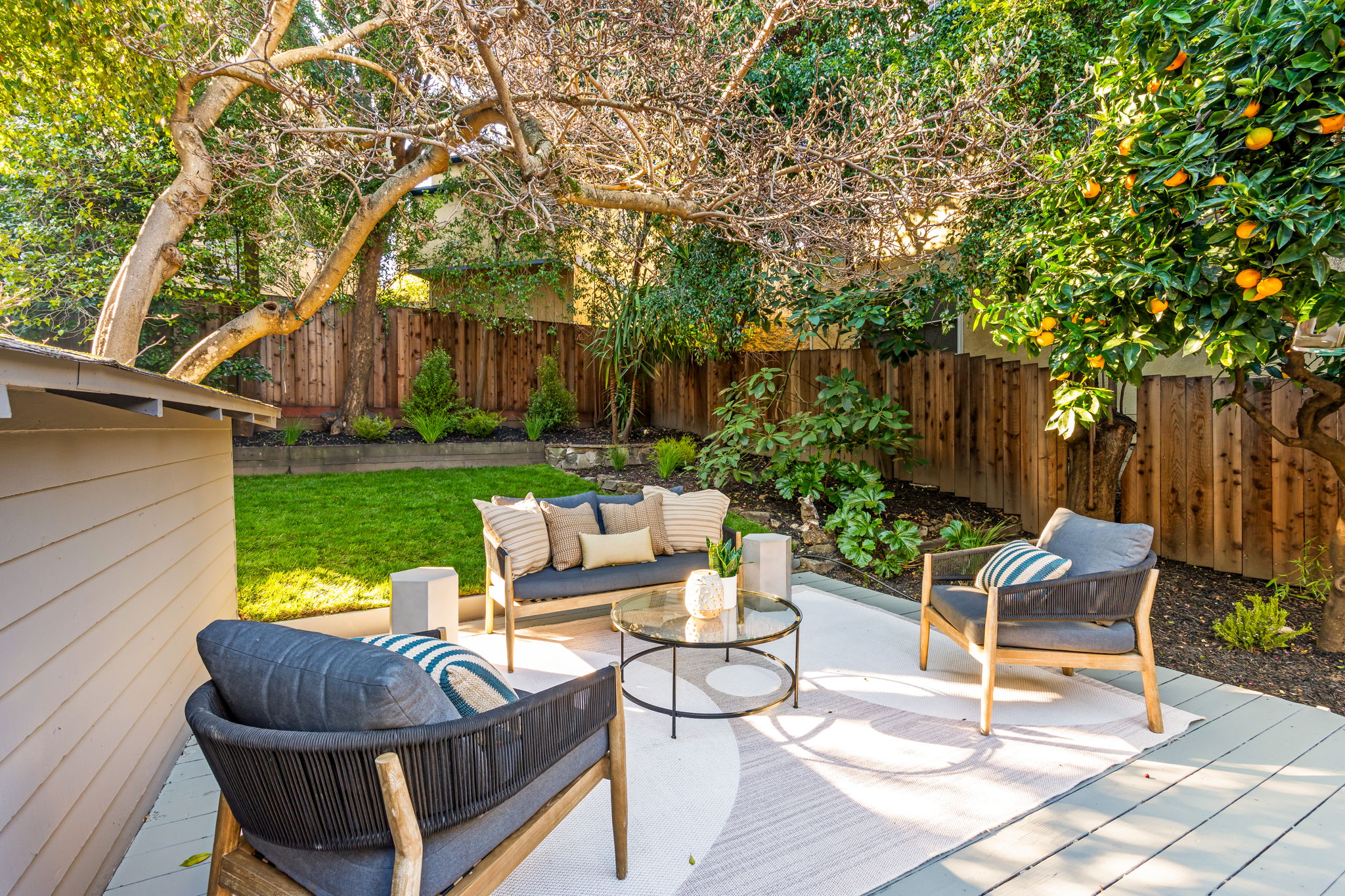 โ Fenced level yard with raised beds, lawn & garden zones