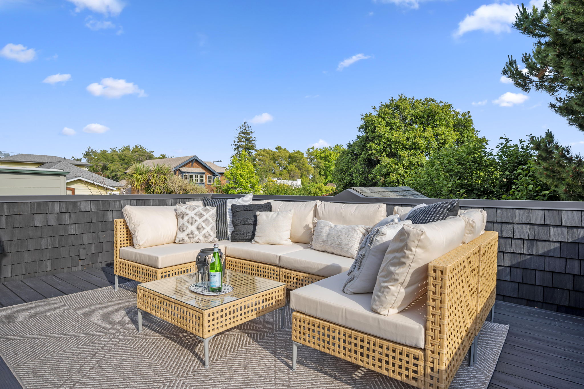 Upper level with cushy lounge space, two bedrooms, large rooftop deck and dwell-inspired bathroom with frameless shower. Centered between the fabulous shops and restaurants of Elmwood and Rockridge it’s just blocks from Trader Joe’s, Market Hall, Zachary’s Pizza, and only six blocks to BART.