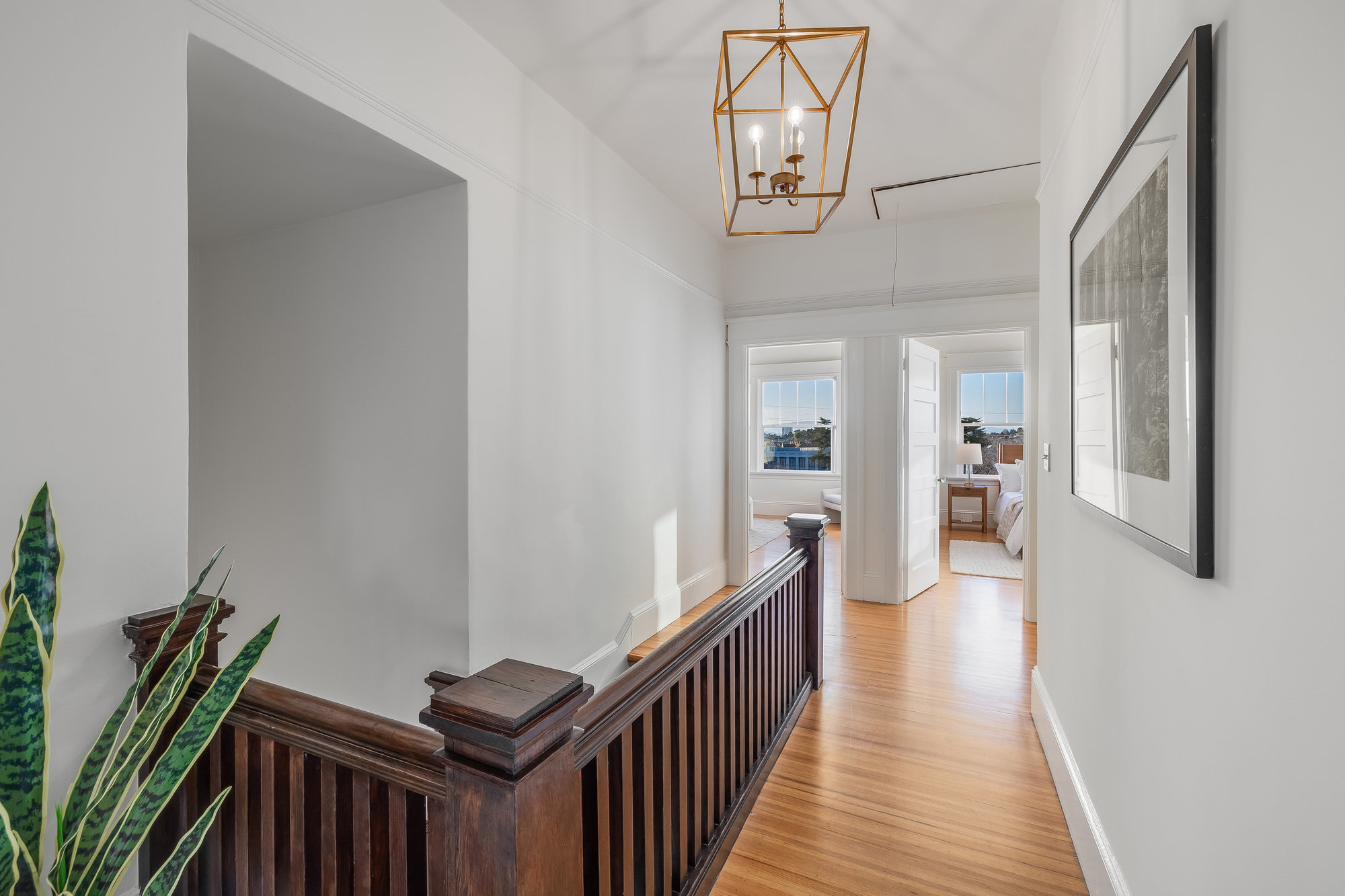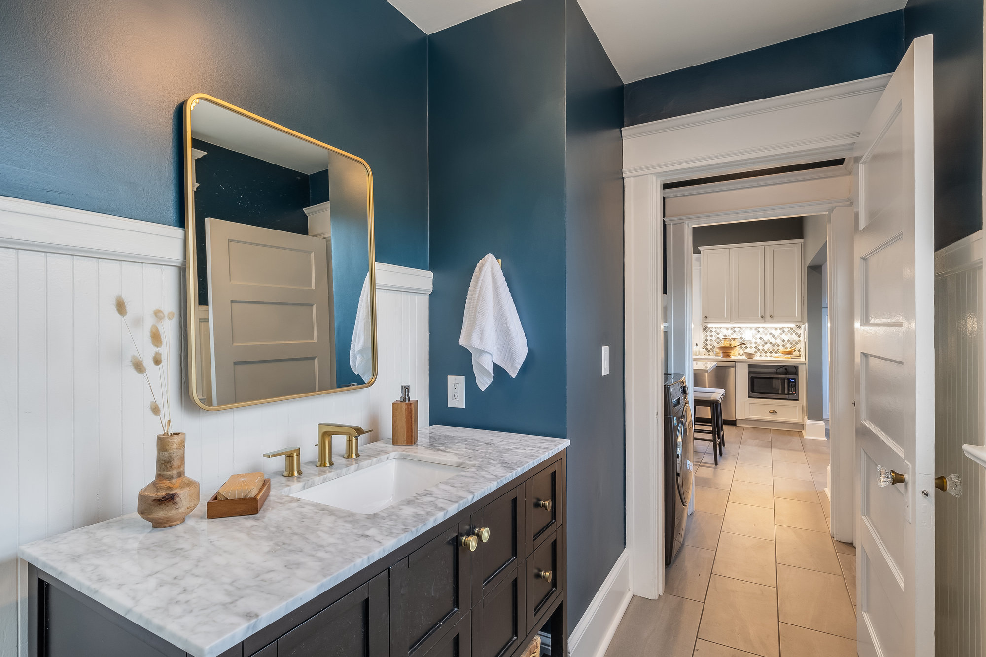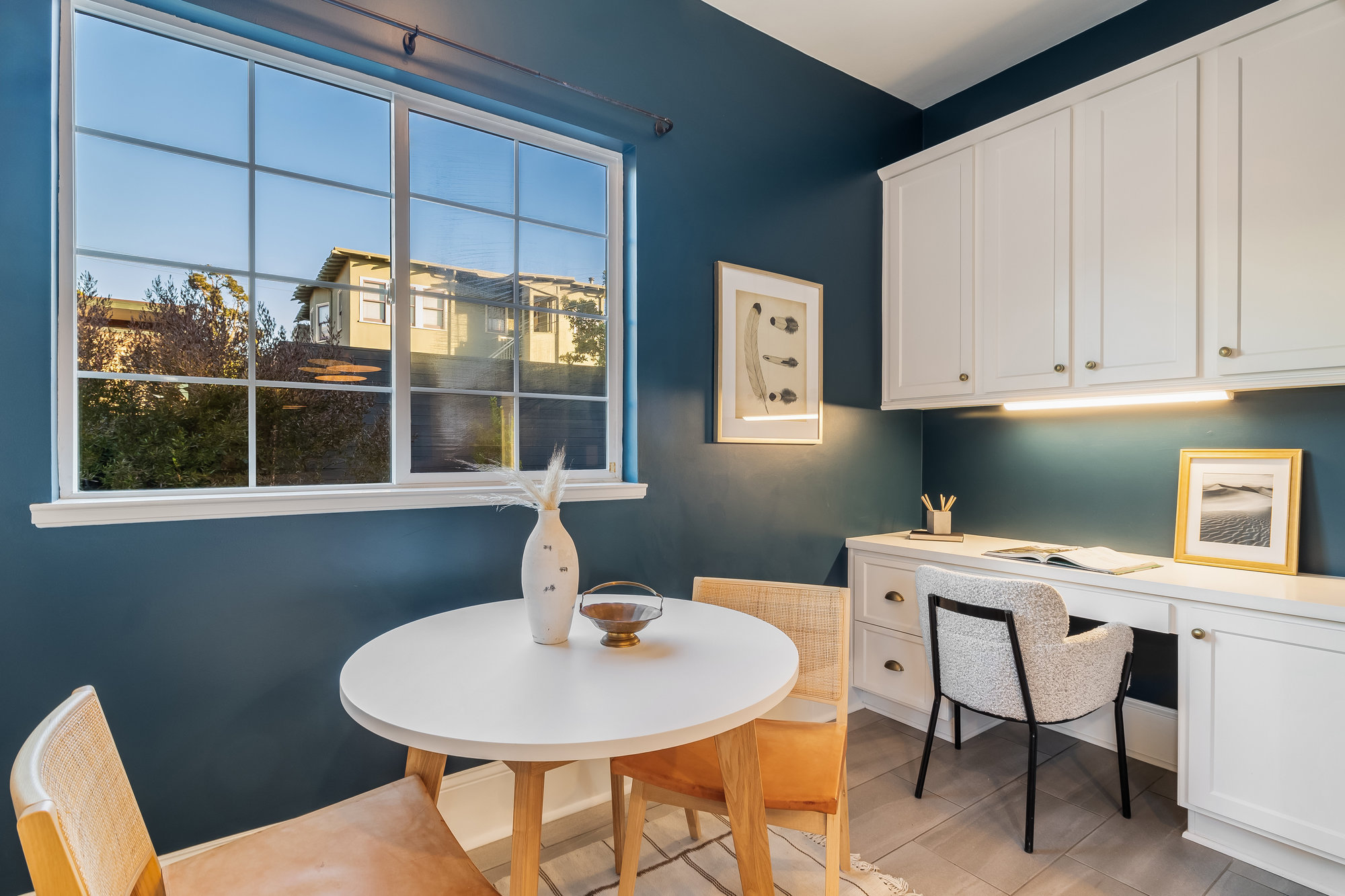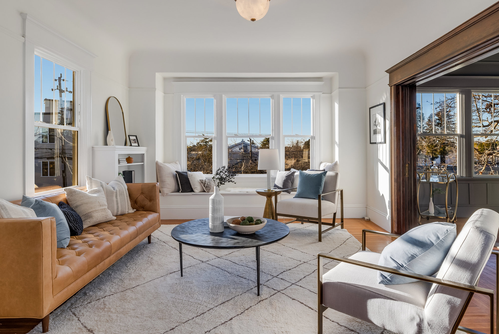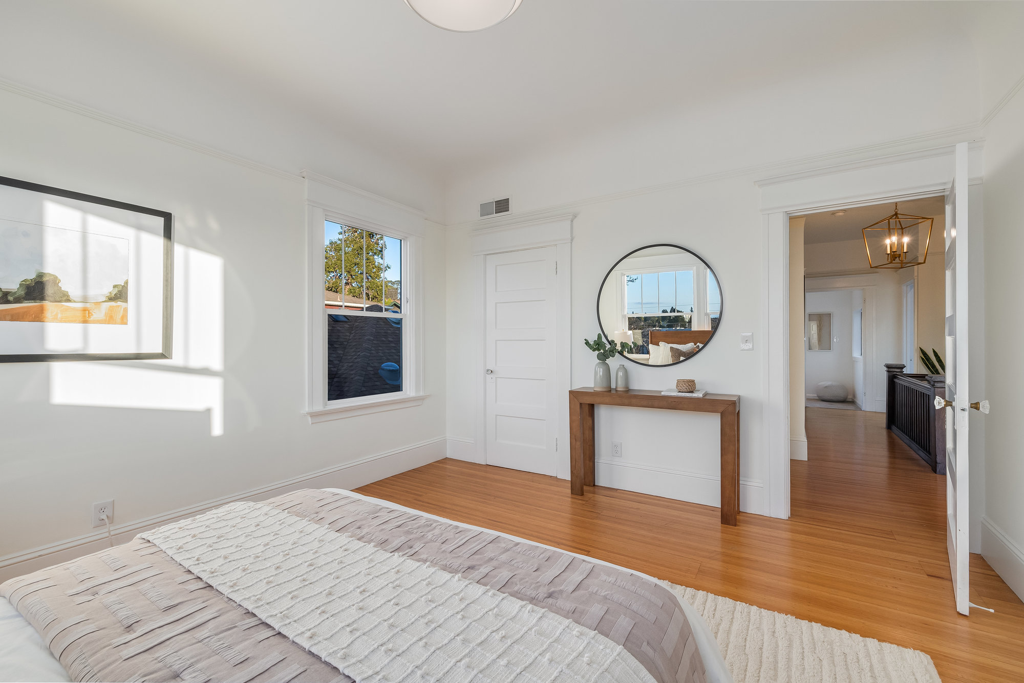 This stunning two-story Craftsman blends classic charm with modern refinement, offering a warm, light-filled retreat just blocks from Piedmont Avenue’s best shops and dining. Step into the inviting foyer, where a wood-paneled accent wall and mission-style staircase set the tone for timeless craftsmanship. The living room showcases picturesque neighborhood views, while the dramatic dining room features vintage built-ins, a decorative fireplace, box-beam ceilings, and a striking chandelier—a space designed for gathering. The chef’s kitchen balances function and beauty with quartz countertops, a center island, stainless steel appliances, and a command center. Glass doors open to the private rear gardens, and an updated half bath completes the main level. Upstairs, three bedrooms, two baths, and a sunporch create a tranquil retreat. The primary suite offers Oakland views, a walk-in closet, and a designer bath with matte gold fixtures, a frameless glass shower, and curated tiles. Outside, enjoy a spacious deck for entertaining and fresh grass for play—all just moments from Blue Bottle Coffee and the best of Piedmont Avenue.