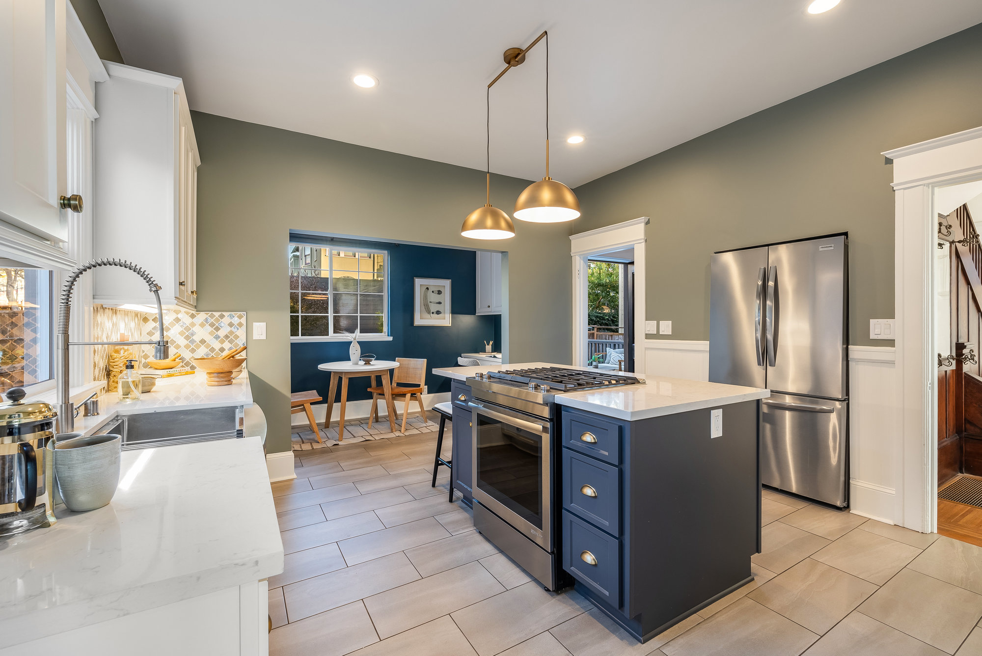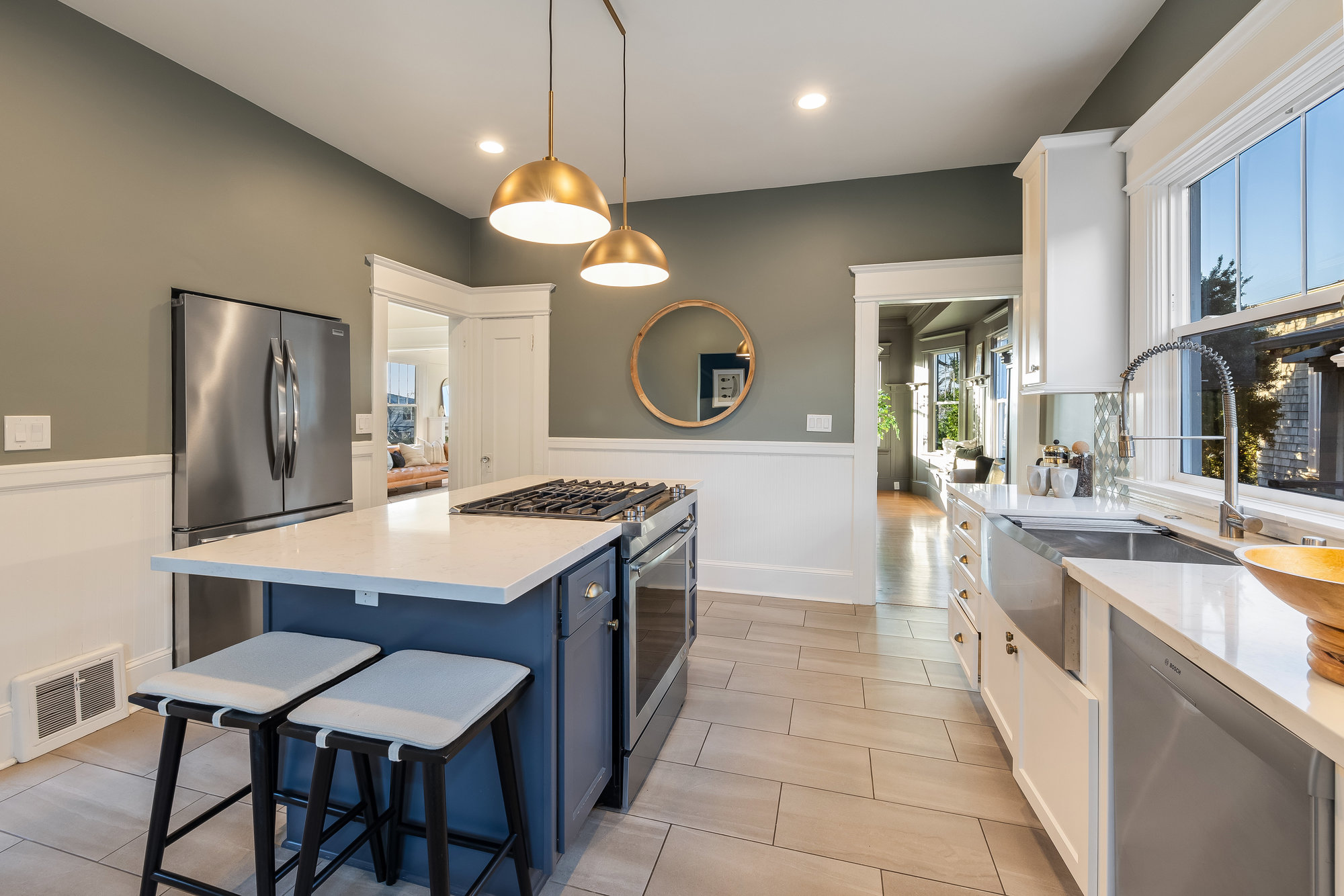 — Renovated chef’s kitchen with quartz counters