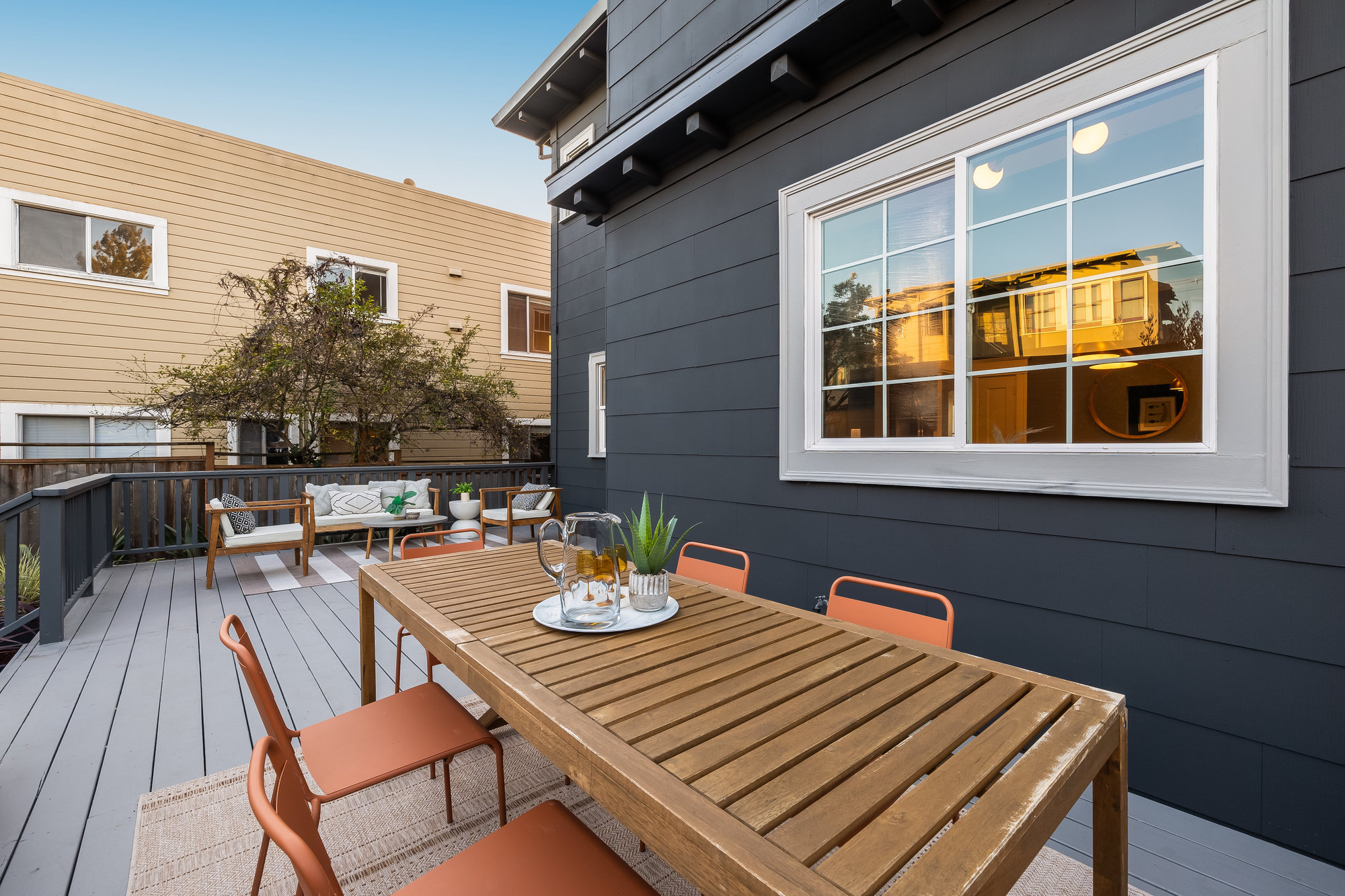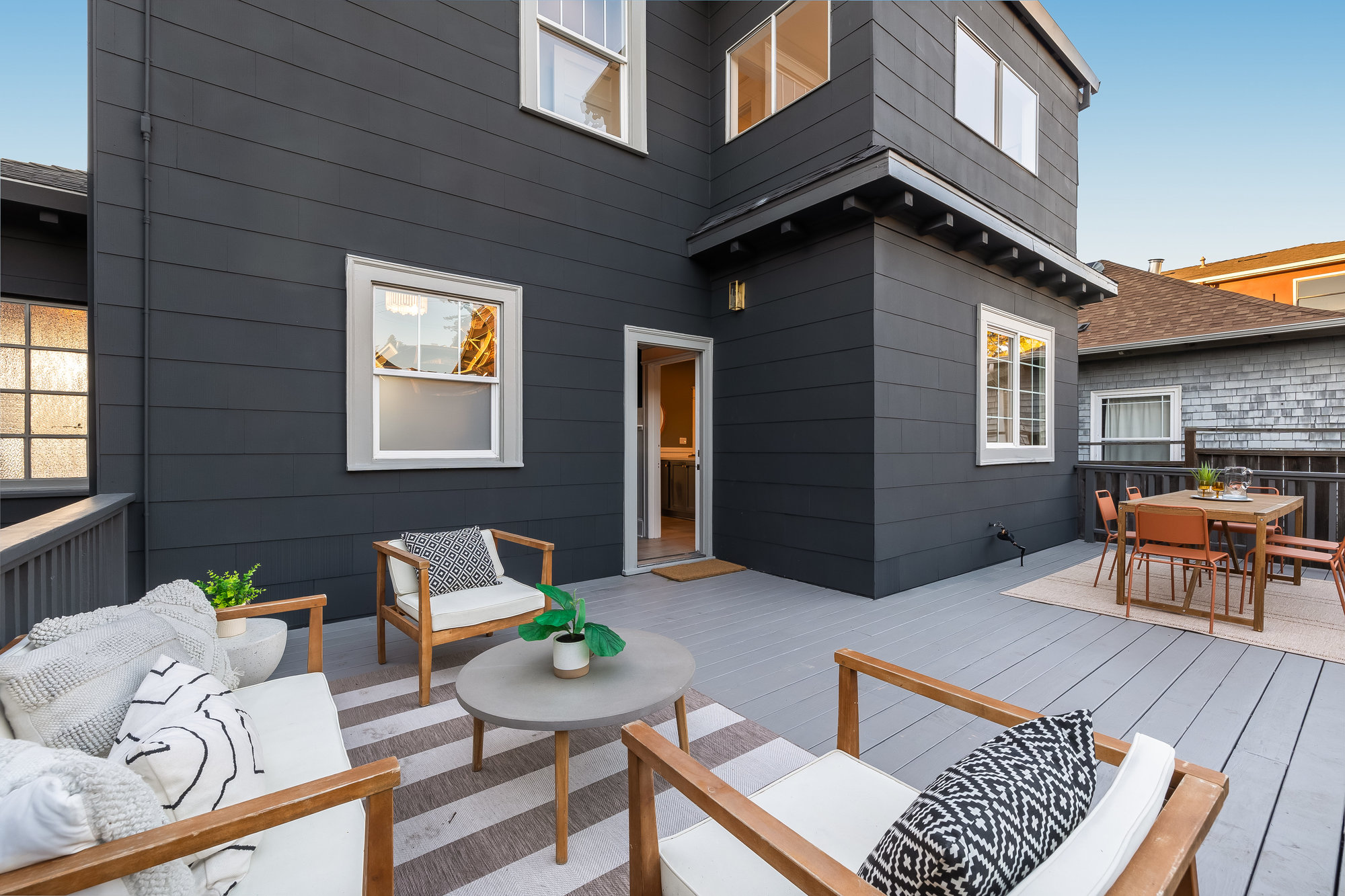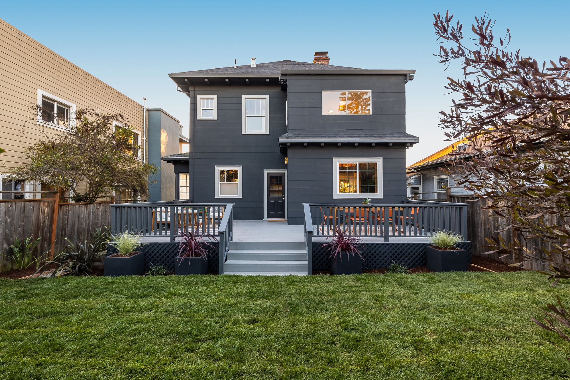 — Private rear gardens with deck and grassy area for play