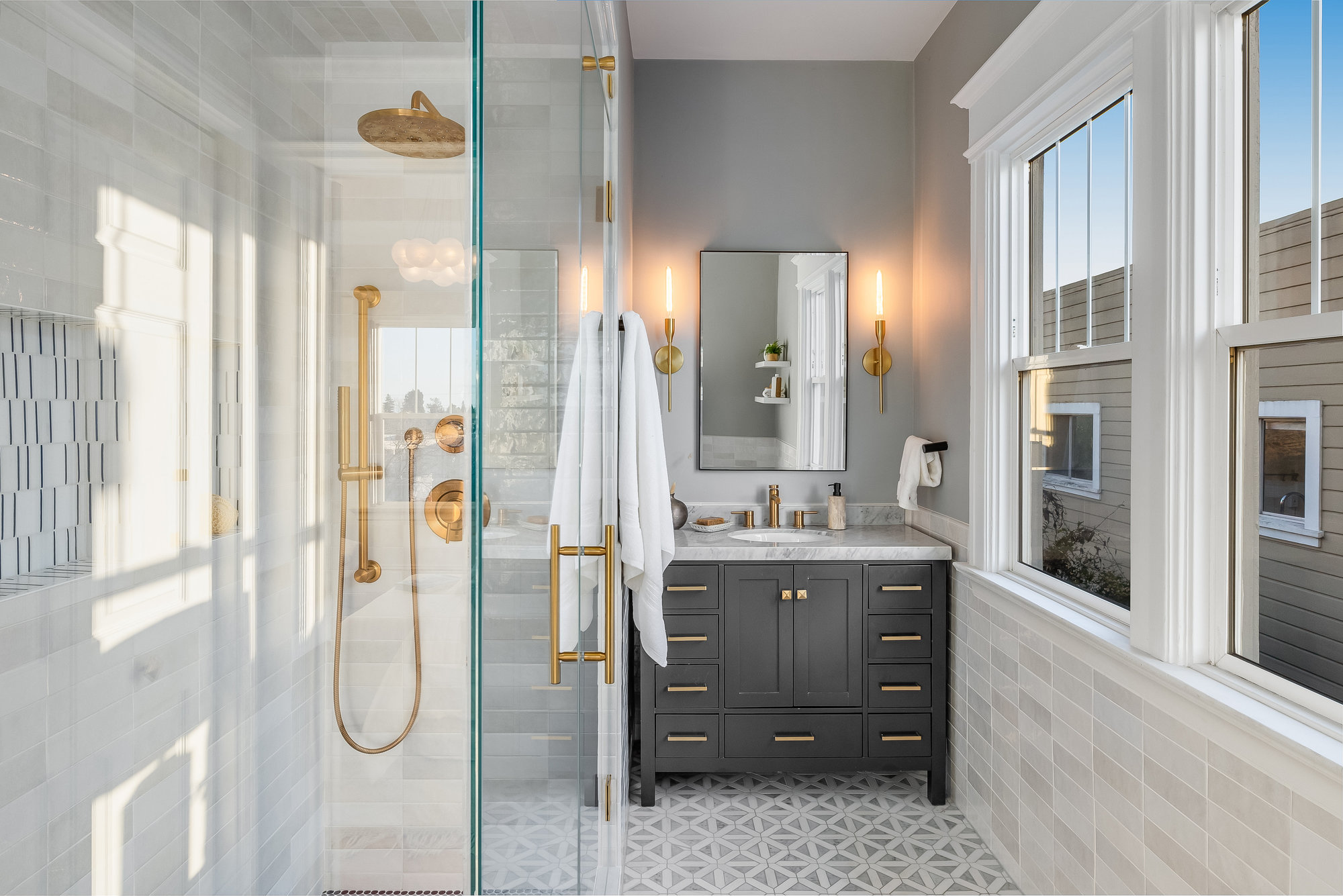 — Primary suite with views and Dwell-inspired bathroom