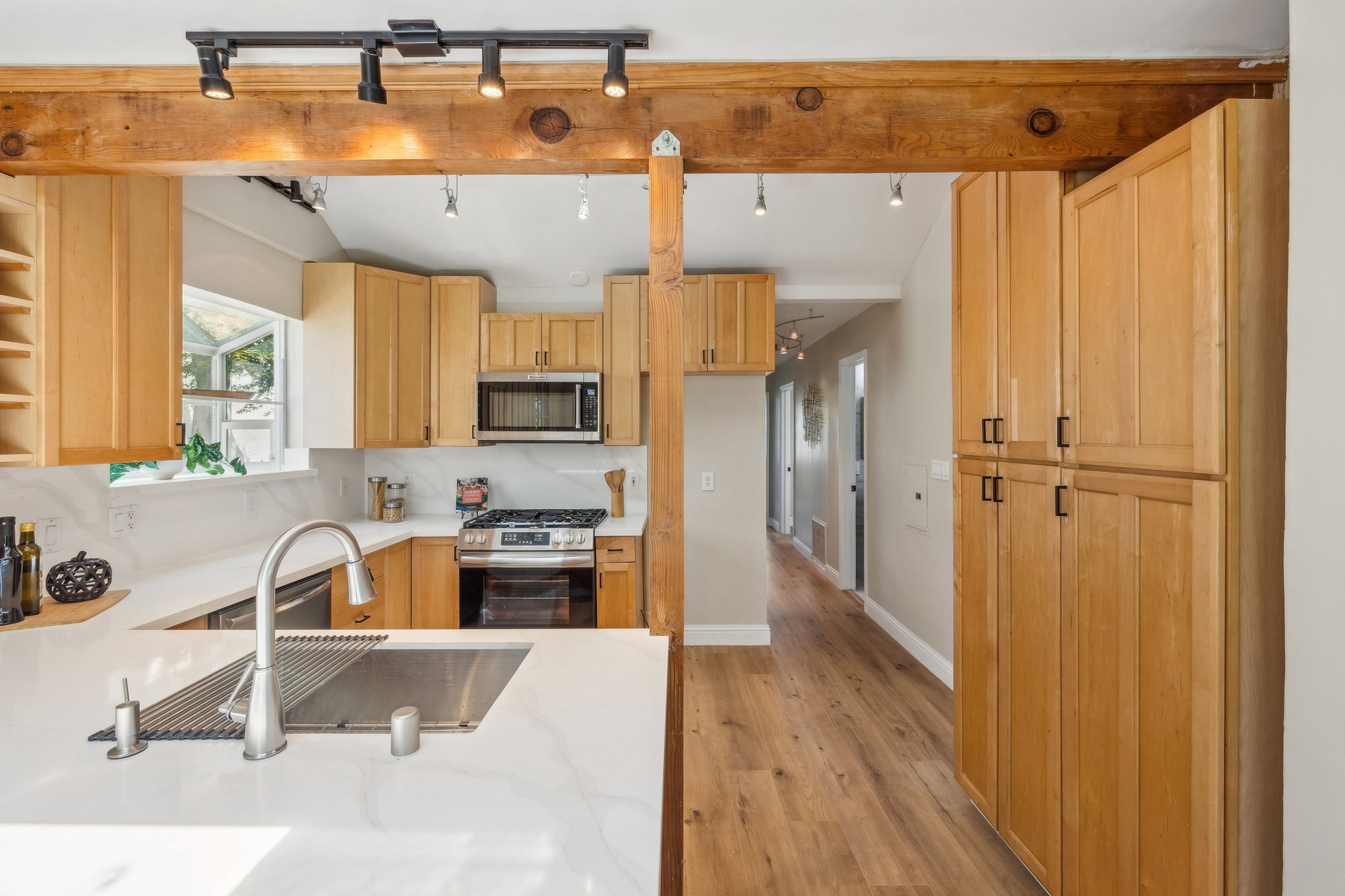 — Quartz Kitchen Counters & Ample Cabinetry