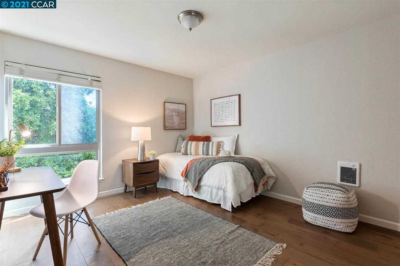 Spacious and beautifully updated 2 bed/ 2 full bath condo near Lake Merritt. This corner unit features hardwood flooring, stainless steel appliances, an oversized ensuite bedroom, guest bedroom/ office, and a private balcony! Located on a tree-lined street at the end of a cul-de-sac, the building has a secure garage with 1 car deeded parking, an elevator, and quick access to I-580! Relax by the glimmering pool on warm days, or go shopping at nearby Whole Foods, Trader Joes, or Grand Lake Farmers Market. No rental restrictions, however, certain limitations apply. Buyer to verify rental conditions with HOA. Welcome home!