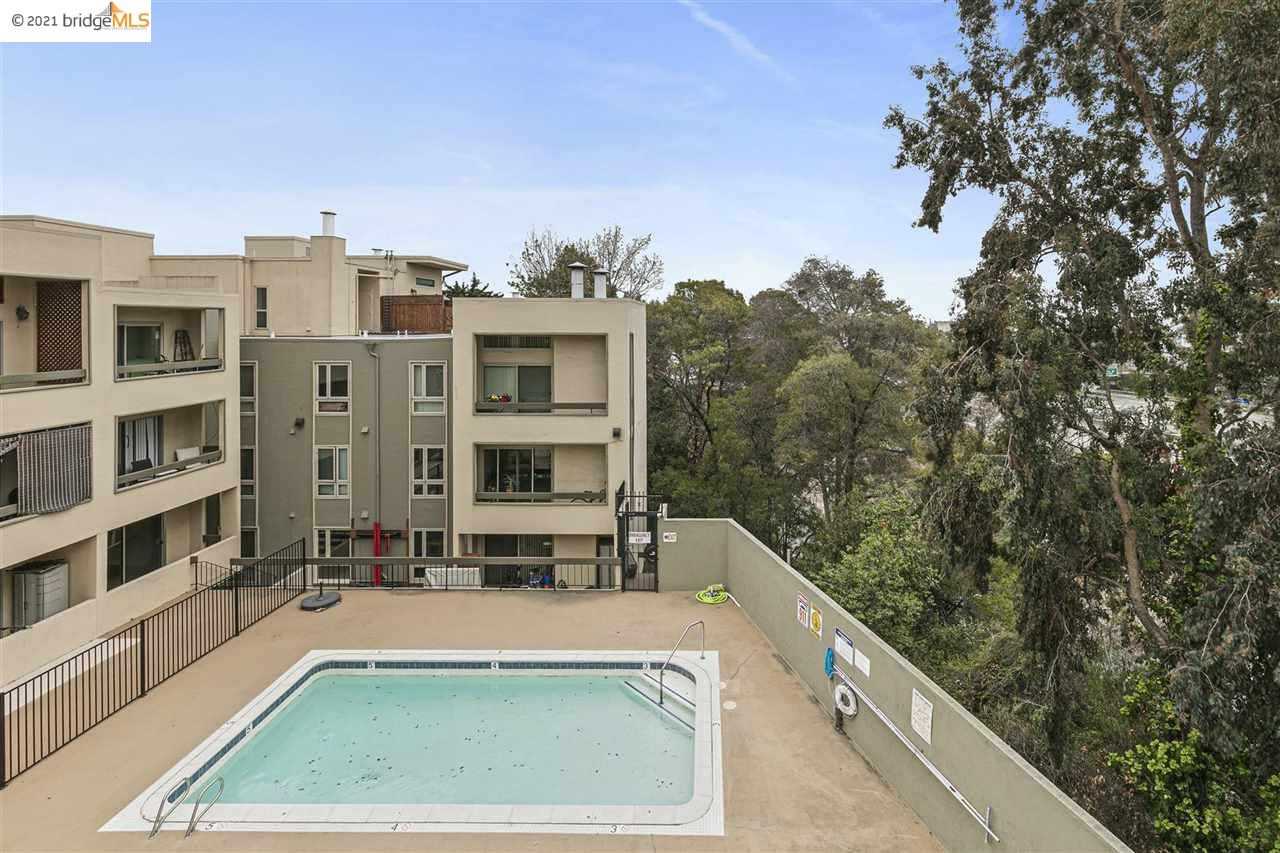 BEEEAUTIFUL, Contemporary penthouse style home with soaring ceilings and a wonderful layout that works for just about anyone! Fun loft style bedroom or office, a large en-suite bedroom, a cozy secondary bedroom and a wonderful dining area! This home lives like a single family home, with a community swimming pool!! Great Adams Point location, near everything cool in Oakland, Lake Merritt, Whole Foods, TJs, Wonderful Restaurant’s, piedmont ave, the amazing Farmers Market by the Lake, everything Oakland! Commute…easy! AC Transit Transbay Express Bus, BART, Freeways, and soon our beloved casual carpool. Great property, come see!