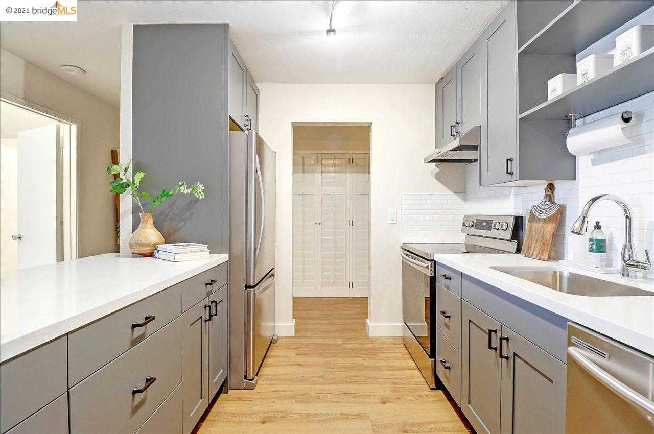 Delightful & spacious unit on fabulous location near beautiful Lake Merritt with farmer’s market, restaurants & shops of vibrant Lakeshore & Grand Ave district. Reimagined & beautifully executed modern kitchen featuring quartz countertops, stainless steel appliances, plenty of cabinet space & storage for full enjoyment of finer culinary things in life. From this gourmet hotspot the open floor-plan transitions to corner dining area & a good-sized living room & balcony overlooking the street, with tranquility of mature treetops. The bedroom with extra large closet comes with a vanity that is separate from designer bathroom. Modern flooring, dual pane windows, consistent visuals, good looking lobby, parking garage & good amount of storage add to convenience of living in this fine unit. Not to mention that the building has two saunas, swimming pool with nice grounds, event room & well equipped exercise room. All this & more near Rose Garden for your full enjoyment!
