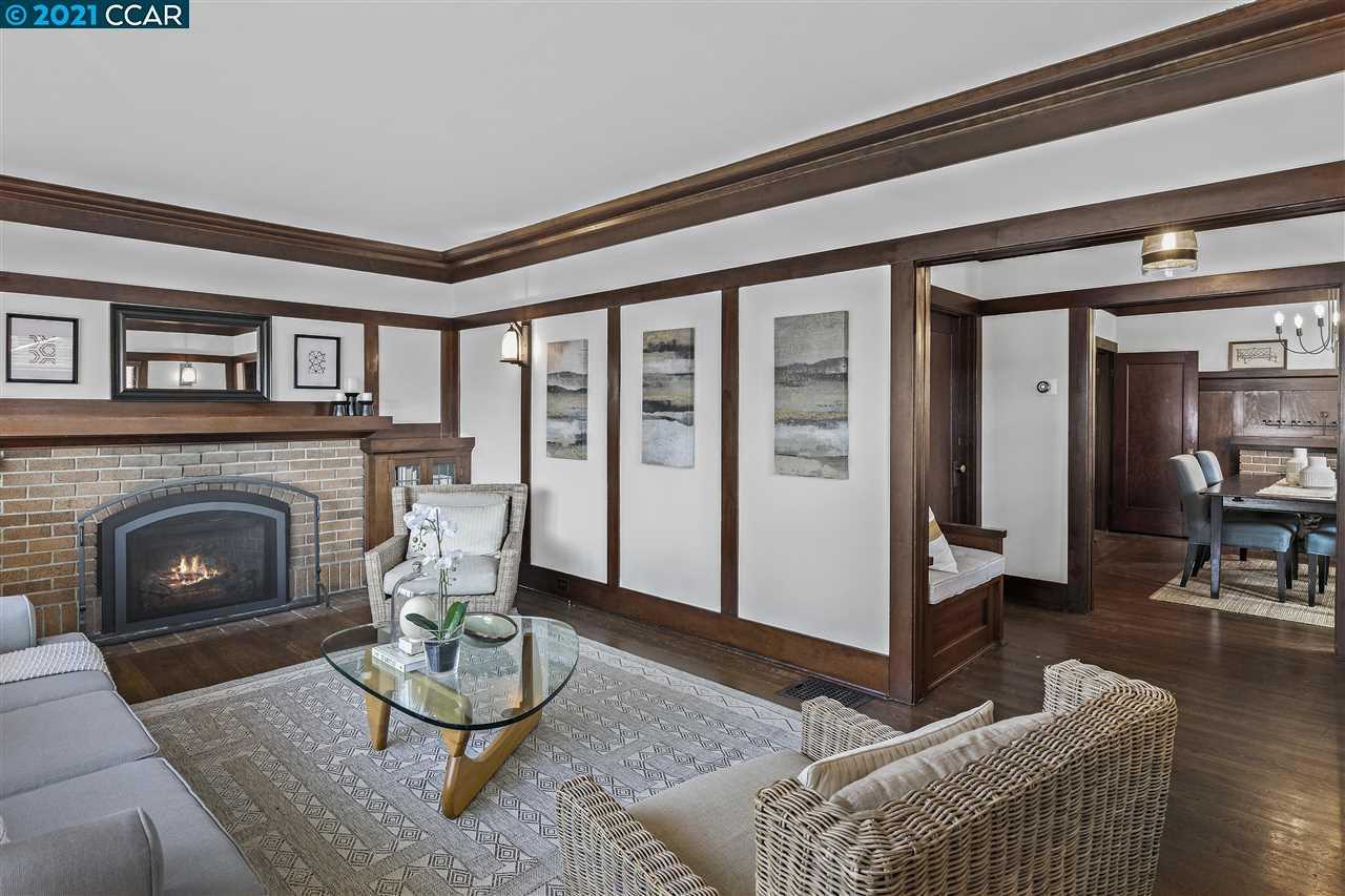 Exceptional 1915 California Craftsman Bungalow in the BEST area: Oakland’s beloved Rose Garden neighborhood near the vibrant Grand-Lake district and Piedmont Ave. This charming 2++BR/1BA home with a bonus attic room is graced with rare rich wood details in the floors, ceilings and iconic built-ins. It’s a celebration of original craftsmanship everywhere you look! The living and dining rooms EACH feature a fireplace. You’ll love the kitchen’s cozy breakfast nook and seamless updates for today’s cooks – new appliances, quartz counters and crisp white cabinetry.Designer bath also beautifully updated.In the primary, a sunny window seat overlooks the back garden. The landscaped yard with fig tree is perfect for play (treehouse), BBQs and even chicken-rearing (coop included).Detached studio with tons of potential. And SO close to Morcom Rose Garden, shops, dining, BART, farmer’s market, live music, movie theater, I-580…Your car may rarely leave the driveway! OPEN SAT & SUN