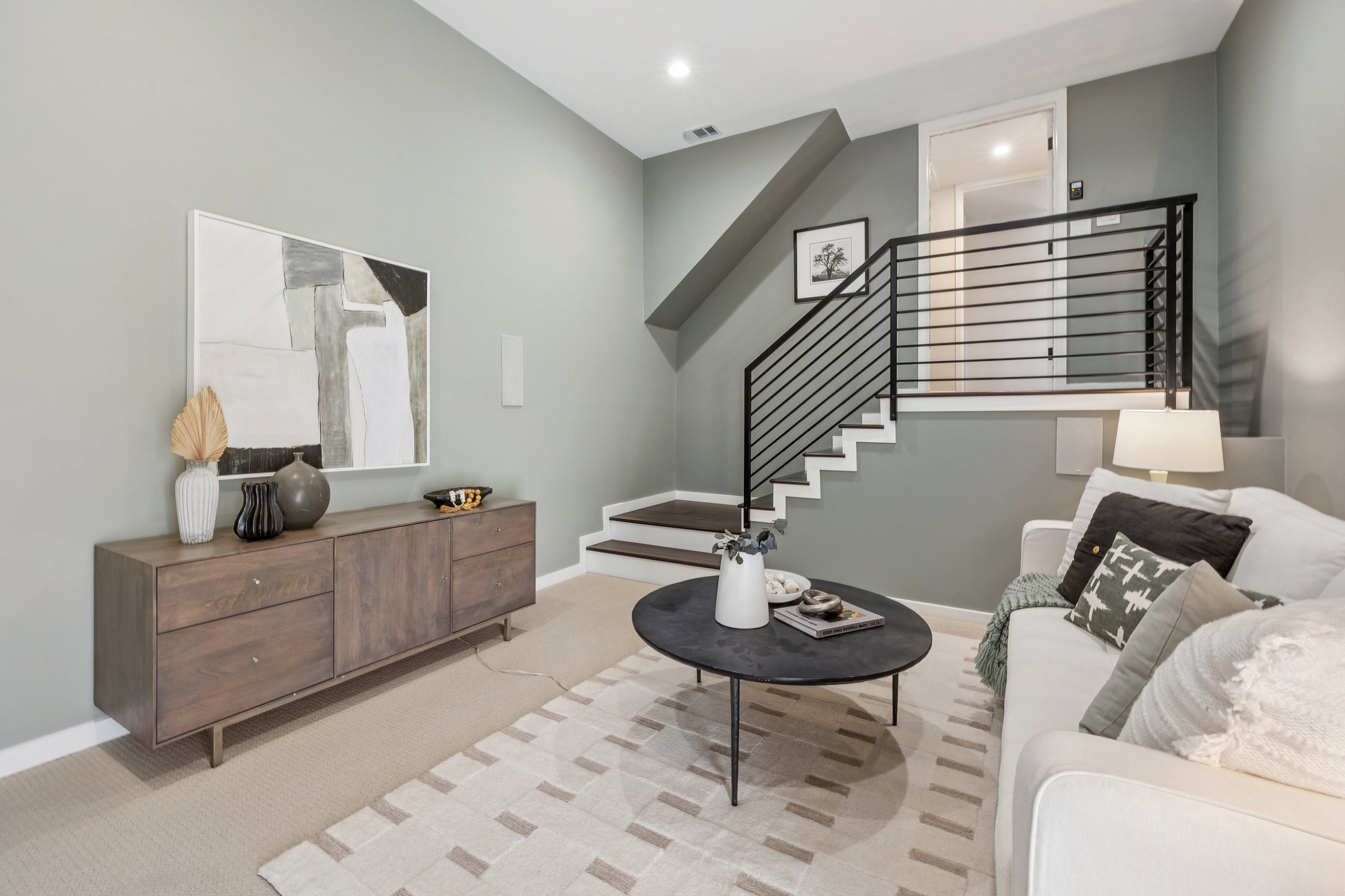 — Cozy den with state of the art surround sound system