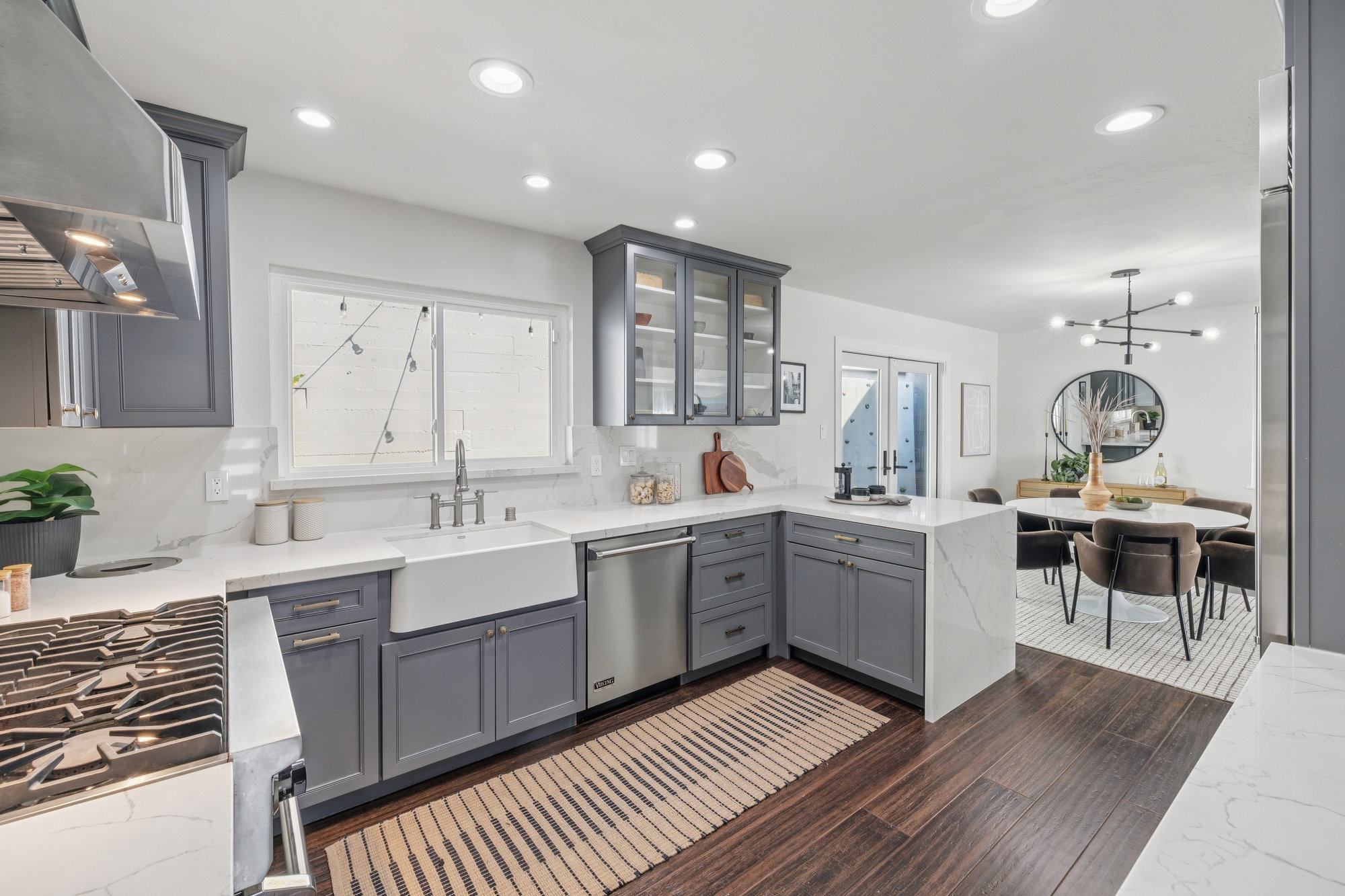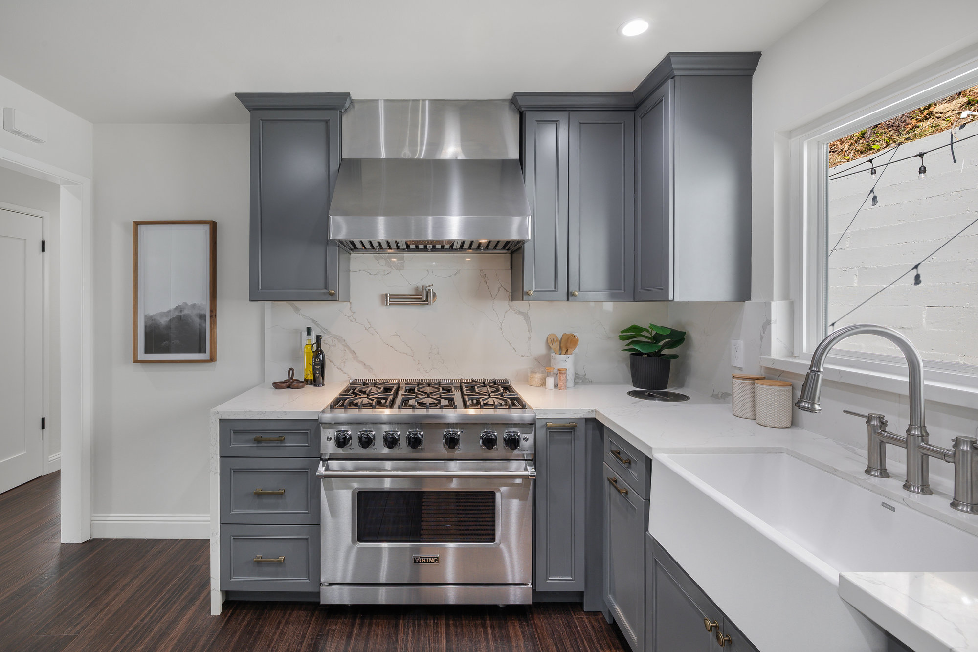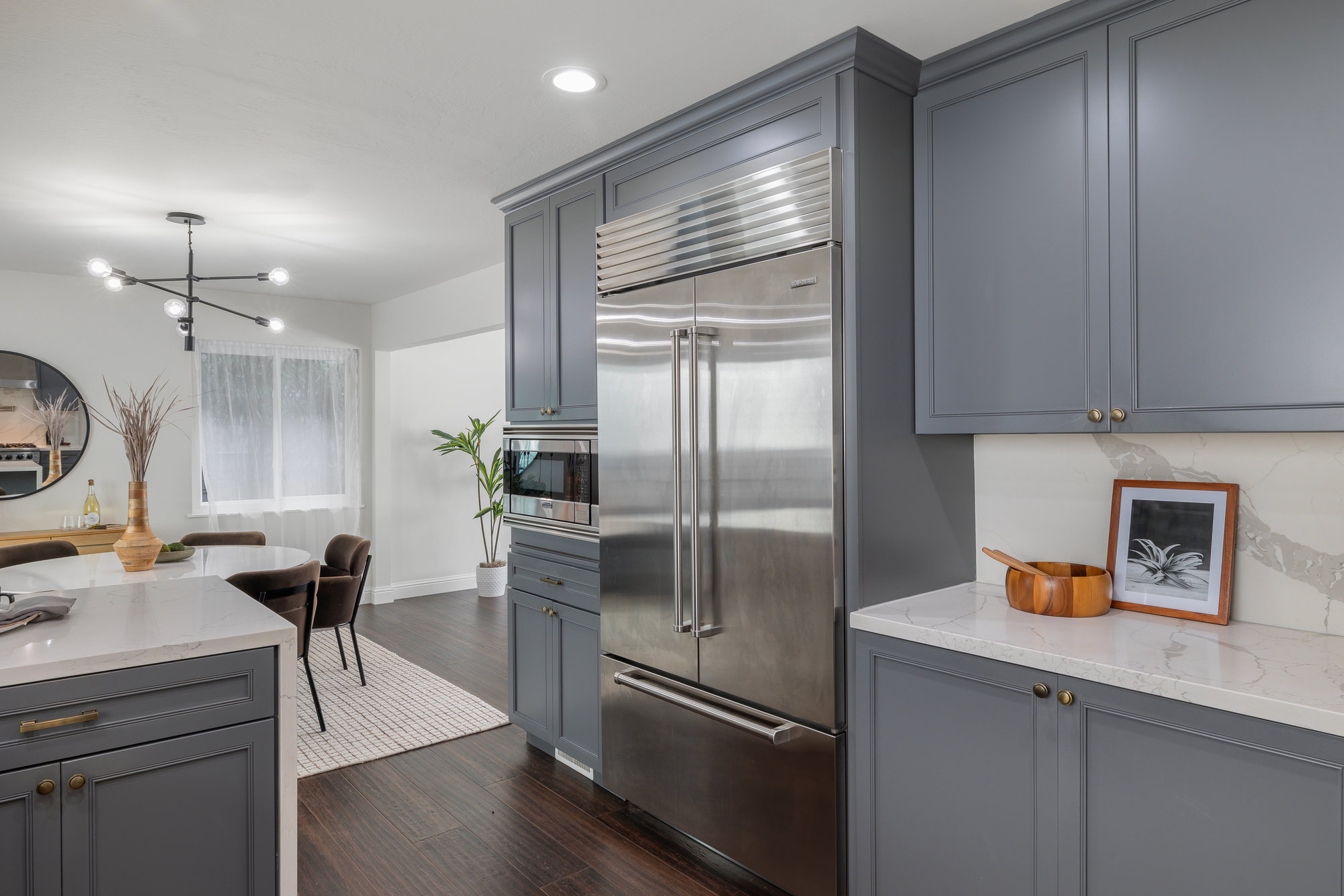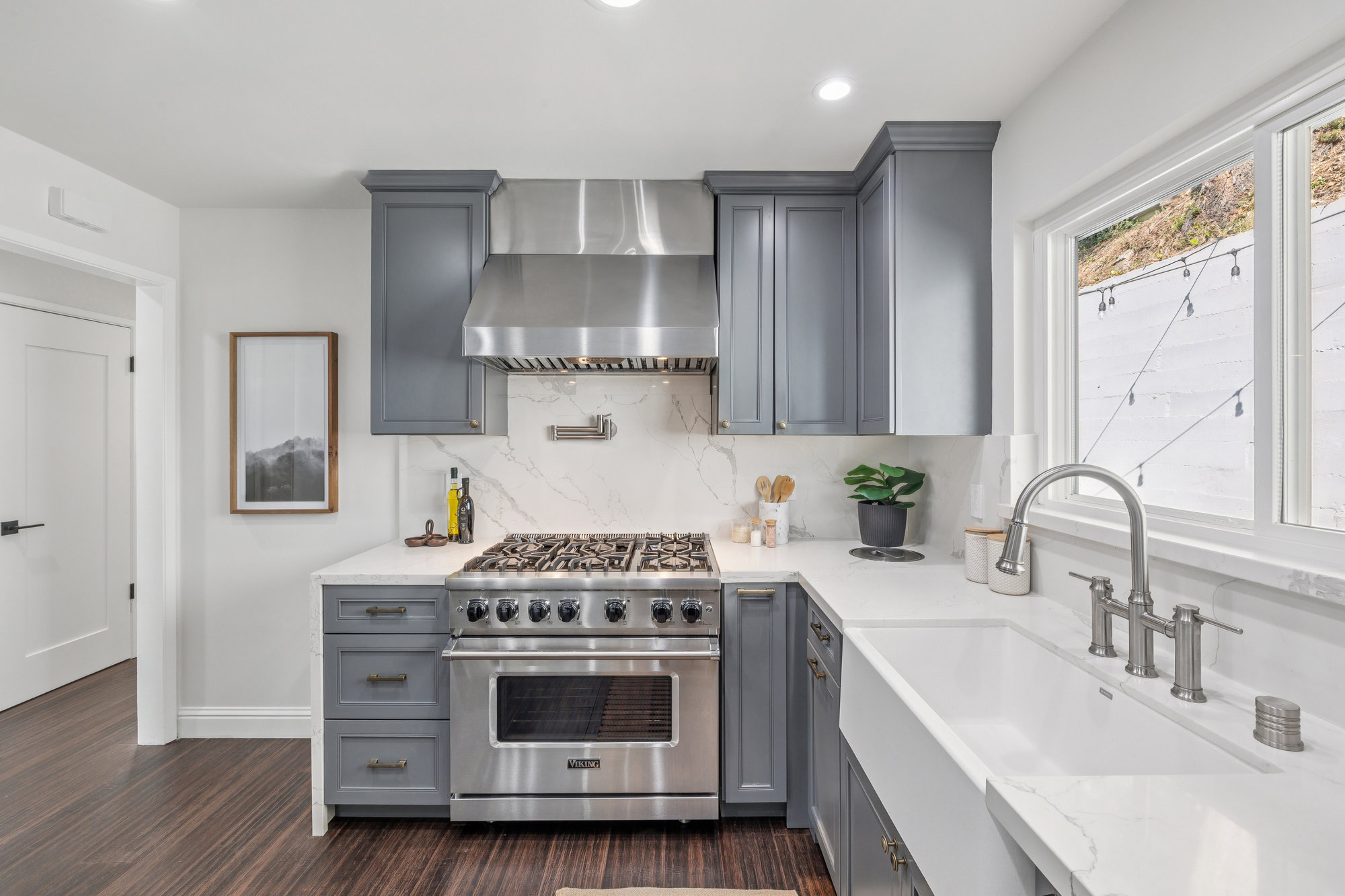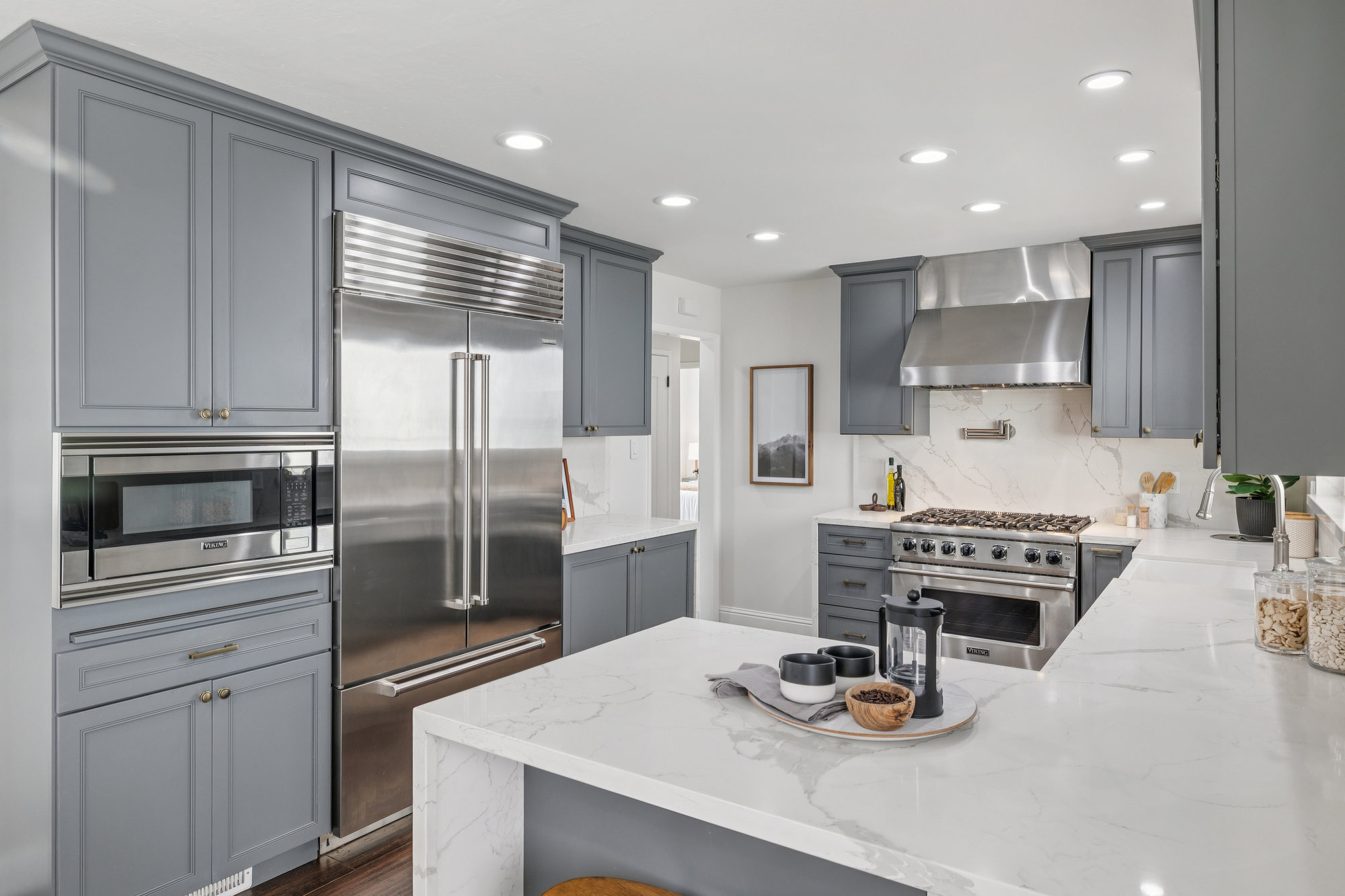 — Reimagined chefs kitchen with six burner Viking range and Sub Zero Fridge