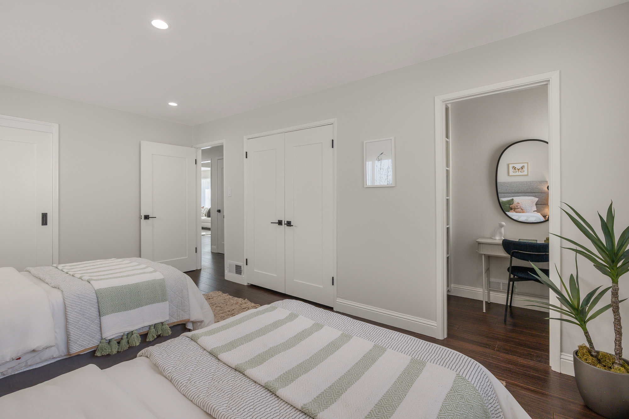 Retreat to the spacious primary suite with a designer en-suite bathroom, offering a private oasis to unwind. The additional bedrooms provide flexibility for a growing family, home office, or guest accommodations. A cozy den equipped with a state-of-the-art built-in surround sound system creates the ultimate media, home office, or relaxation space. You won’t ever have to worry about power outages in the hills with the owner solar system, battery backup, along with the EV car charger.