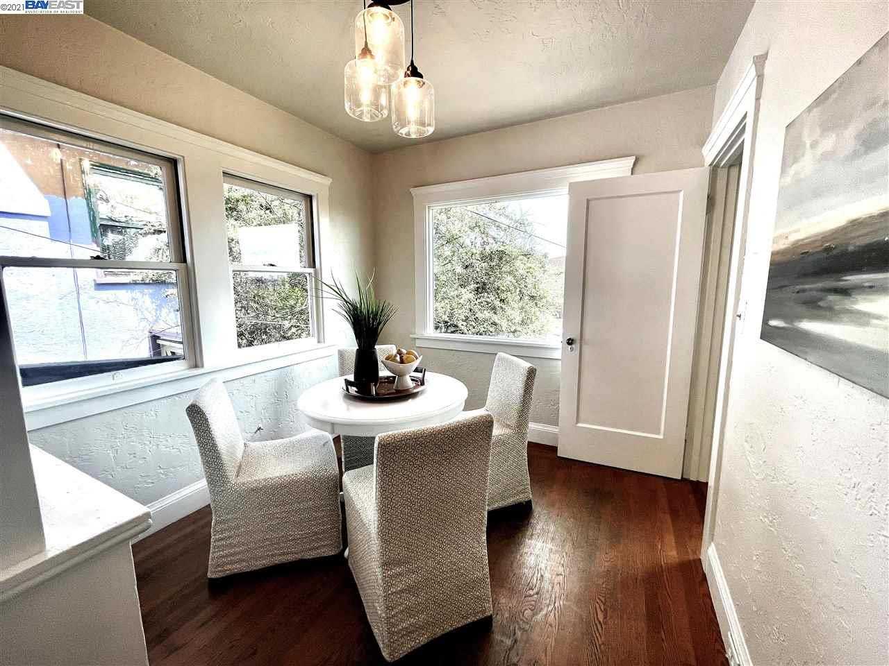 Classic Rockridge Home. Join the party; this home will celebrate its 100th birthday soon.Living in Rockridge is a coveted way of life Quaint tree lined streets, local restaurants and shops within a few blocks and ease of commute options like Bart or Freeway.This spacious home exudes light and warmth.There are 2 bedrooms and 2 baths on the main floor and 1 huge room upstairs that has the option to be a bedroom or a playroom, second family room or office.Lots of large windows and views of hills from the upstairs room.Custom cabinets in kitchen with granite & chopping block counters. Separate dining room, dinette plus another room behind the kitchen that also has many living options: family room, play room or office. The backyard boasts multiple areas to entertain.There is a BBQ with a patio, a firepit with its own patio and a playhouse or storage shed with its own patio. All this surrounded by a grassy area & sweet smelling flowers as well as fig trees. Detached garage & basement.