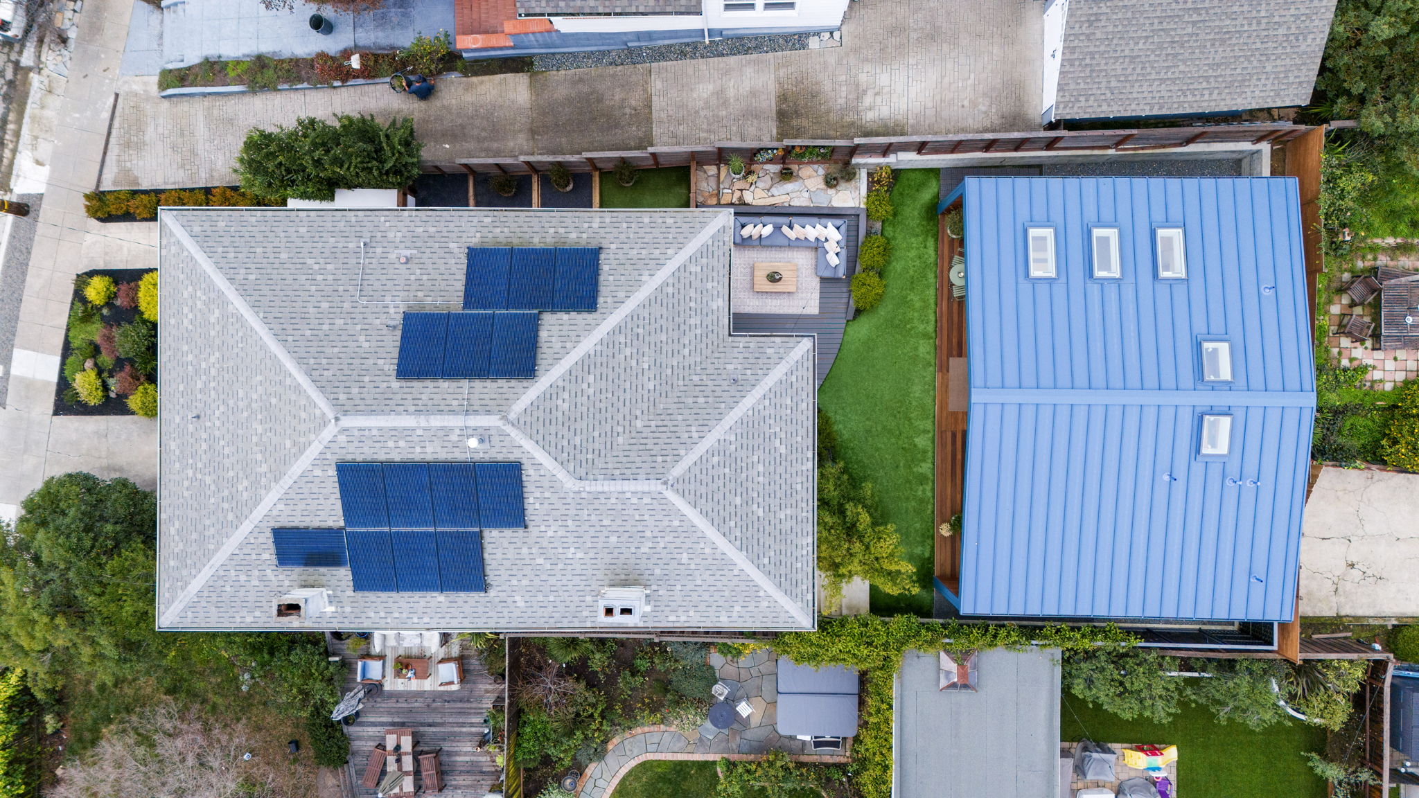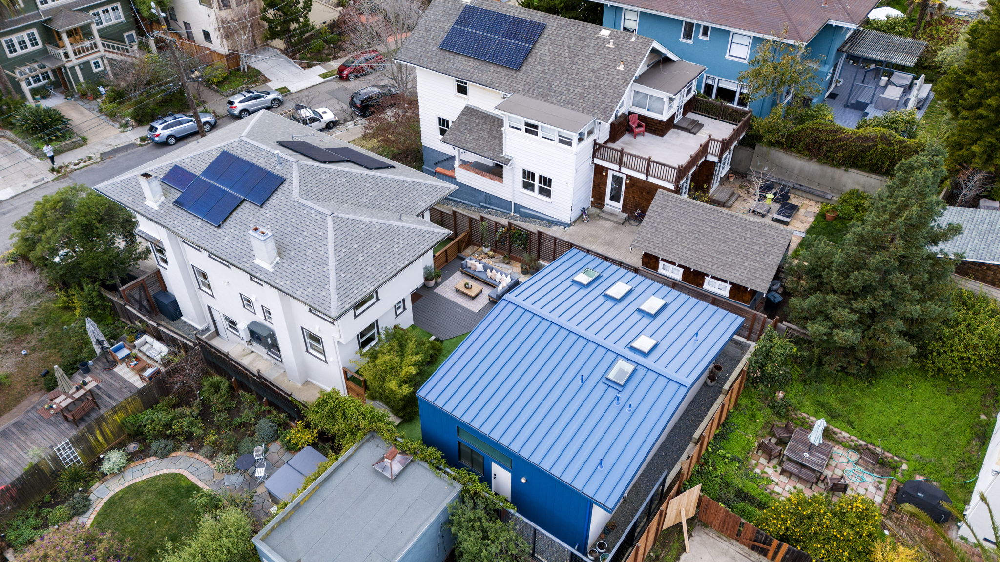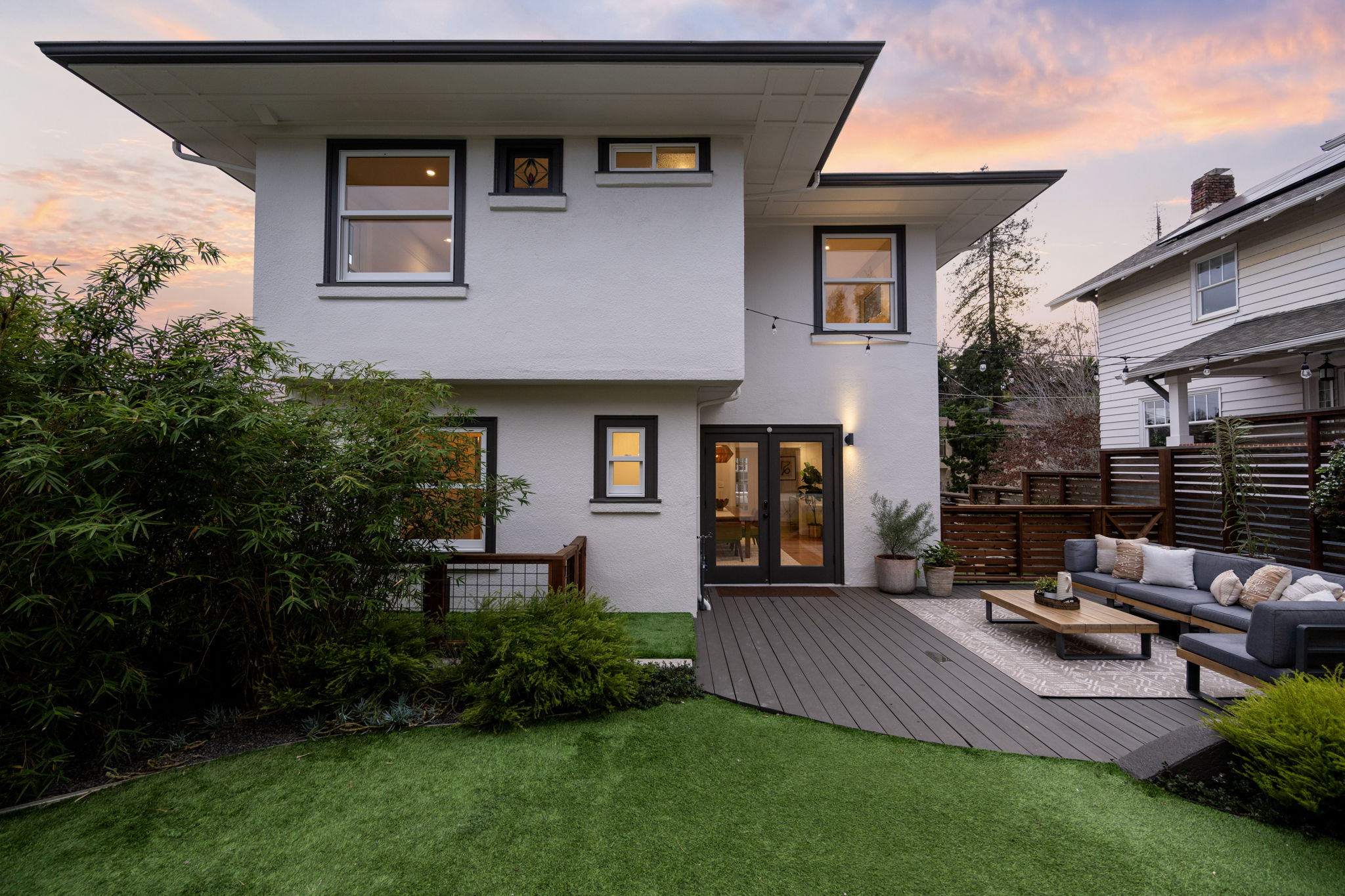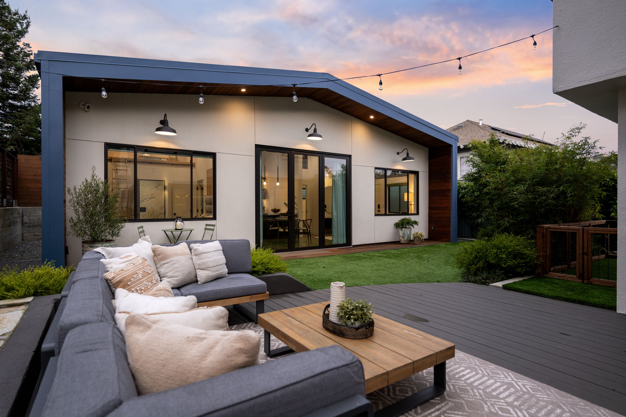 Private rear grounds offering professionally installed turf and lounge areas. Dwell inspired 735 sq ft ADU with metal roof, 1 Bedroom and 2 Baths, 14 foot tall ceilings, 5 skylights, designer kitchen, 120” projector screen and 10 ft Marvin accordion doors opening onto rear grounds. Other features include, WIFI powered Lutron lights, Nest thermostats, Ring exterior floodlight cameras, door bell and home security system. Wired for CAT6 internet, coaxial and HDMI cable. 200 Amp Electricity, 2 new furnaces (dual zone), 2 AC Units, HEPA filter system, unfinished basement and garage. Just blocks from the best of Lakeshore Ave Shops and Restaurants, Bay Bridge to SF and the award winning elementary. Not to be missed!