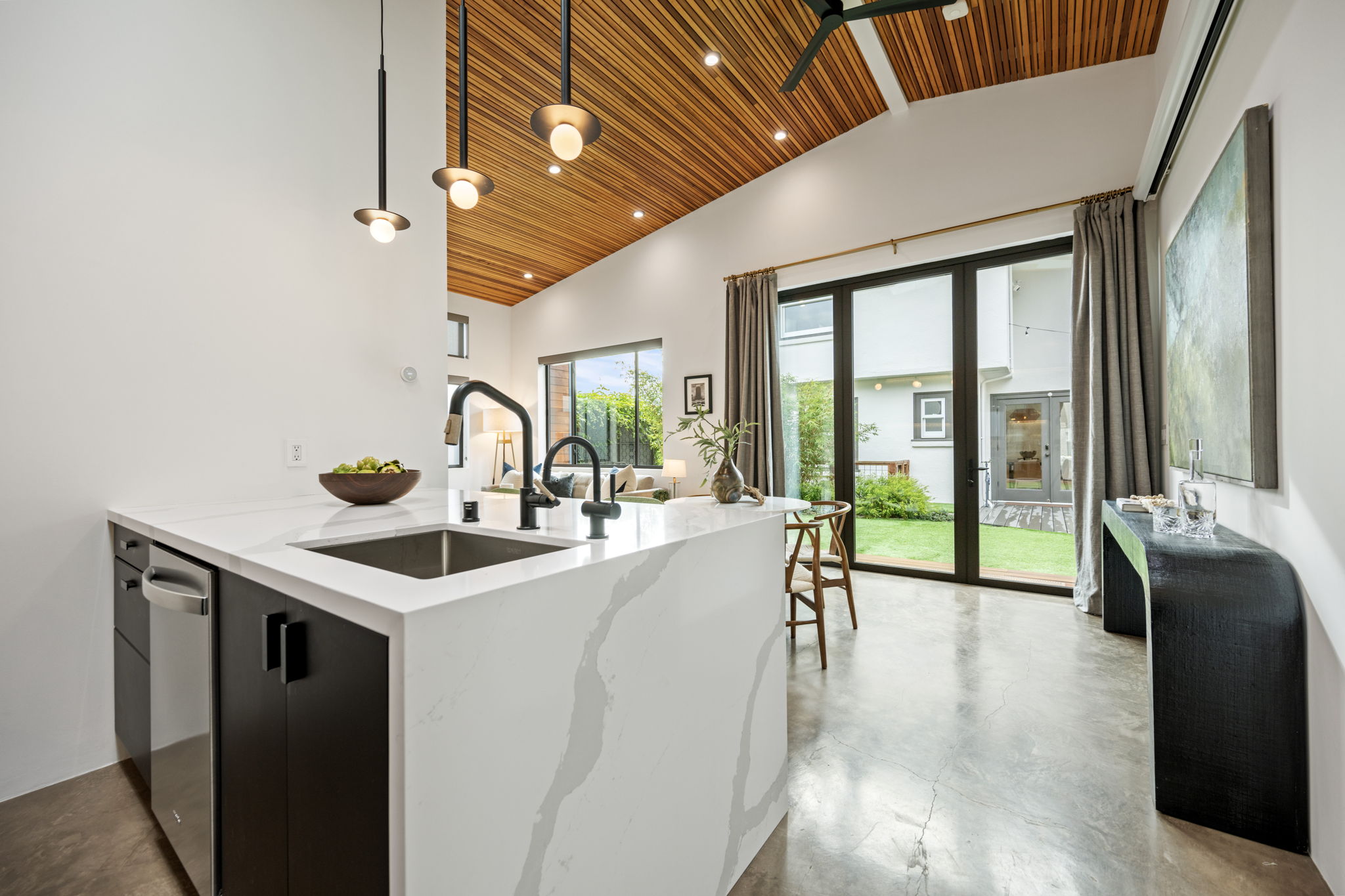 — 14’ Ceilings, 5 Skylights and Accordion Doors to Gardens