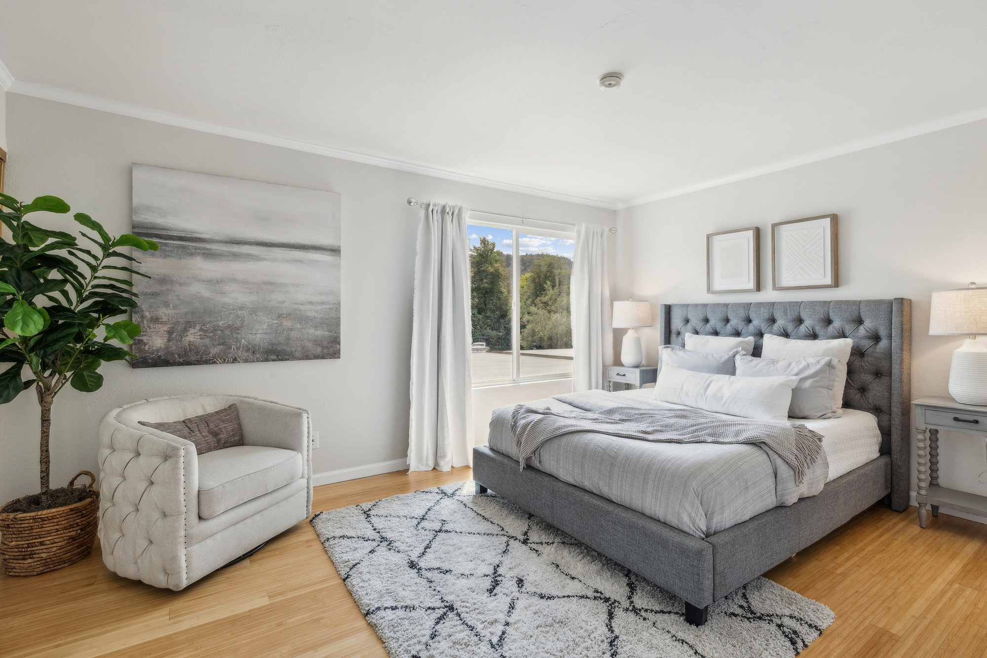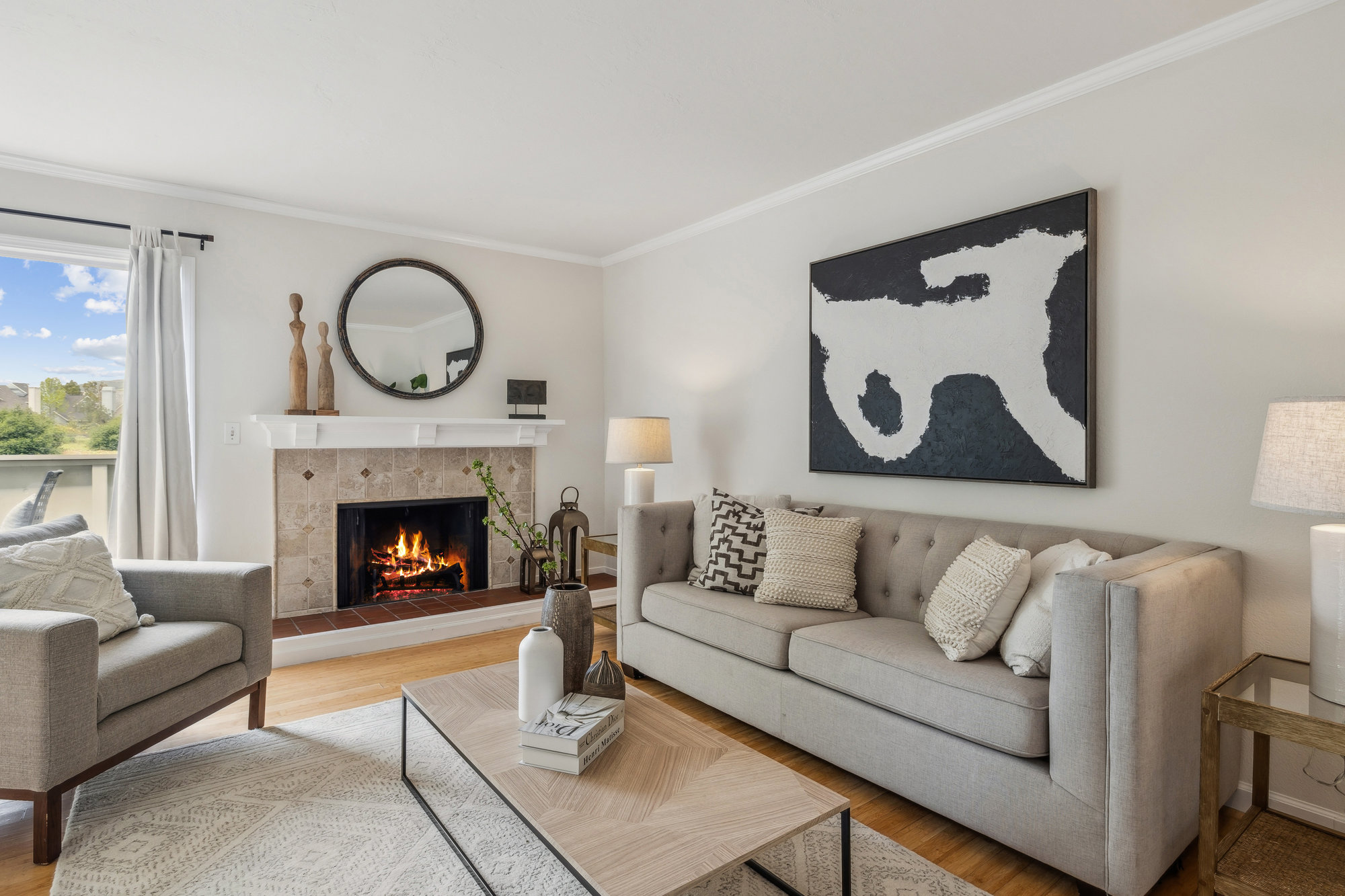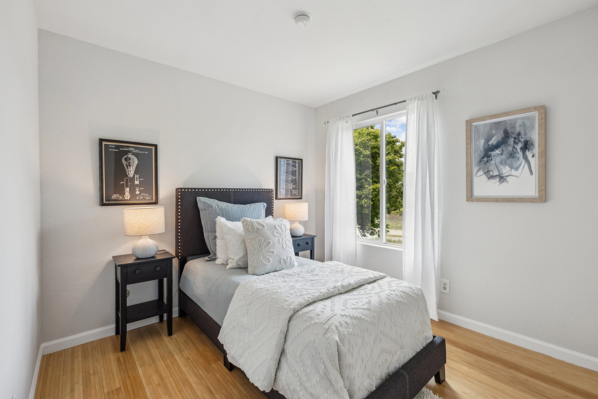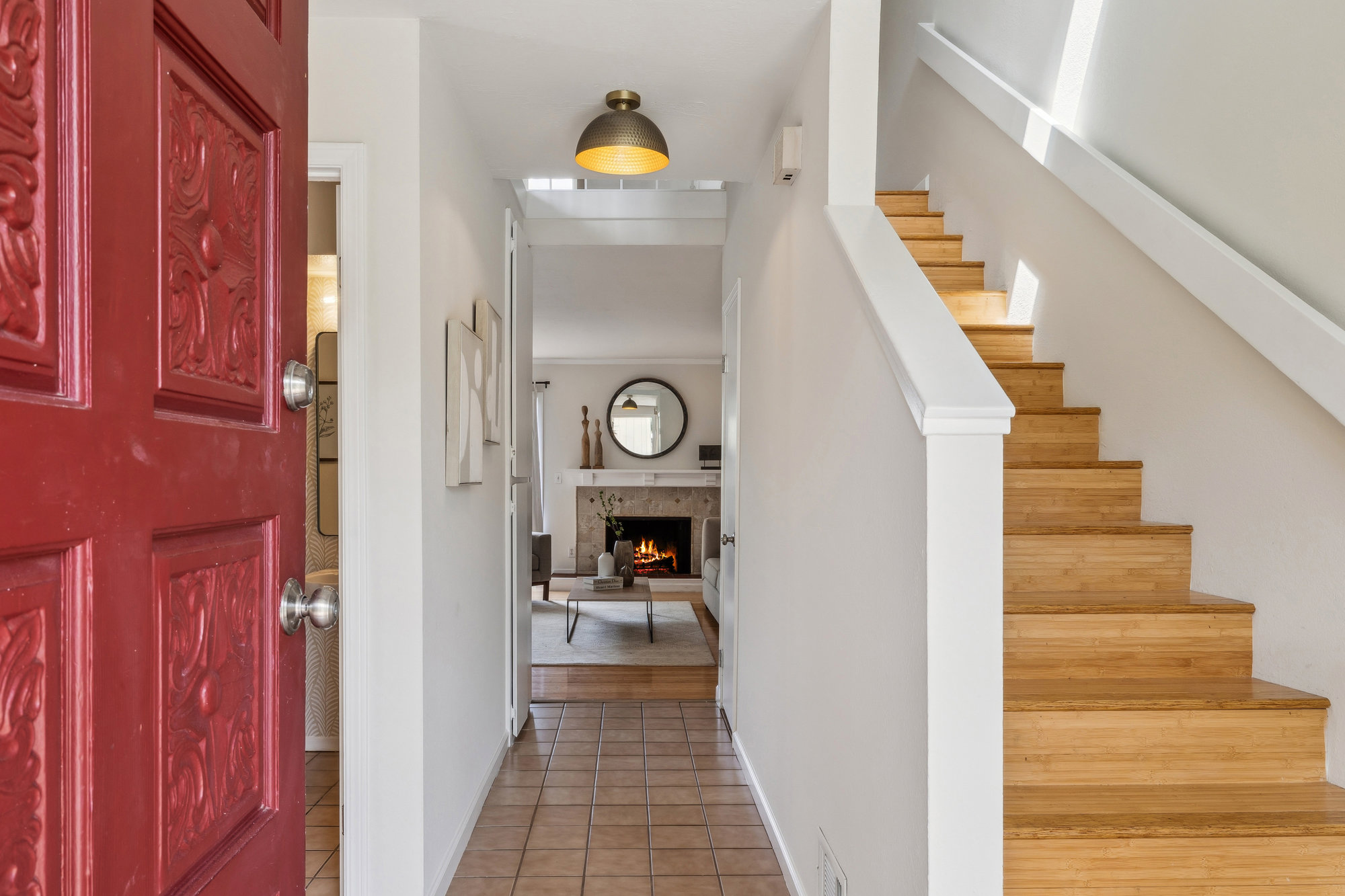 — Bamboo Floors & Cozy Wood-Burning Fireplace