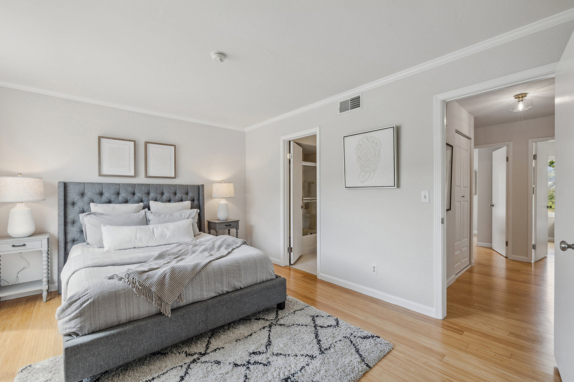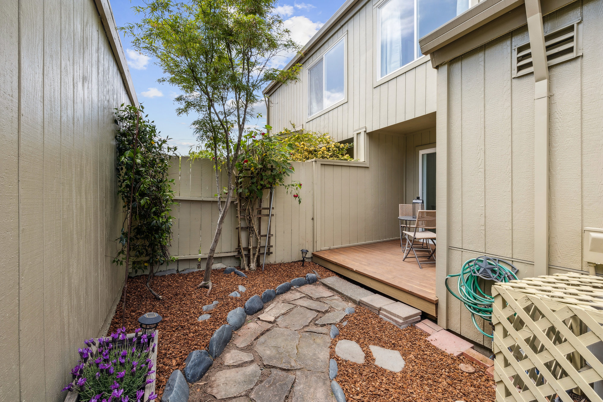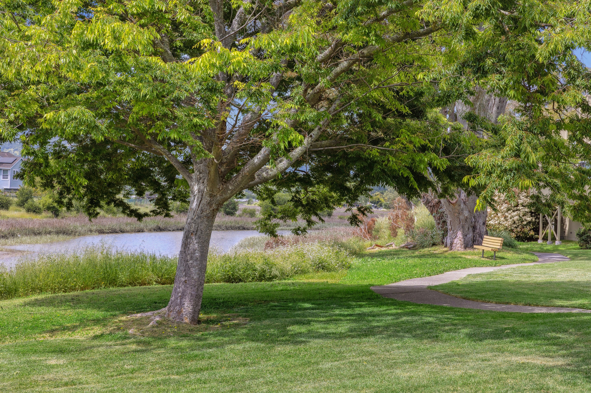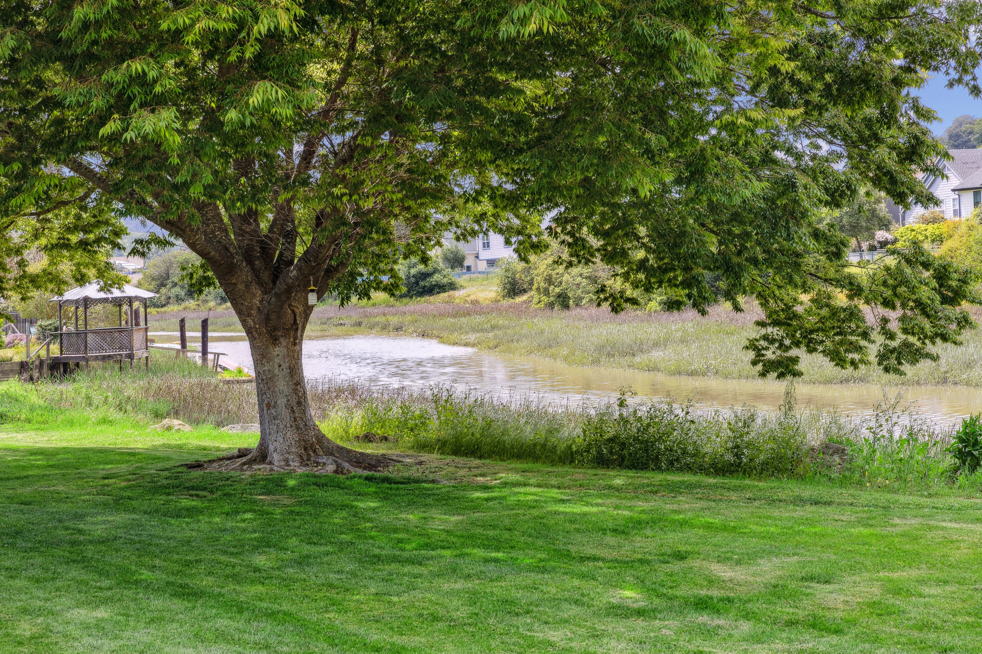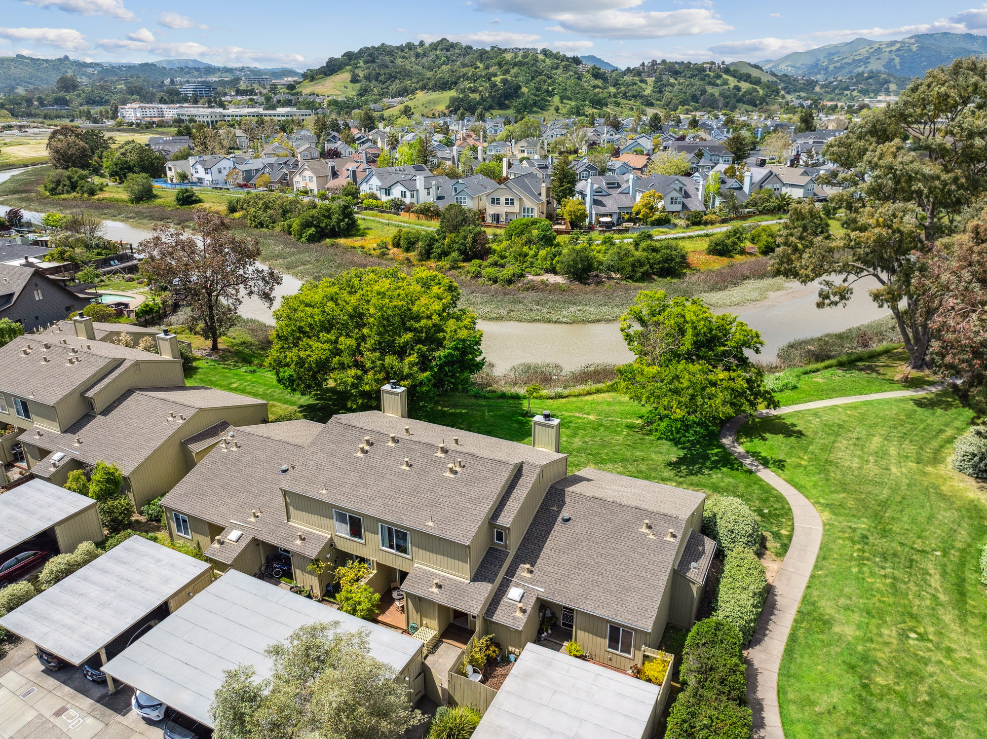 SOLD! Welcome to 6 Steven Way, a peaceful waterfront townhouse tucked away at the end of a quiet cul-de-sac in the coveted Marin Cove community. With serene views of Gallinas Creek and beautifully updated interiors, this two-story residence offers an effortless blend of comfort and coastal charm. The bright, renovated kitchen features sleek quartz countertops, stainless steel appliances, and playful pops of color, all complemented by modern lighting and updated hardware. Bamboo floors and dual-paned windows enhance the inviting interiors, while a cozy wood-burning fireplace anchors the living space for cooler evenings. Upstairs, three well-proportioned bedrooms and two full baths provide flexibility for family and guests. The outdoor spaces invite connection with nature, whether dining alfresco on the private patio, enjoying the flat lawn by the creek, or exploring nearby hiking trails and open spaces.