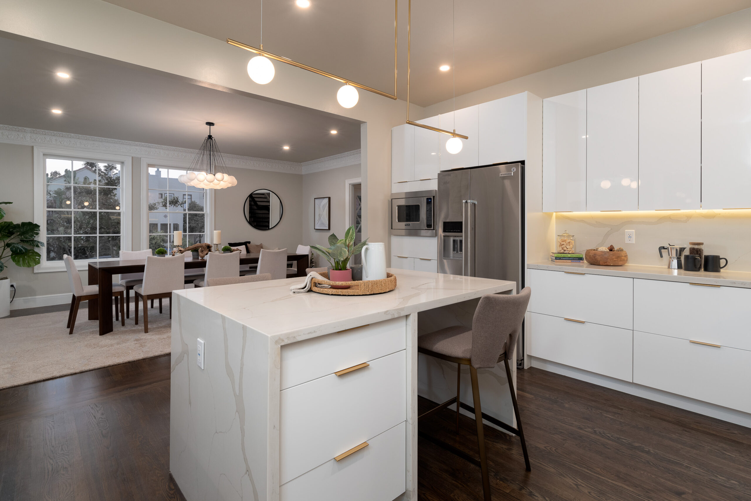 SOLD! Completely renovated estate on Haddon Hills 'Block of Mansions.' This entertainer's dream offers grand formal spaces, private rear gardens with custom hardscape, a new chef’s kitchen, designer bathrooms, and two additional rooms on the main level perfect as bedrooms, office, gym, etc. An additional 784 square feet (approx.) of finished basement is space not included in the home's advertised square footage. This studs-up remodel includes a new roof, 200 Amp electrical, plumbing, HVAC, washer/dryer, landscaping, and an EV hook-up in the garage. Positioned at the top of the summit just above the waters of Lake Merritt and publicized in the past as “the most beautiful spot for a residence ever seen,” this 1920s neighborhood was ahead of its time. Underground power lines, quick access to San Francisco, and just minutes from Grand Lake's fabulous shops, restaurants, theatre, and farmers market, the location is ideal.