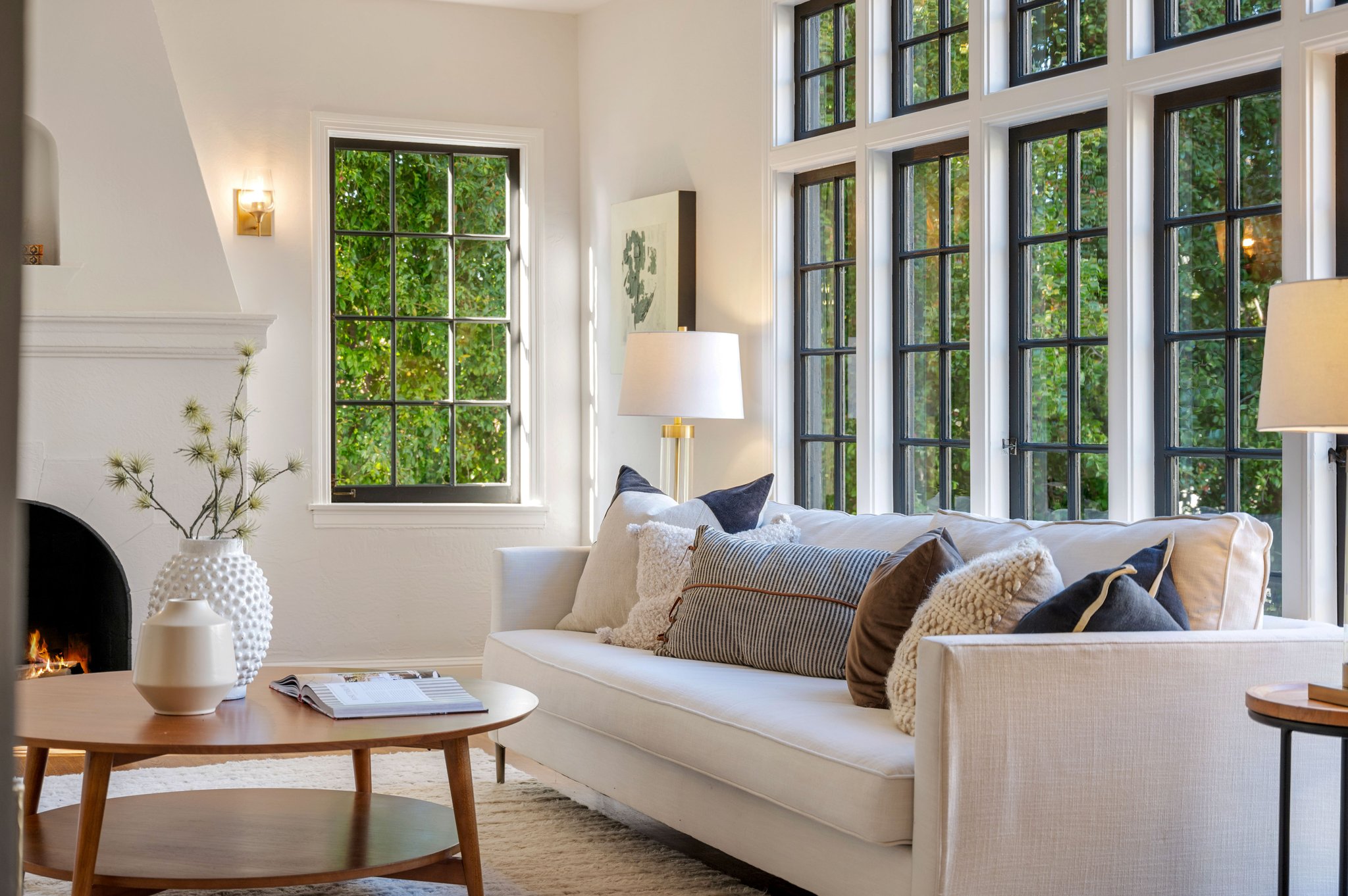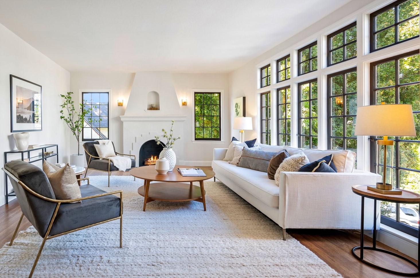 — Stunning living room clad in floor to ceiling French windows