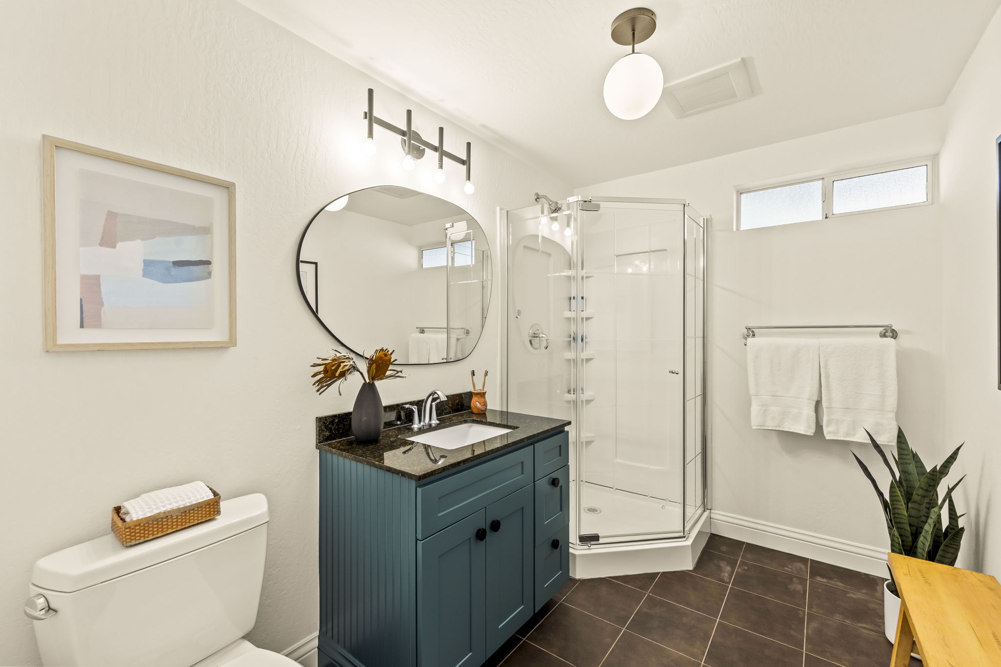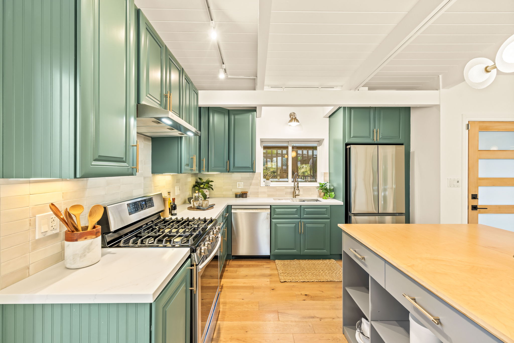 — Refreshened kitchen, bathrooms, new engineered wood floors, new interior and exterior paint, and new lighting