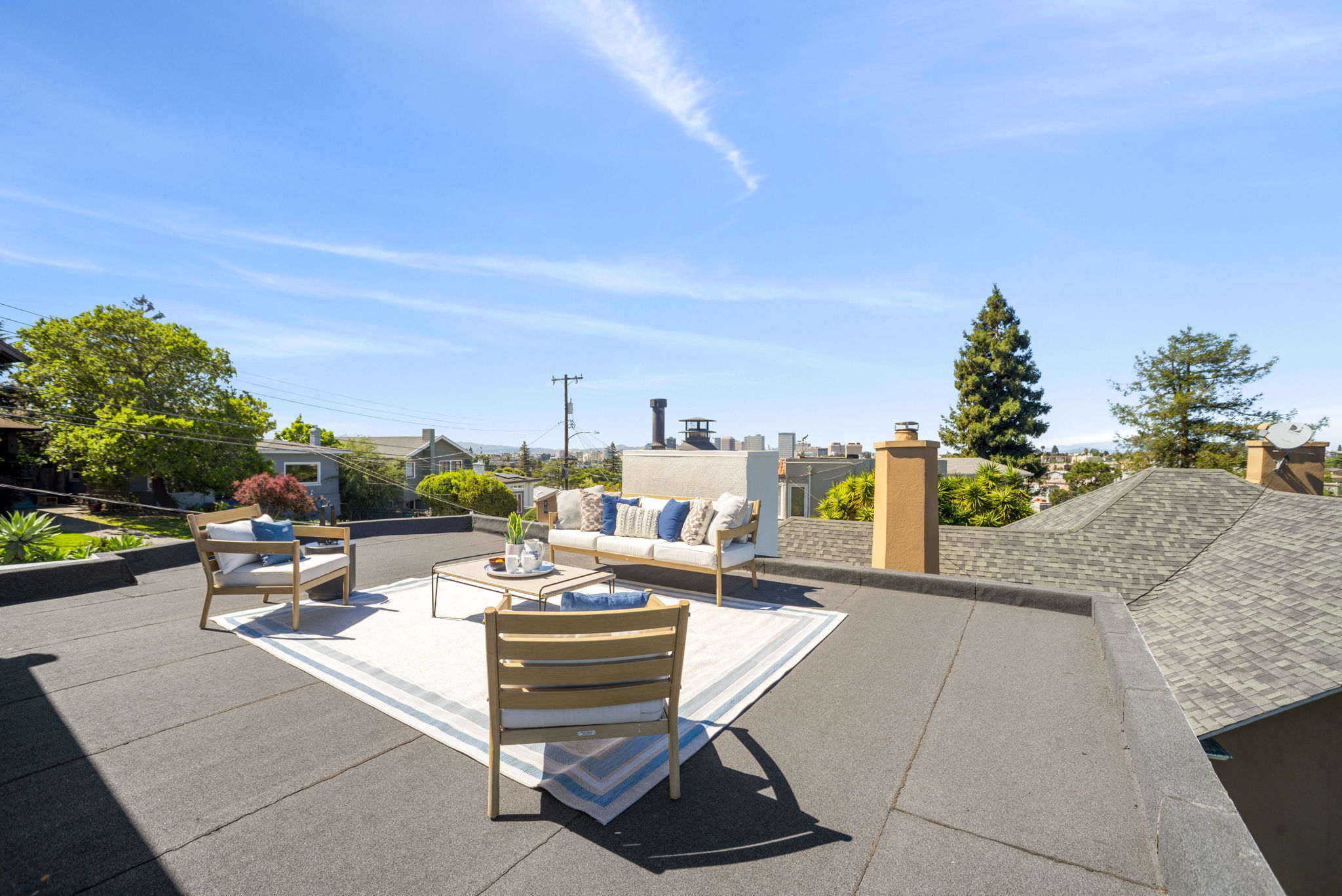 The upper level is anchored by a serene primary suite retreat with sweeping views and direct access to the rooftop, an ideal setting for quiet mornings or sunset evenings. Additional bedrooms and updated baths are thoughtfully arranged across a split-level layout that enhances both privacy and functionality.