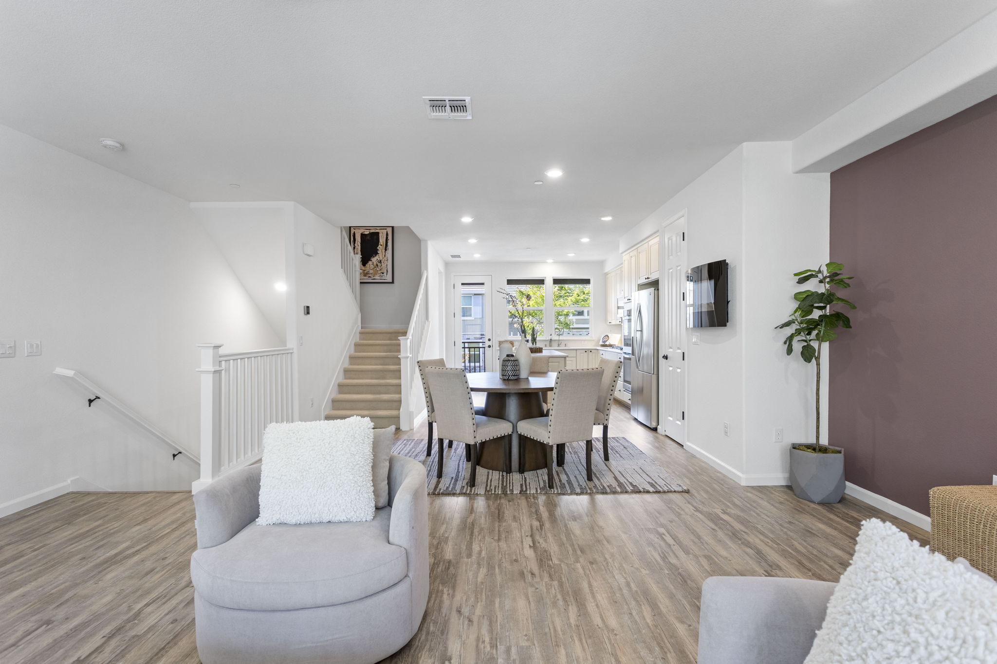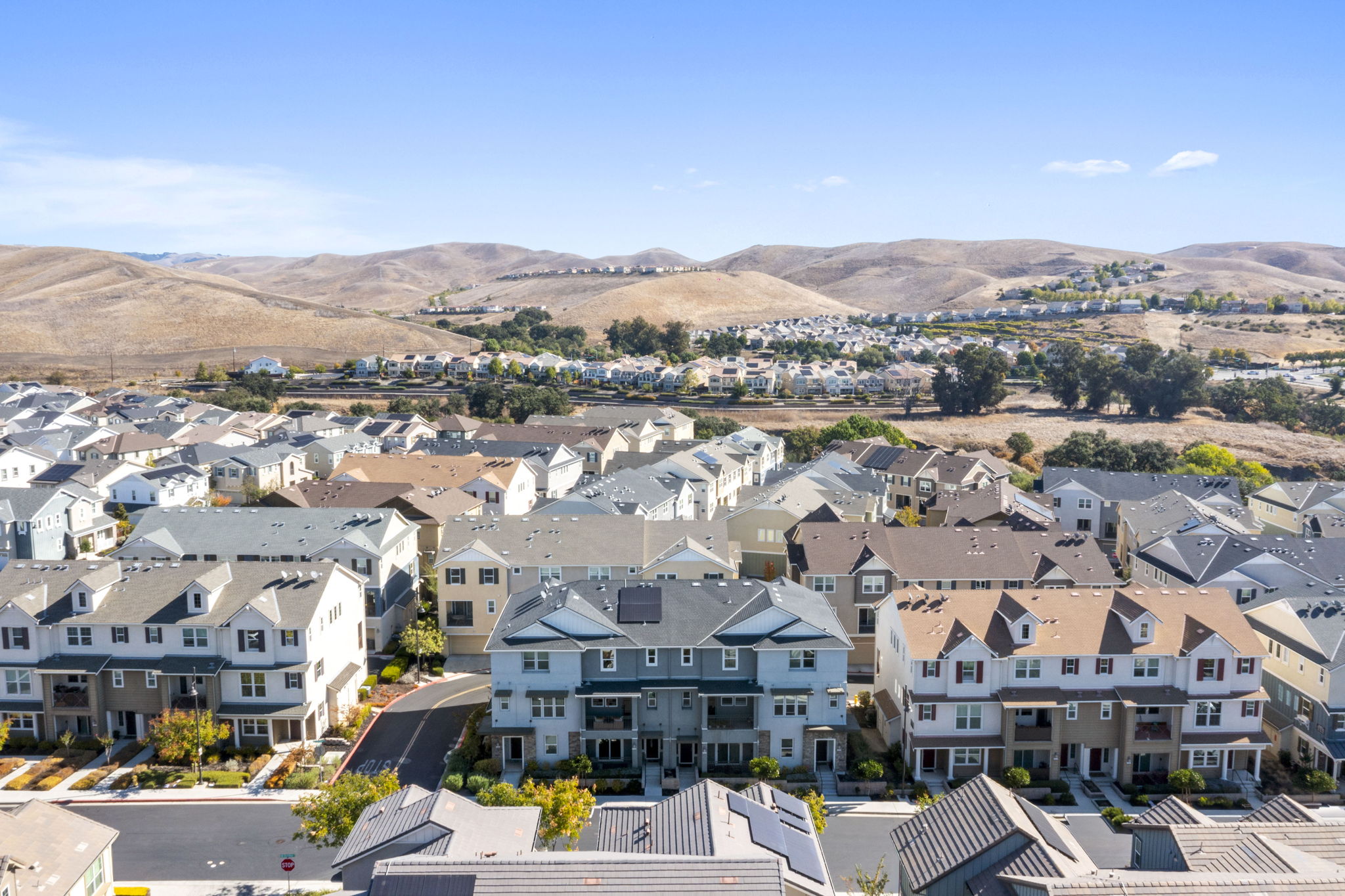 Discover elevated living in this beautifully appointed 3-bedroom, 3.5-bath townhome located in the highly sought-after Wallis Ranch community in Dublin. Offering 1,962 sq ft of thoughtfully designed living space across three levels, this home seamlessly blends style, comfort, and functionality. Step inside to an open, light-filled layout with soaring ceilings and an abundance of natural light throughout the home. The modern kitchen, open-concept design, and spacious living areas create an inviting atmosphere you’ll love coming home to. Retreat to the luxurious primary suite featuring a generously sized walk-in closet and a spa-like ensuite bathroom – your own personal sanctuary. Enjoy sustainable living with an owned solar system, backup battery power wall, and EV charger – smart upgrades that add long-term value and peace of mind. Just one block away, indulge in resort-style amenities including a clubhouse, fully equipped gym, pool, and a 12-acre park with multiple playgrounds and scenic hiking trails. Wallis Ranch is more than just a neighborhood – it’s a vibrant community with monthly events that bring neighbors together. Located minutes from top-rated Dublin schools, shopping, dining, and major commuter routes, this home offers the perfect balance of tranquility and convenience.