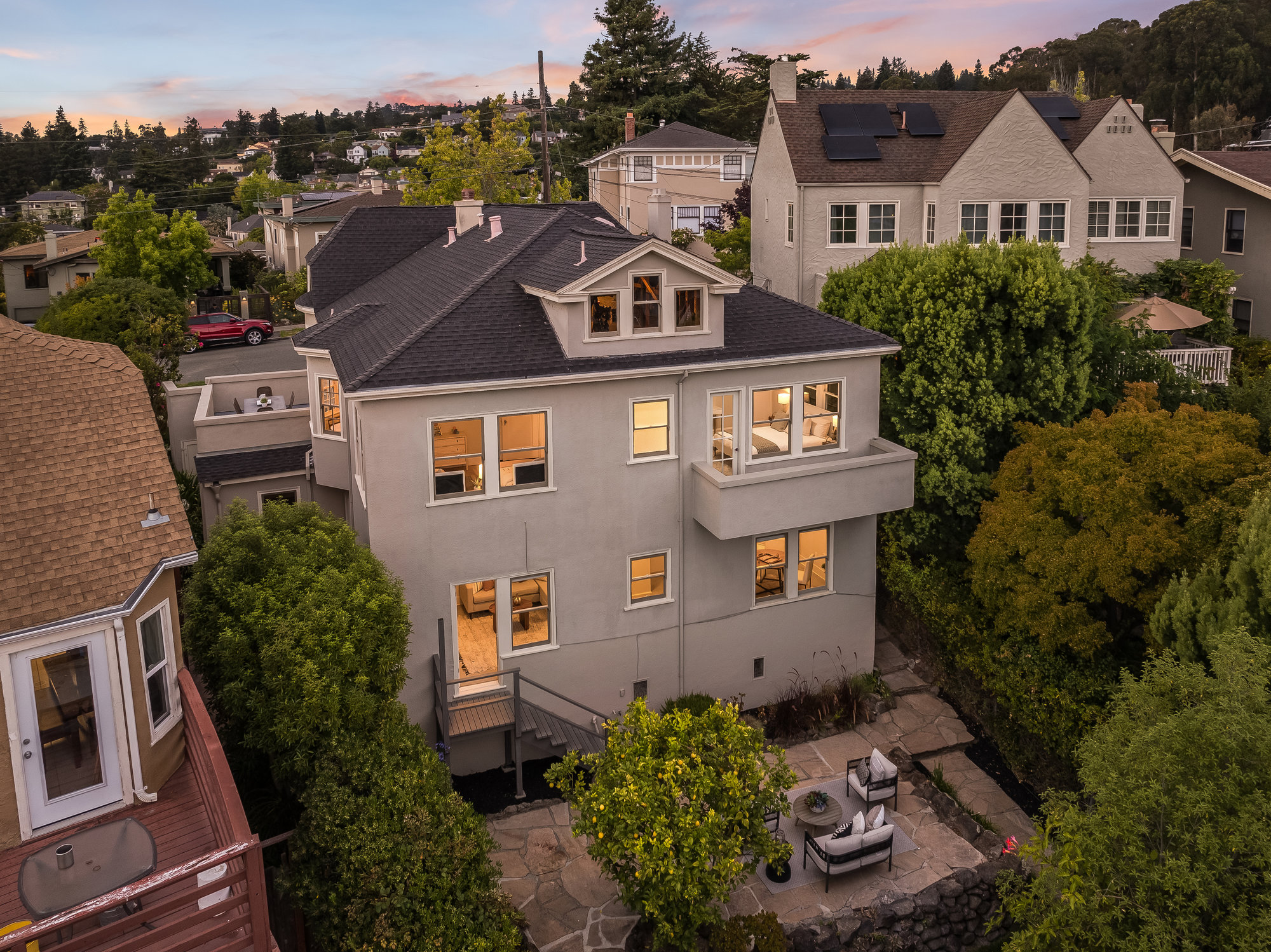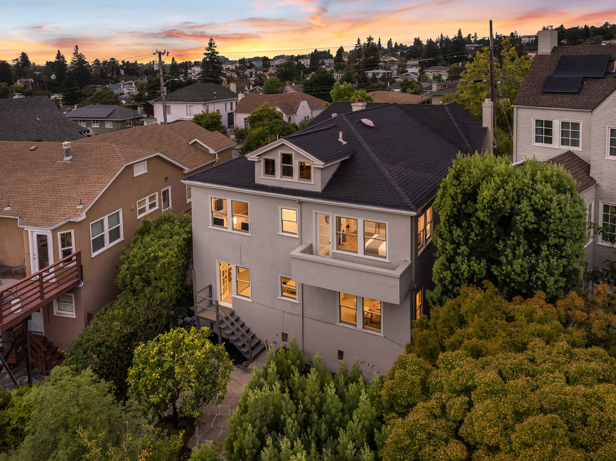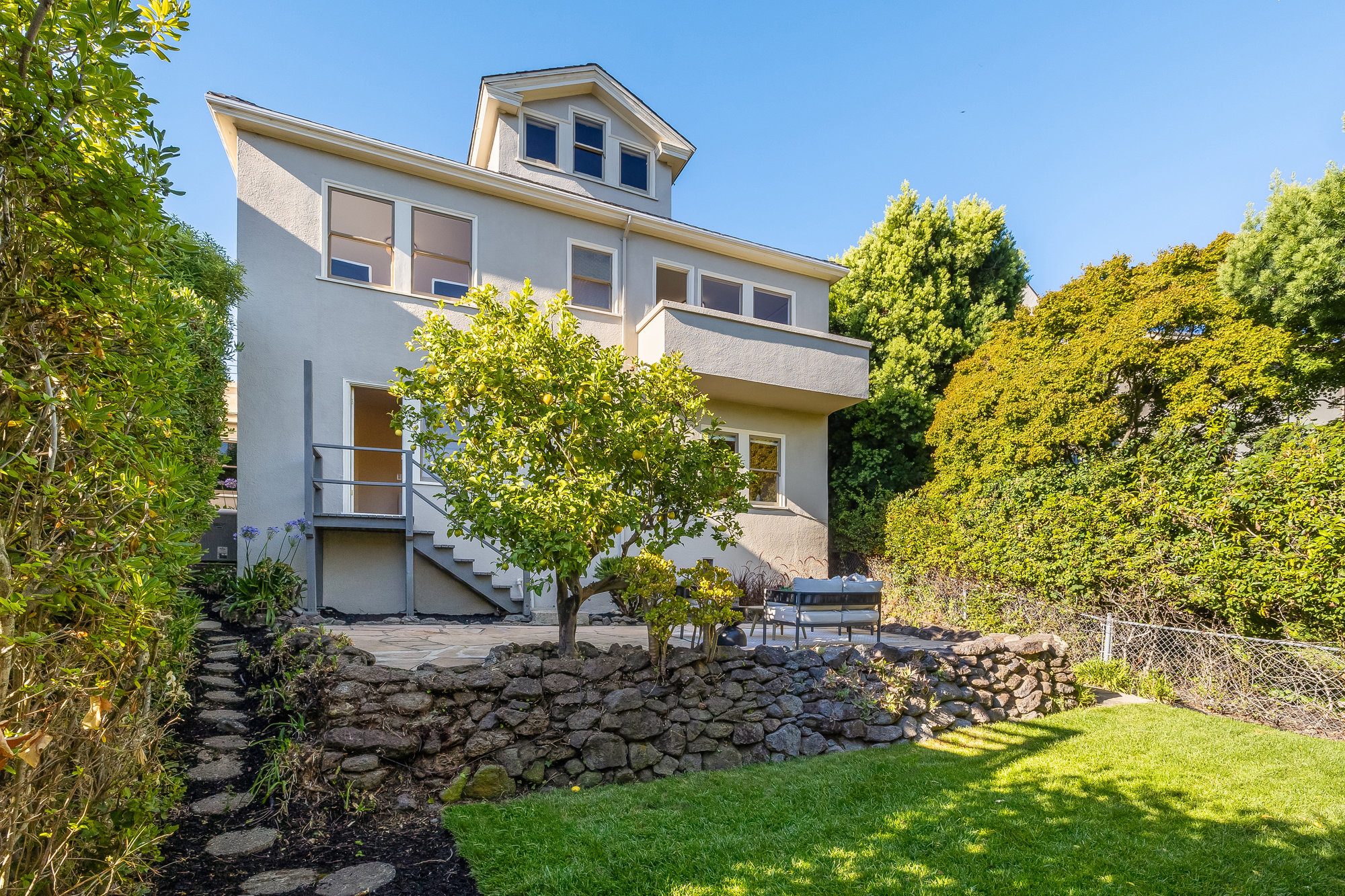 Pride of ownership exudes from this pristine light-filled home owned and cared for by the same family since 1943. Formal living and dining rooms with designer lighting, glistening hardwood floors, and a door leading out to your private rooftop terrace for evening wine, morning coffee, or dining al fresco. Freshly updated eat-in kitchen with new cabinetry, stainless appliances, hardwood floors, stone countertops, and artisan tile backsplash. Three light-filled bedrooms, including one with a delightful balcony, are found on the main level. Accompanied by a fully refreshed hall bath with floating vanity, wood accent tones, and matte gold fixtures, the floor plan is ideal. A stairwell off the main hall leads to a sizable semi-finished attic area with great storage, and potential for various other uses. The large, lower level of the home will surprise with a spacious den, doors leading to the side and rear gardens, a full bathroom, additional office-flex space, a workshop area with storage and laundry, plus direct access to the home’s attached garage. Charming, private rear gardens promise to delight, ideal for entertaining and play, with level grassy areas, a patio for relaxing, and a mature fruit-bearing lemon tree. Located on a friendly street, the home is just blocks from Lakeshore Avenue’s wonderful shops and restaurants, the award-winning Crocker Highlands Elementary, and just minutes by car to the Bay Bridge to San Francisco.