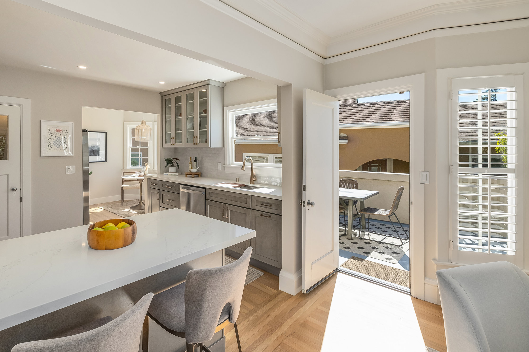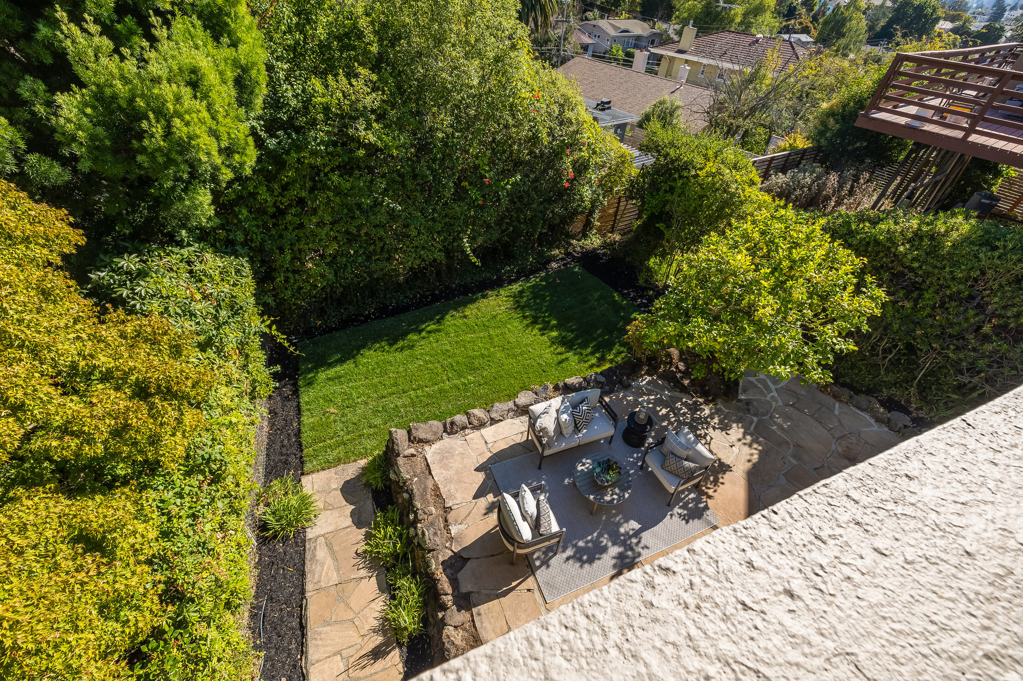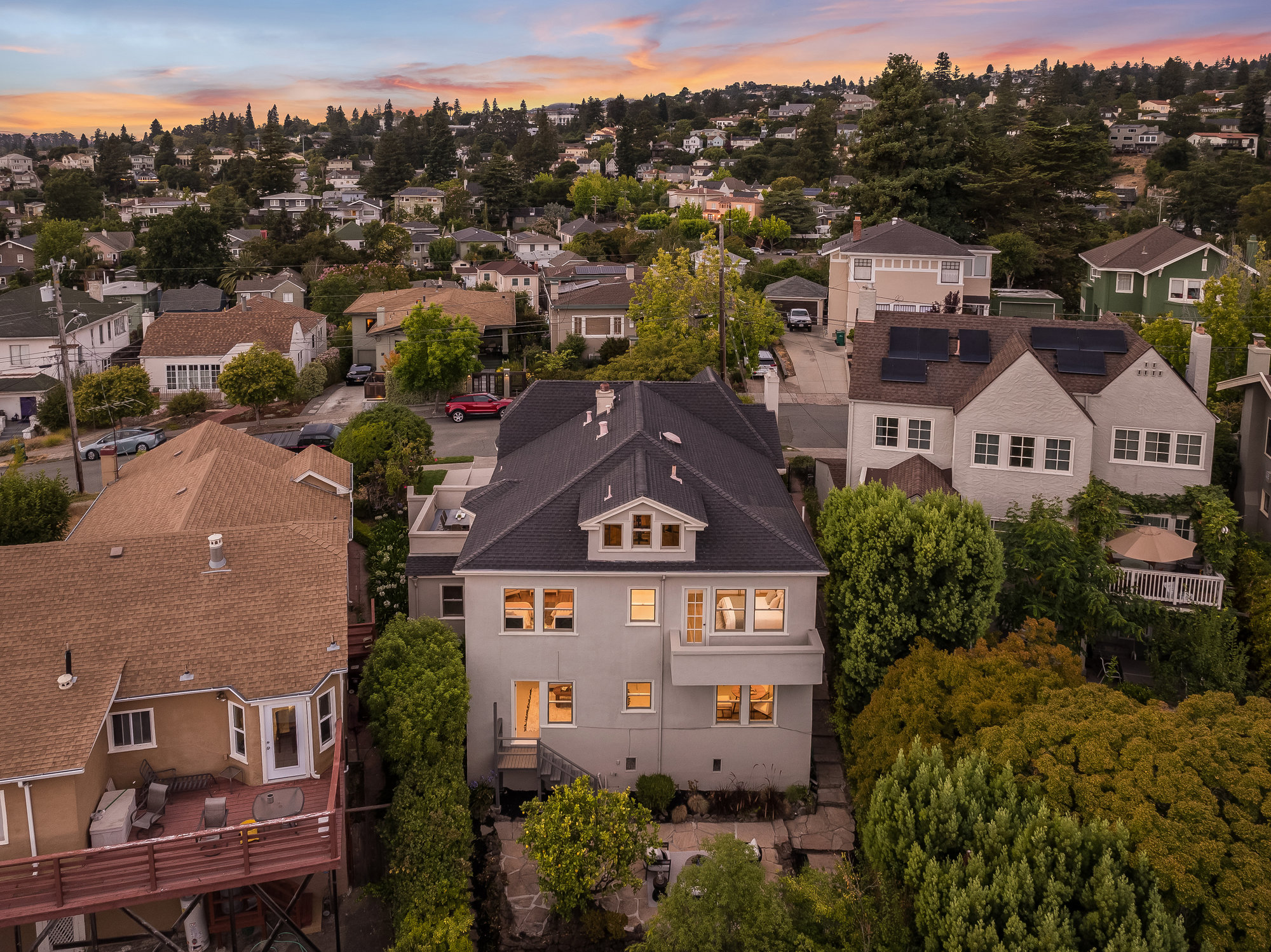 Pride of ownership exudes from this pristine light-filled home owned and cared for by the same family since 1943. Formal living and dining rooms with designer lighting, glistening hardwood floors, and a door leading out to your private rooftop terrace for evening wine, morning coffee, or dining al fresco. Freshly updated eat-in kitchen with new cabinetry, stainless appliances, hardwood floors, stone countertops, and artisan tile backsplash. Three light-filled bedrooms, including one with a delightful balcony, are found on the main level. Accompanied by a fully refreshed hall bath with floating vanity, wood accent tones, and matte gold fixtures, the floor plan is ideal. A stairwell off the main hall leads to a sizable semi-finished attic area with great storage, and potential for various other uses. The large, lower level of the home will surprise with a spacious den, doors leading to the side and rear gardens, a full bathroom, additional office-flex space, a workshop area with storage and laundry, plus direct access to the home’s attached garage. Charming, private rear gardens promise to delight, ideal for entertaining and play, with level grassy areas, a patio for relaxing, and a mature fruit-bearing lemon tree. Located on a friendly street, the home is just blocks from Lakeshore Avenue’s wonderful shops and restaurants, the award-winning Crocker Highlands Elementary, and just minutes by car to the Bay Bridge to San Francisco.