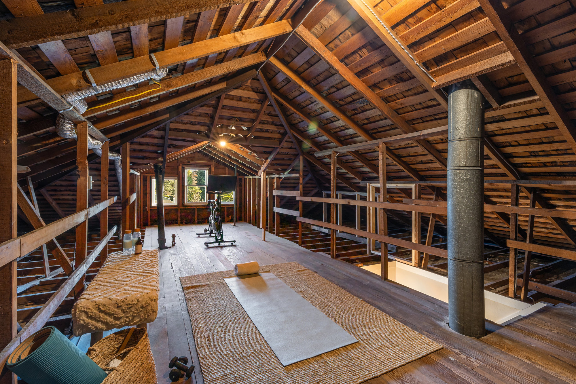 — Large semi finished attic space with stairs up