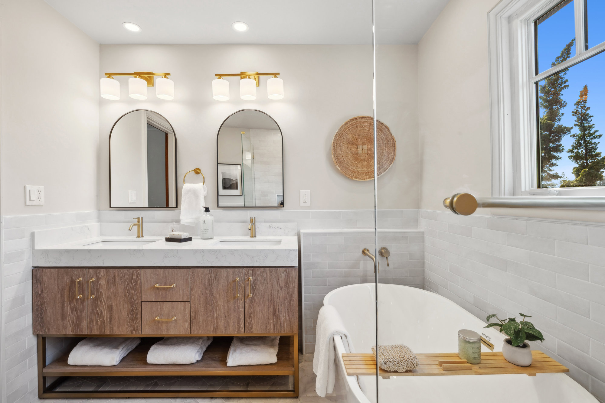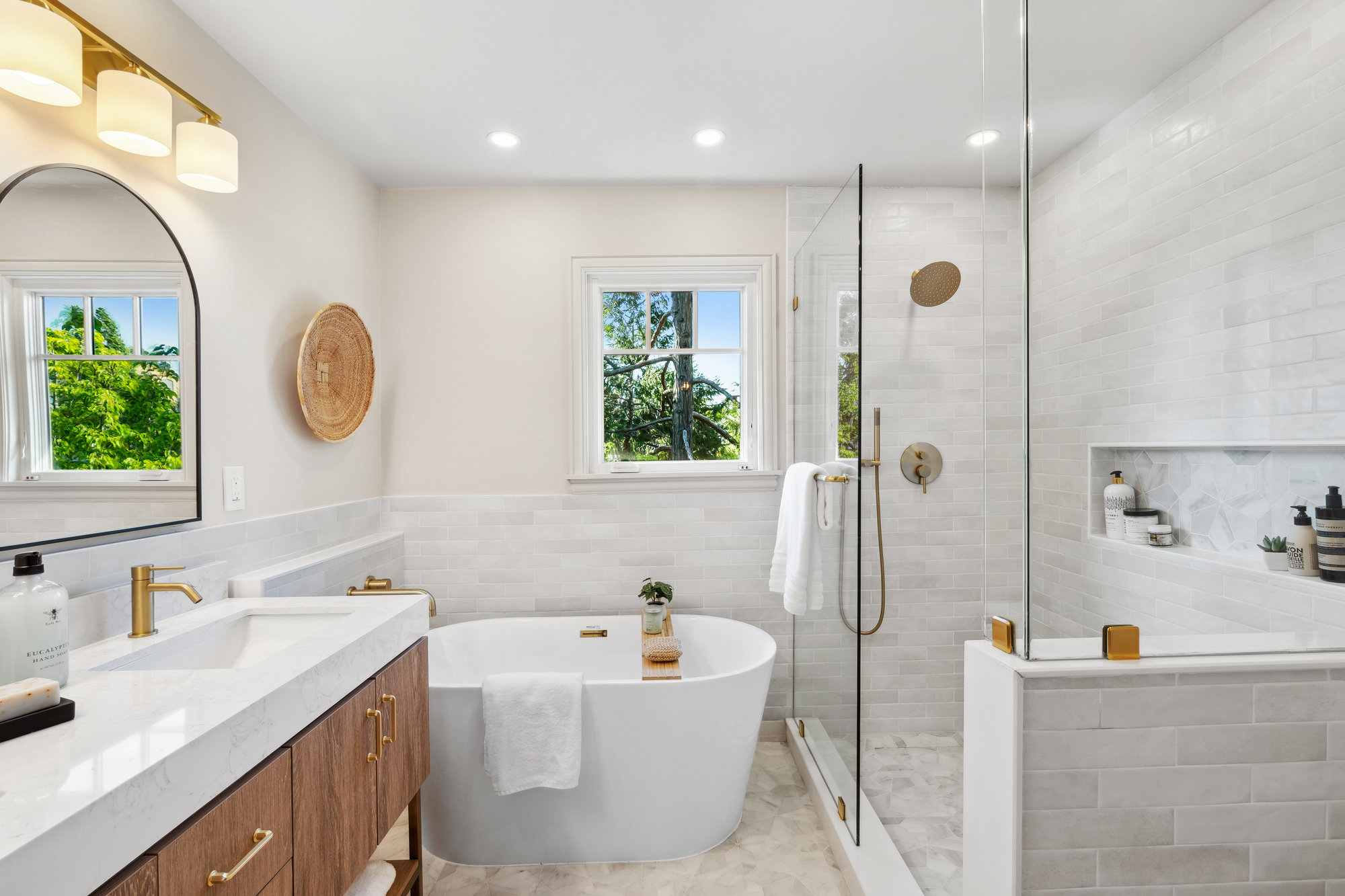 — Renovated Bathroom with Soaking Tub & Frameless Shower