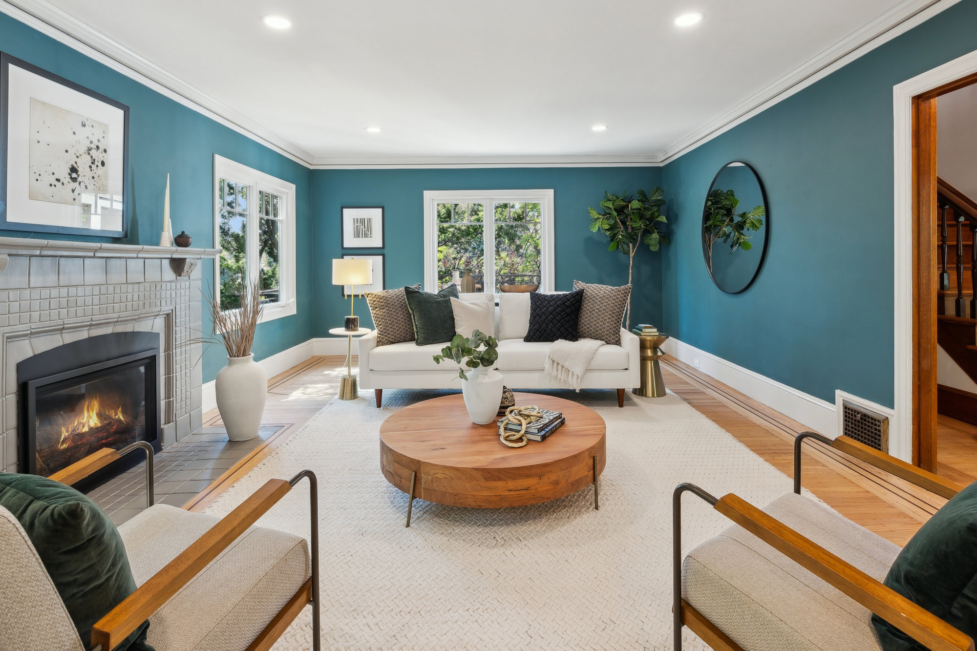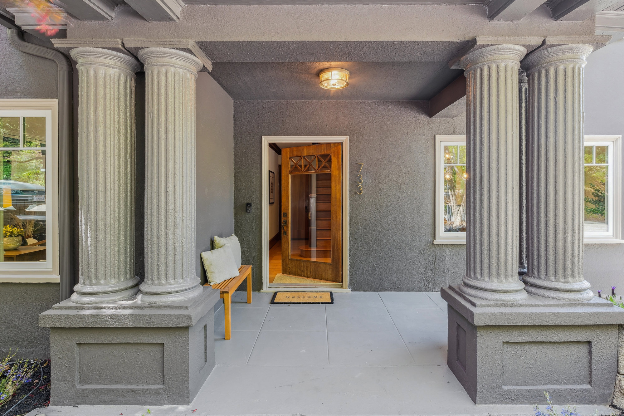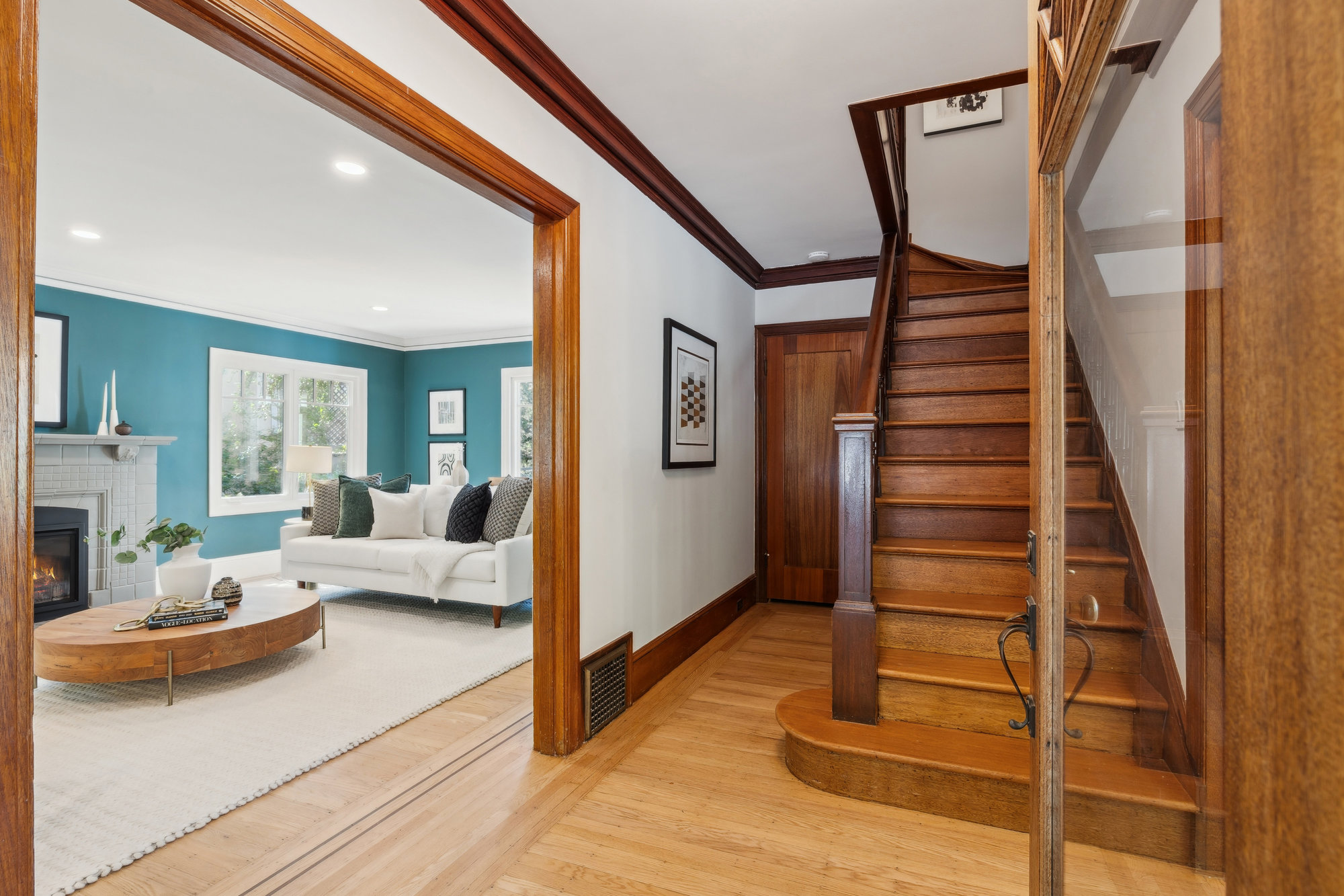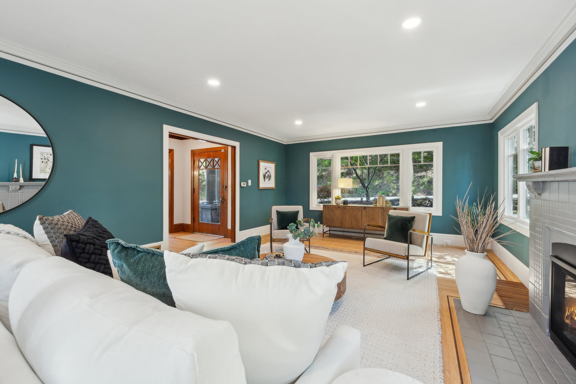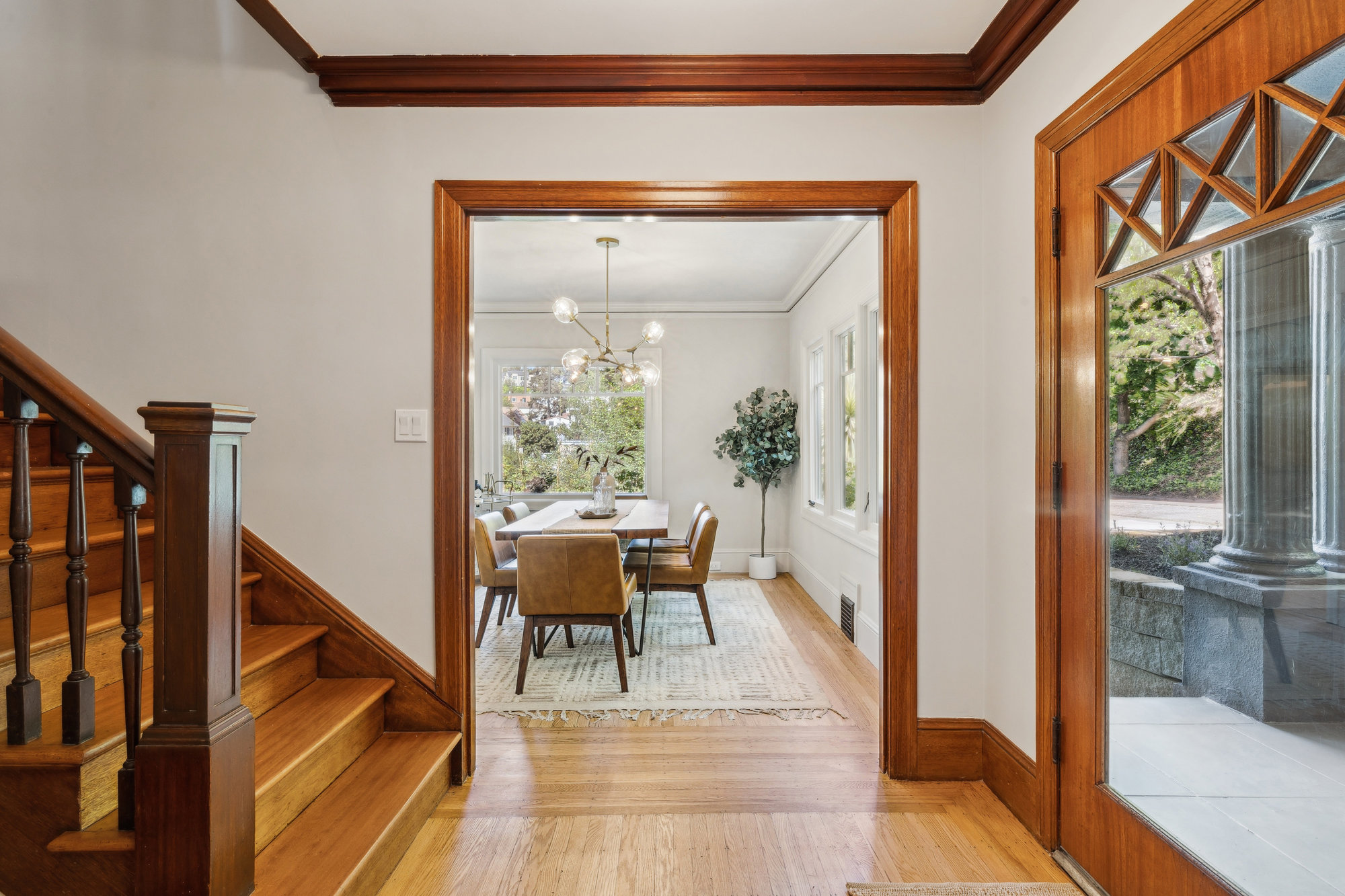 Set behind a columned portico on one of Crocker Highlands’ beloved tree-lined streets, this classic Traditional offers timeless curb appeal, abundant natural light, and thoughtfully updated interiors designed for modern living. Original millwork and vintage detailing set the tone in the formal foyer, where warm wood trim and the original staircase welcome you home. A grand living room is anchored by a gas fireplace, while the light-filled dining room invites connection and celebration.