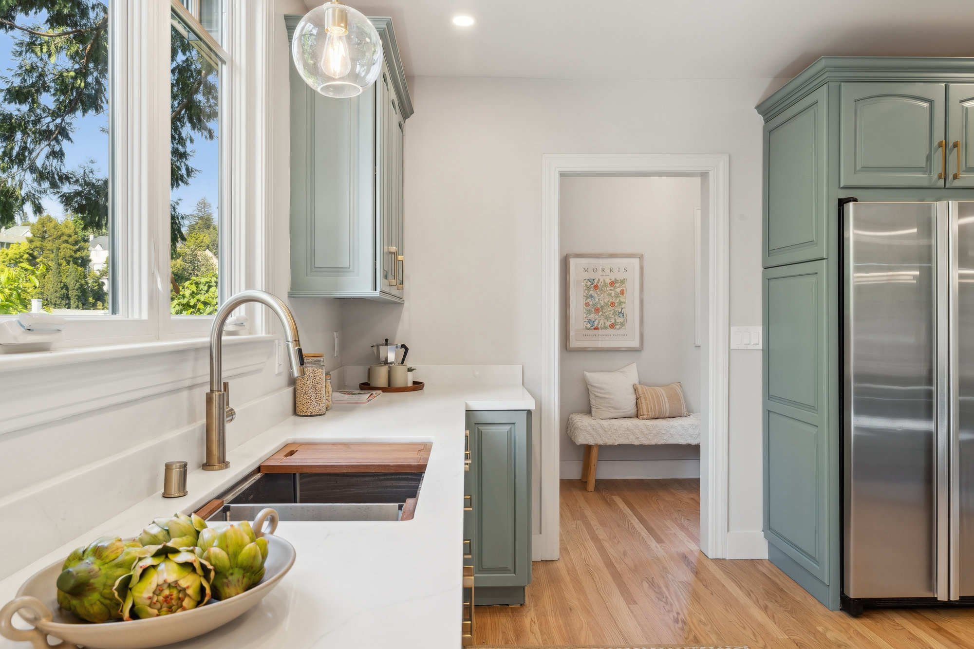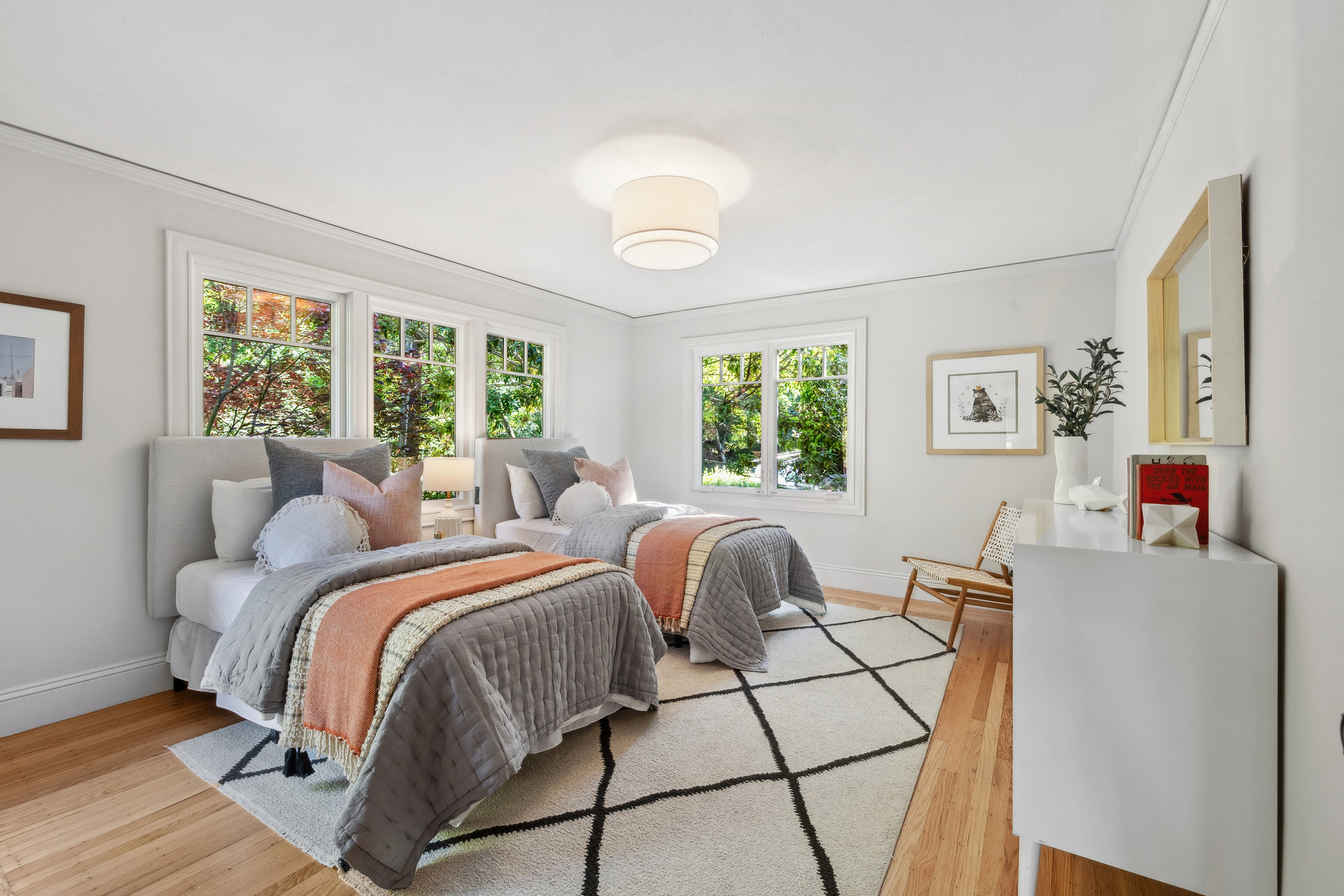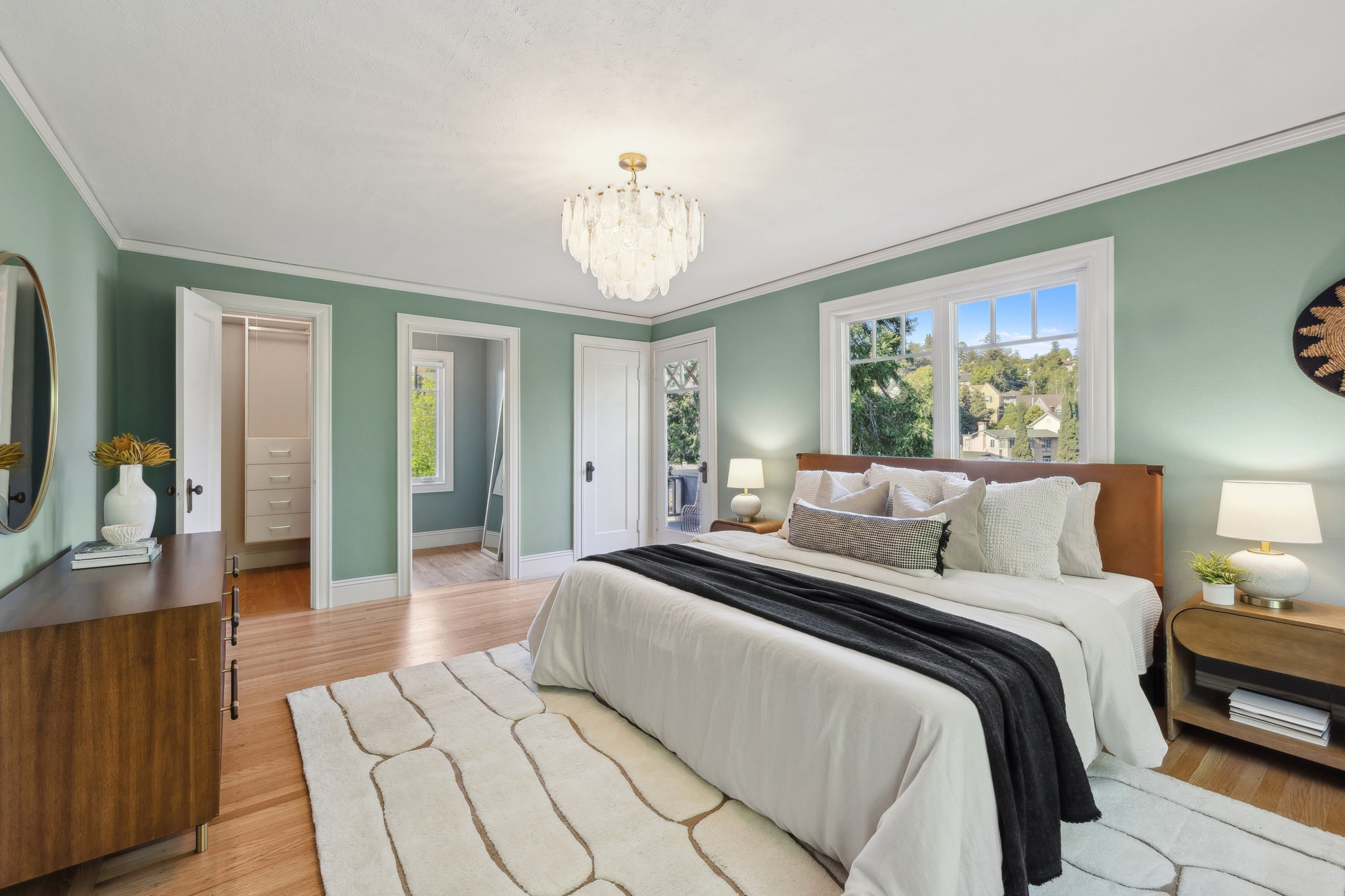 The lower level expands the living space with a fourth bedroom, den, full bath, and direct access to sunny rear gardens. A fully updated laundry and craft zone offers functionality with refined finishes. Additional upgrades include newer dual-pane windows, and EV charger. Minutes from award-winning Crocker Highlands Elementary, the vibrant energy of Lakeshore Avenue, and quick Bay Bridge access to San Francisco.