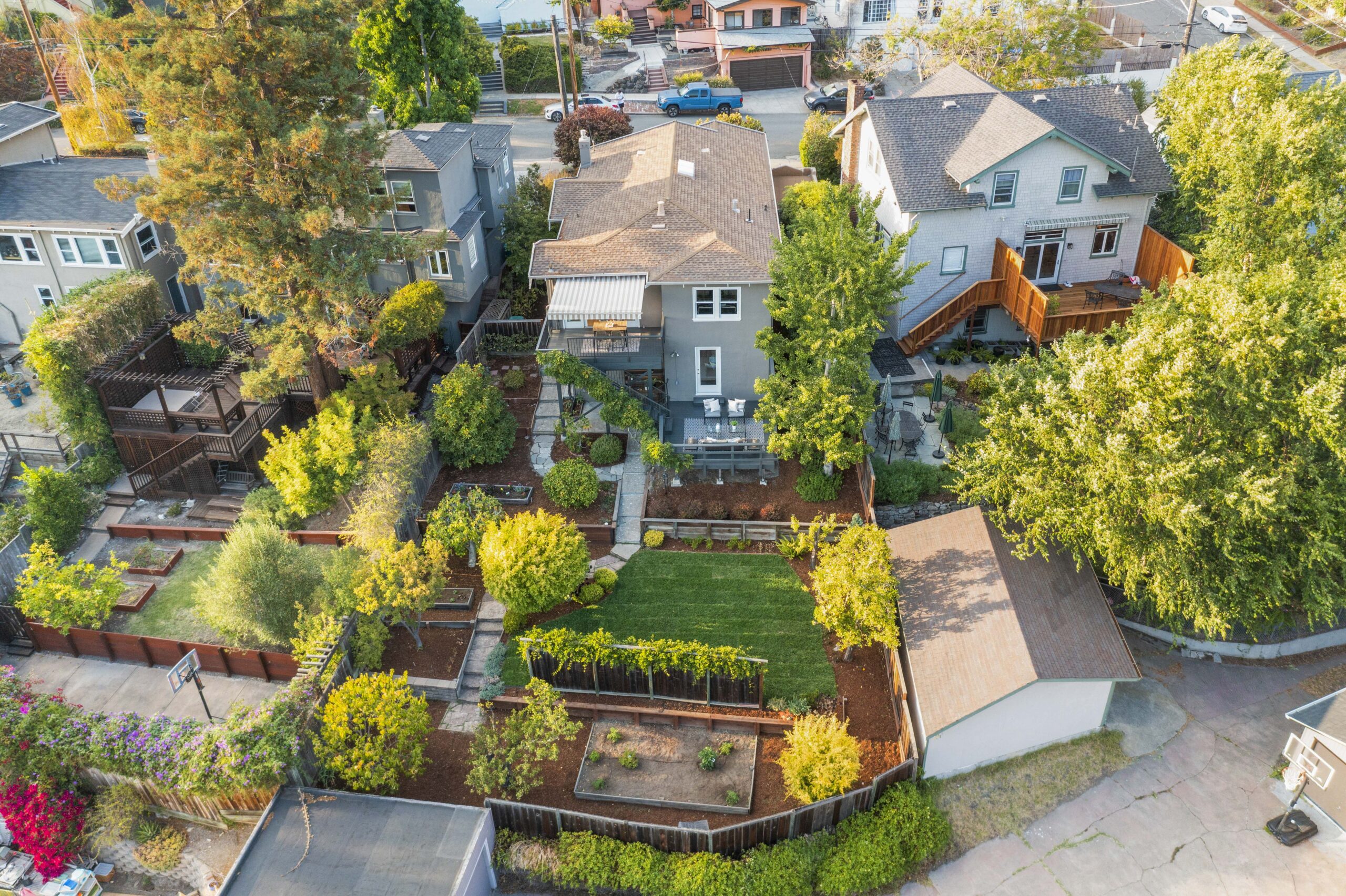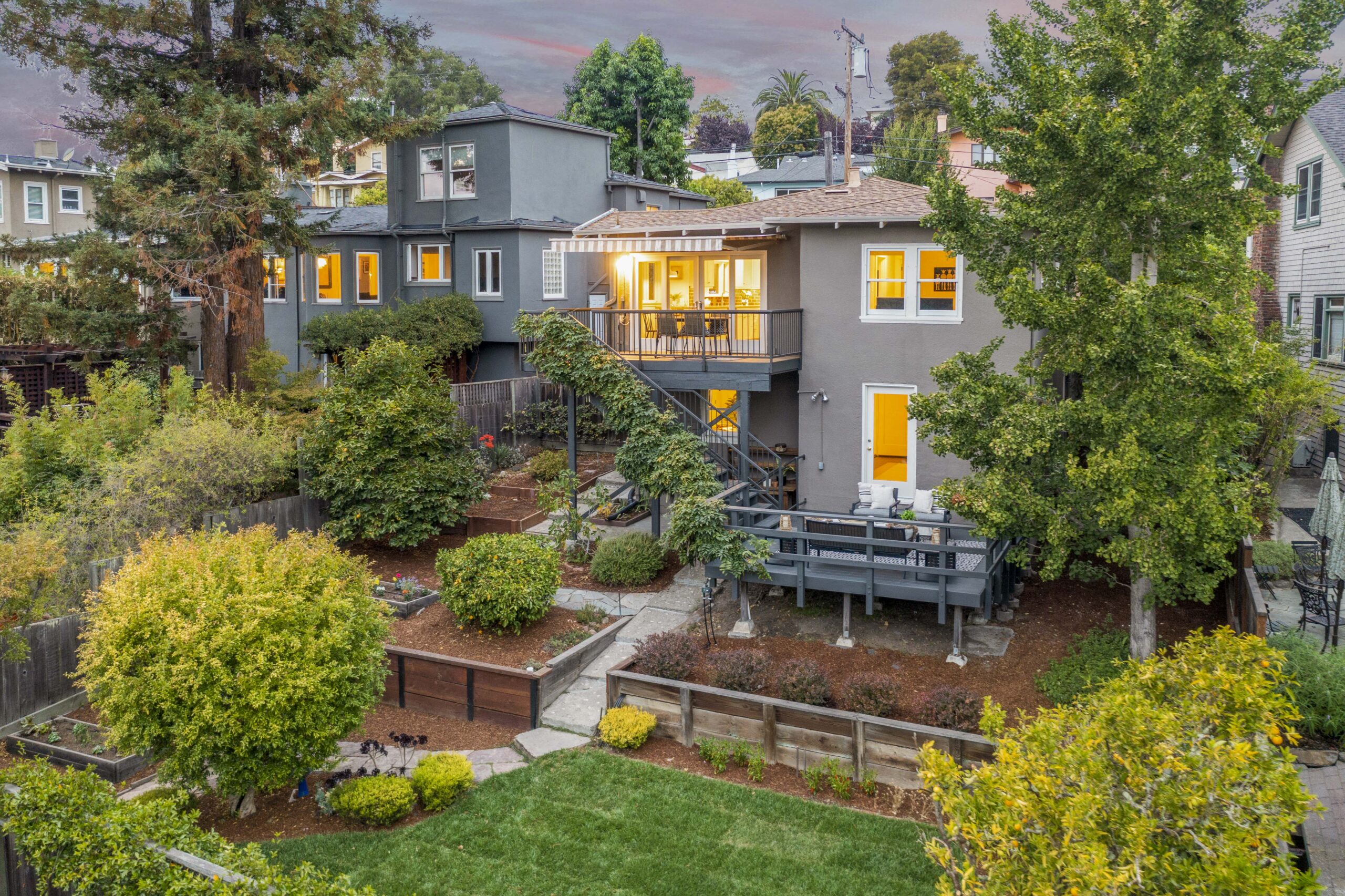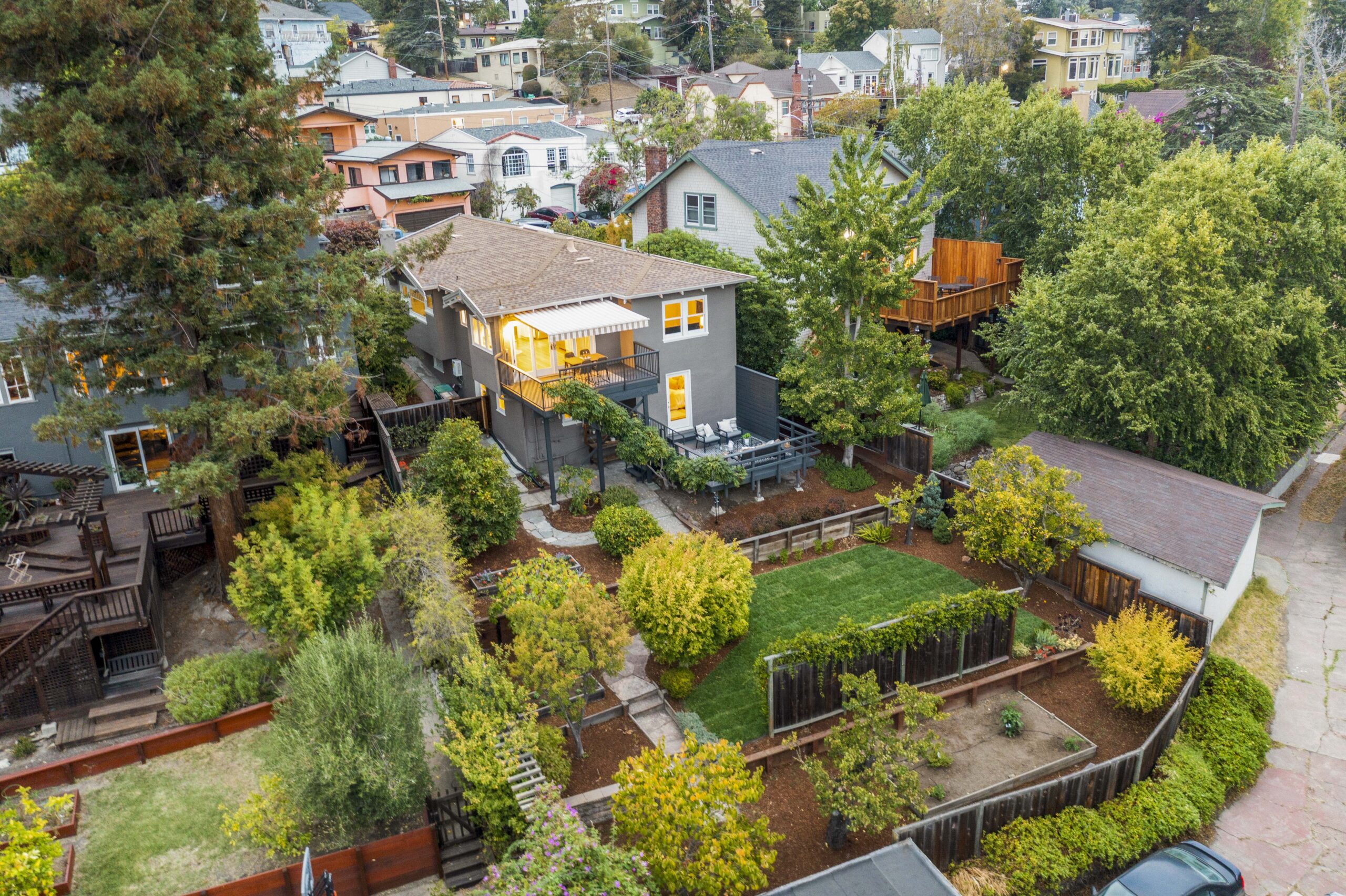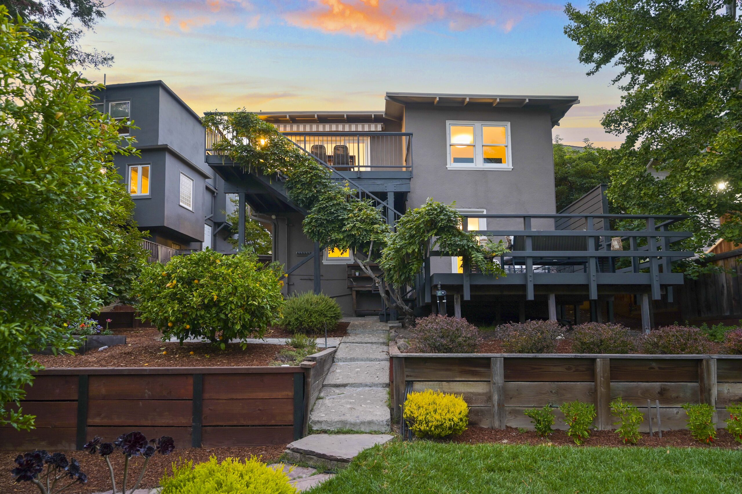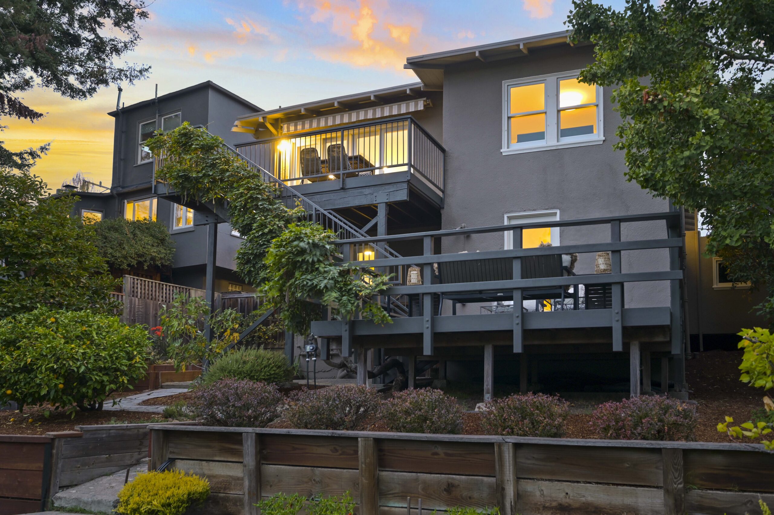 SALE PENDING! Quintessential Crocker Highlands Bungalow positioned just blocks from the best of Lakeshore Ave. Impeccable pride of ownership exudes from this sparkling home positioned on a sunny oversized lot. The spacious chef’s kitchen with stainless designer appliances rolls onto a sunny deck overlooking the private gardens and neighborhood vistas. The formal living and dining areas are a delight with recently refined plaster walls and ceiling, paired with glistening hardwood floors. A generously proportioned hall bathroom sits between two bedrooms while a 3rd en-suite bedroom with a full bathroom is located on the lower level. Doors from the en-suite flow onto the gardens with grassy areas perfect for play as well as fruit trees and garden beds for the urban farmer. A large utility den with laundry is located on the lower level as well as additional deep storage. The detached garage is found off the side of the house with additional off-street parking. Just blocks from the award-winning Crocker Highlands Elementary, Hwy 580, and Bay Bridge to SF.