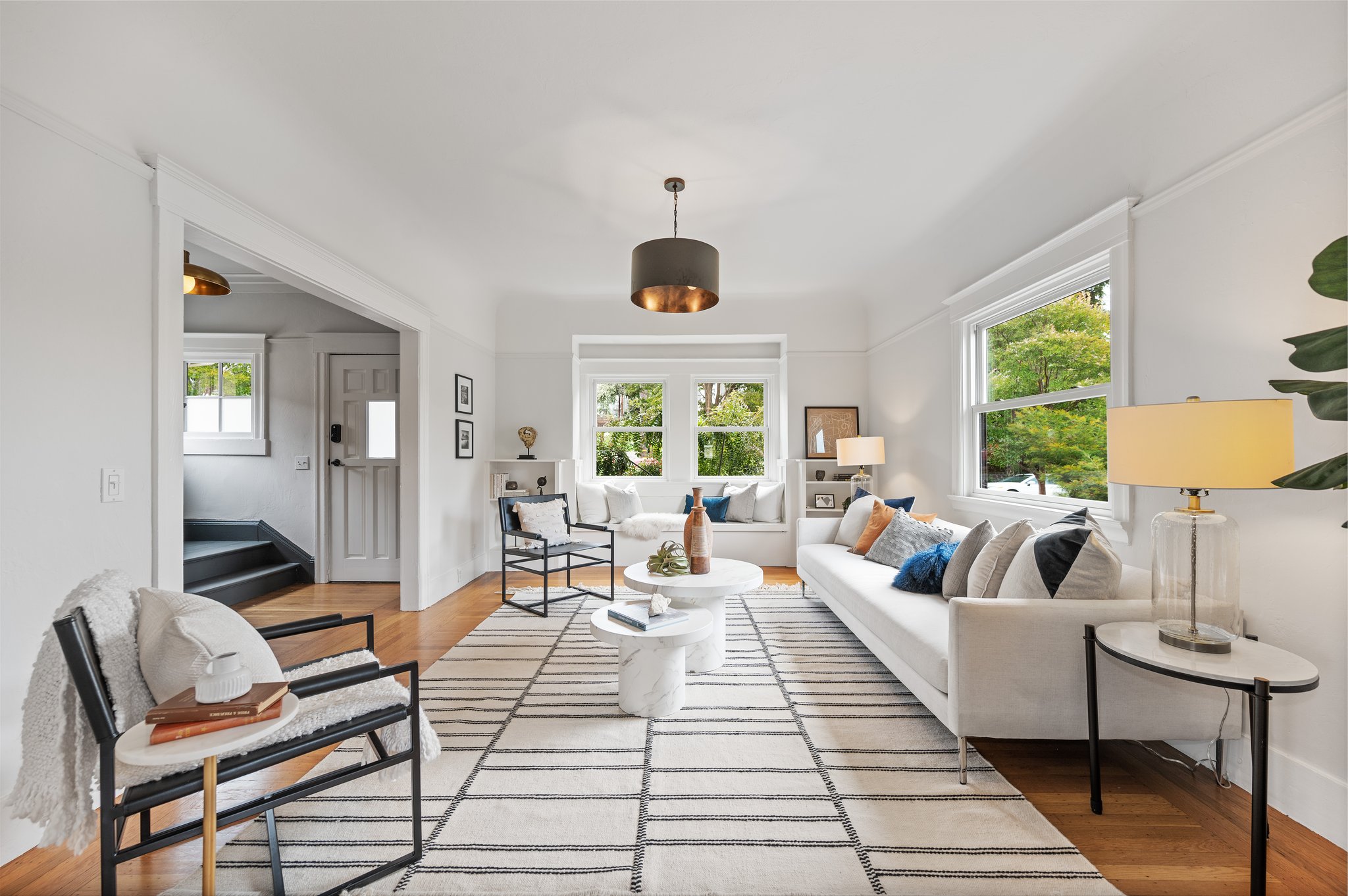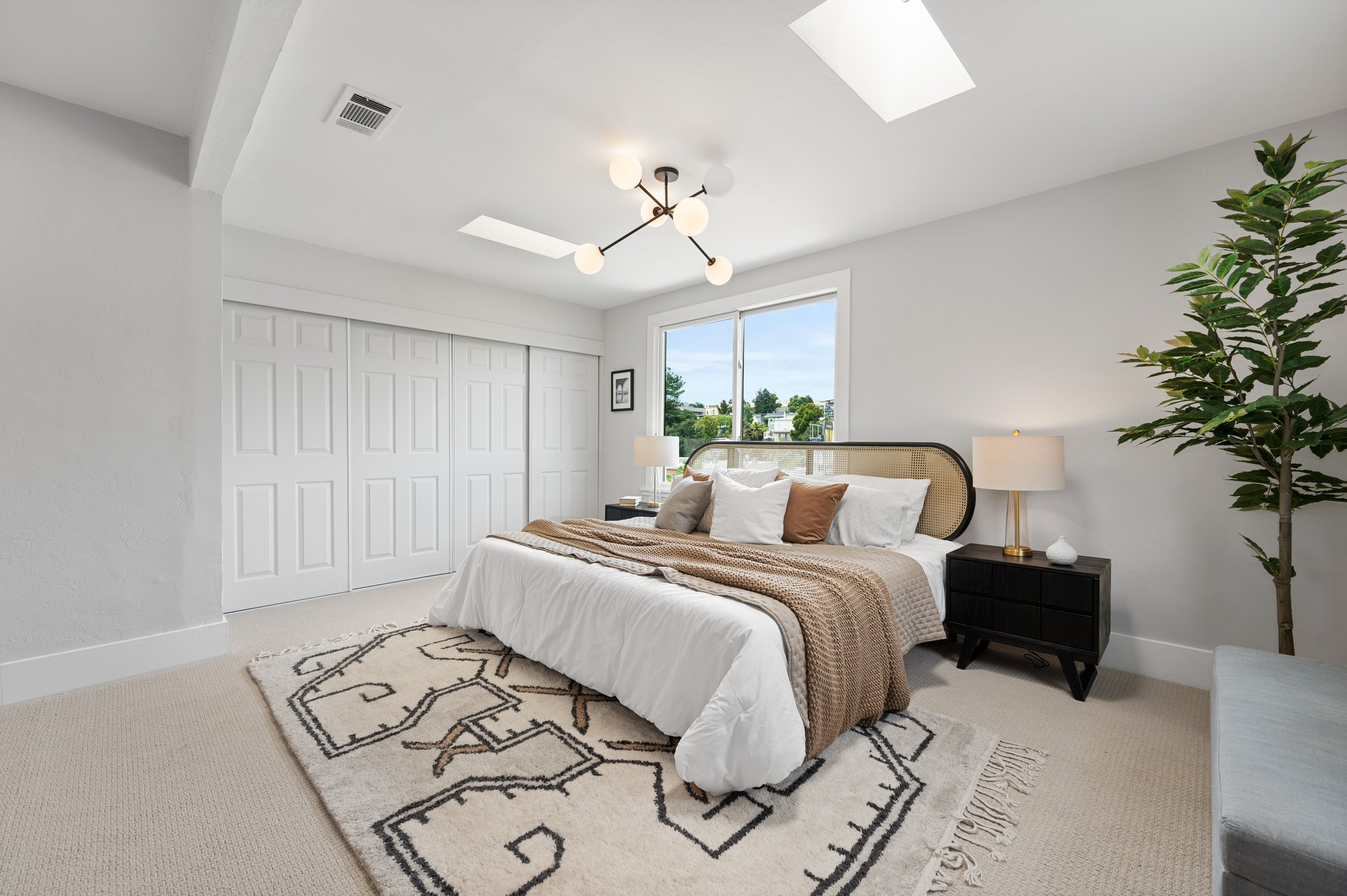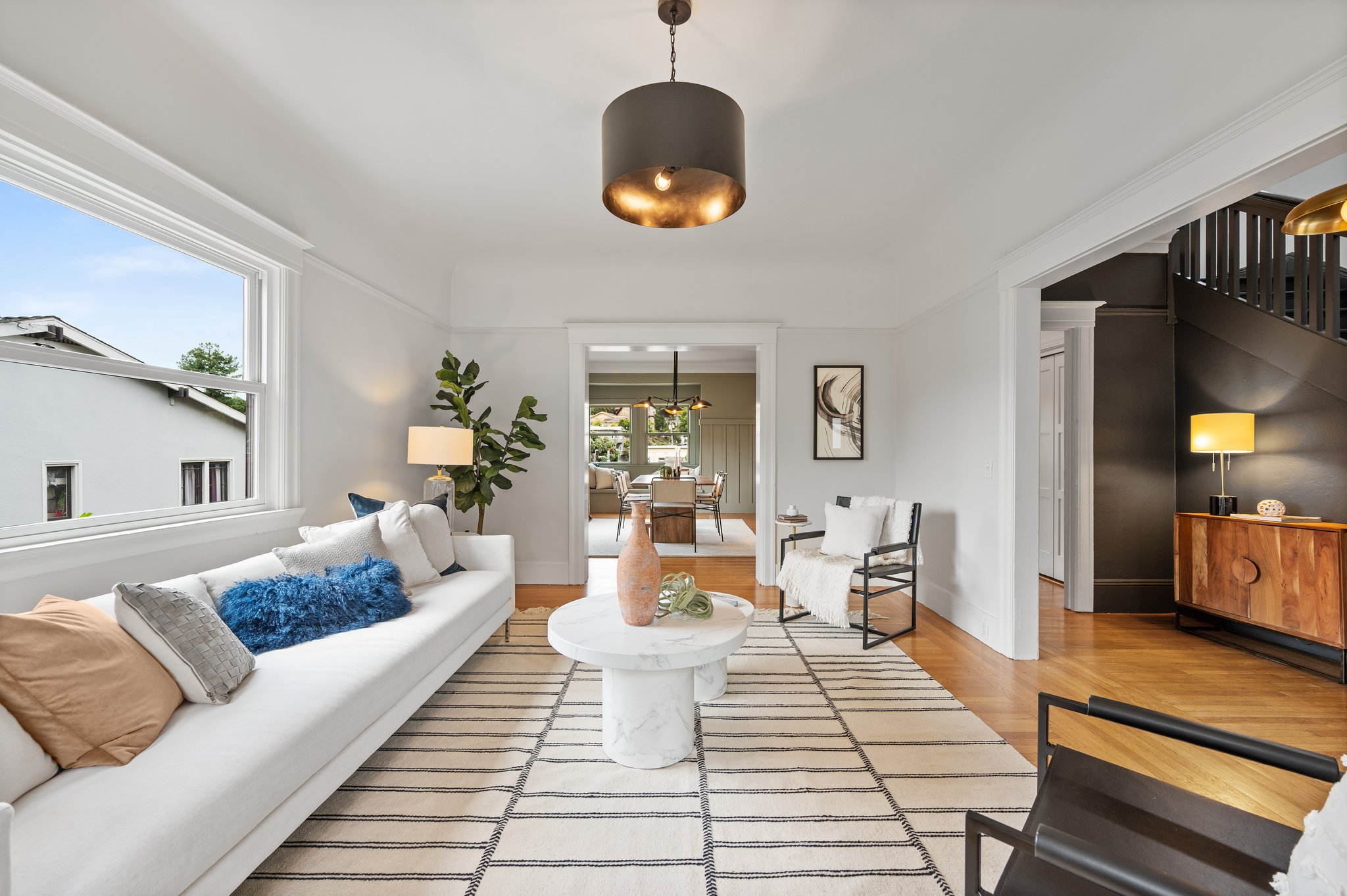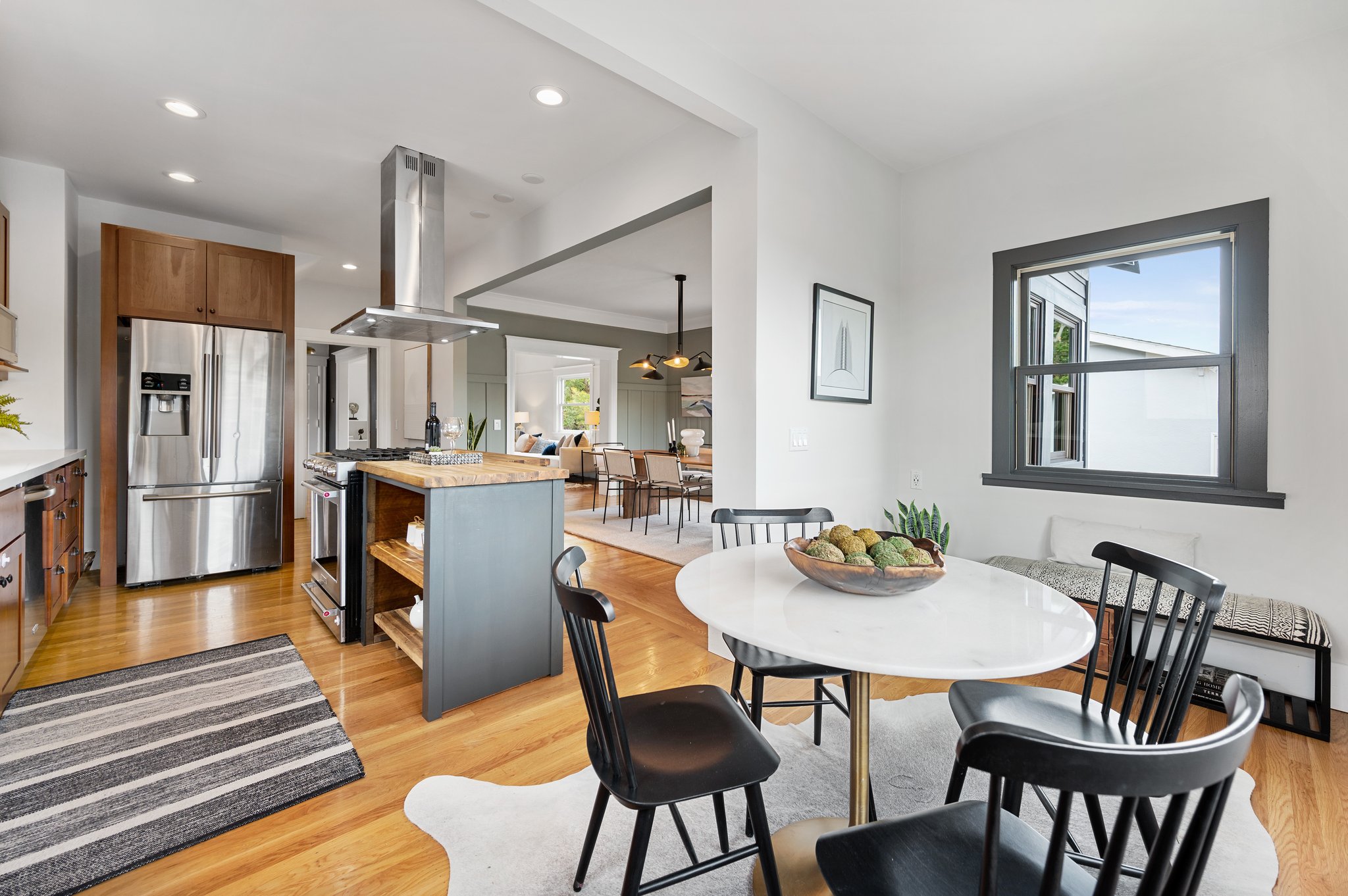 SOLD. 763 Walker Ave in Oakland! Stunning Grand Lake Craftsman Jewel on Walker in Oakland, with in-law, converted garage, and 99 WalkScore (Walkers Paradise WalkScore.com). Two-story Main House with sophisticated sun-filled Chef’s Kitchen offering stainless appliances, island with built-in range and hood, quartz counters, and breakfast nook. Stylized living and dining areas with designer lighting and vintage finishes. A spacious primary suite with custom skylights, ensuite bath, and commanding neighborhood views, along with a refreshed hall bath, and three more bedrooms are located on the upper level.