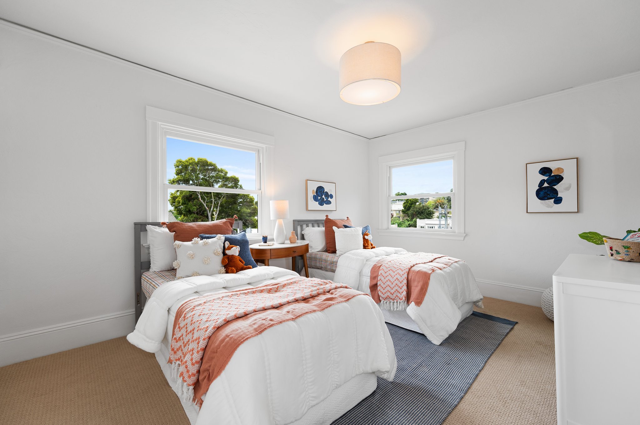 Private rear gardens for your summer soirees offer spacious patios with grassy area for play while mature fruit trees and native plantings frame the grounds. System updates include many new windows and a recently replaced roof. Radiant heat and tankless on-demand hot water elevate the home’s comfort. Blocks from the fabulous shops and restaurants of Grand and Lakeshore, Grand Lake Theatre, Saturday Farmers Market, Lake Merritt, and the Bay Bridge to San Francisco.