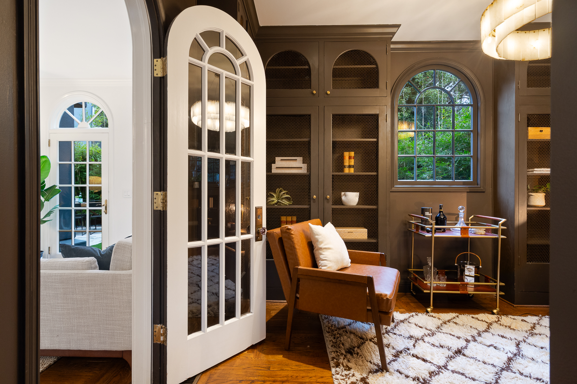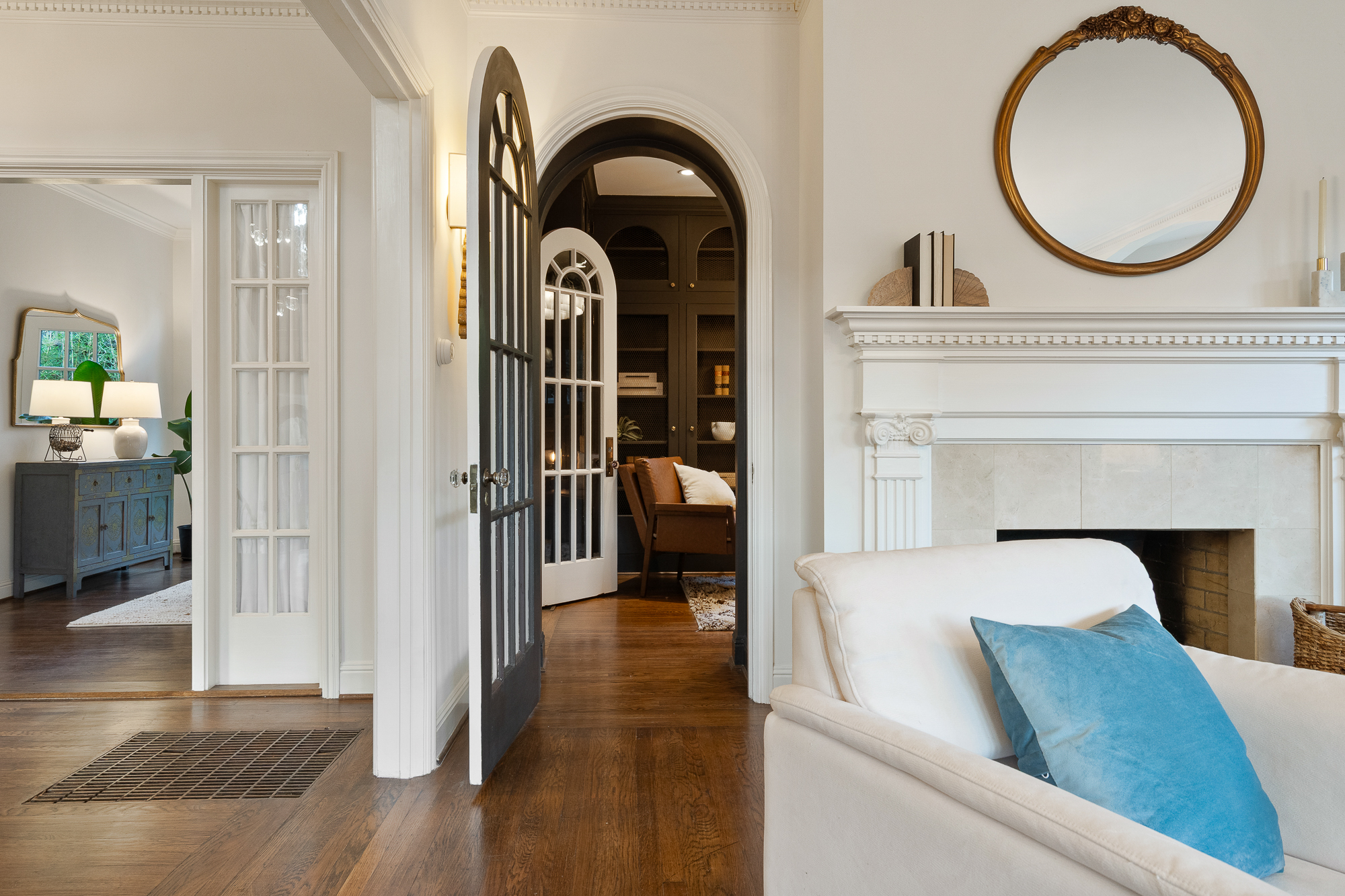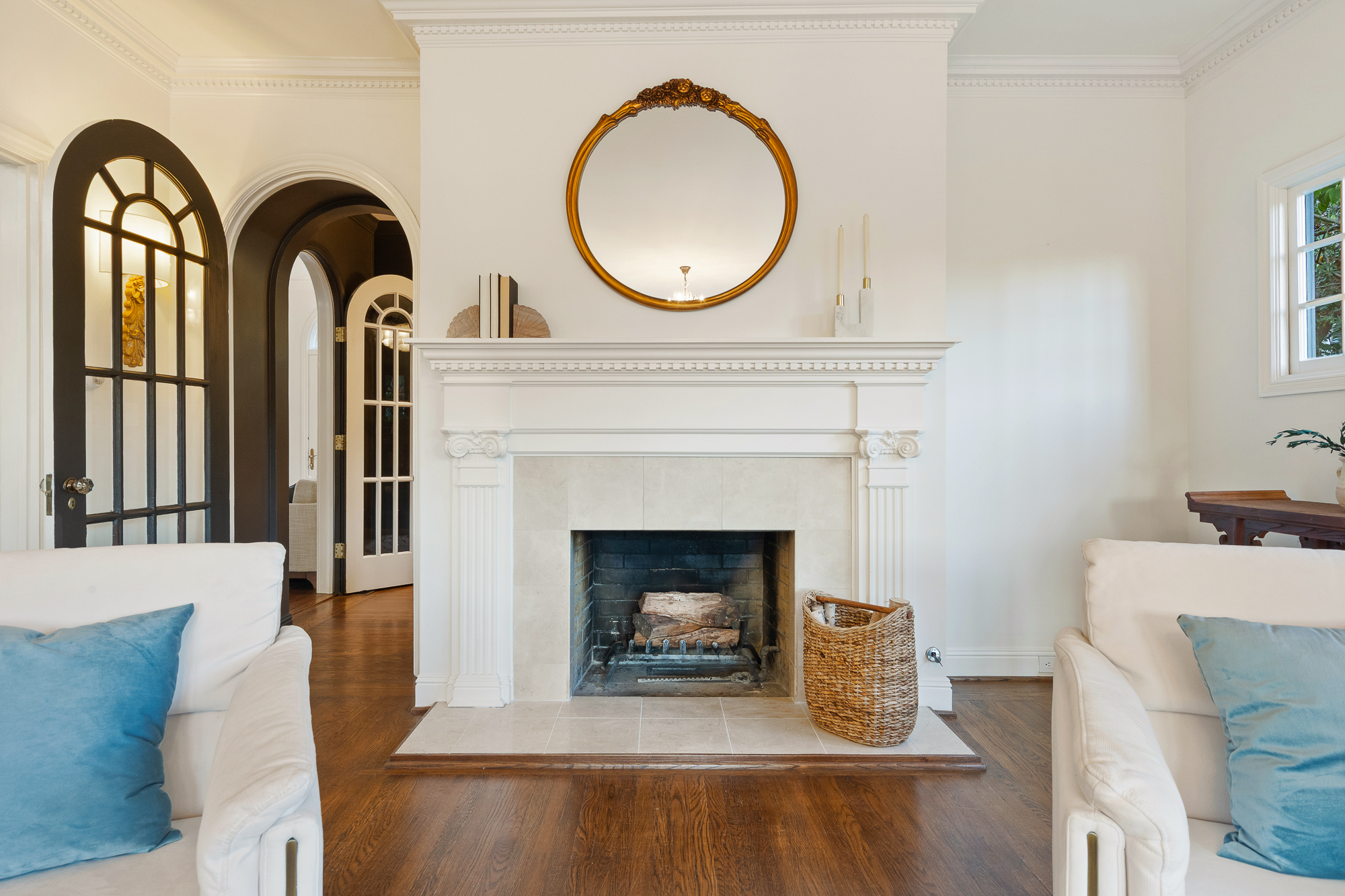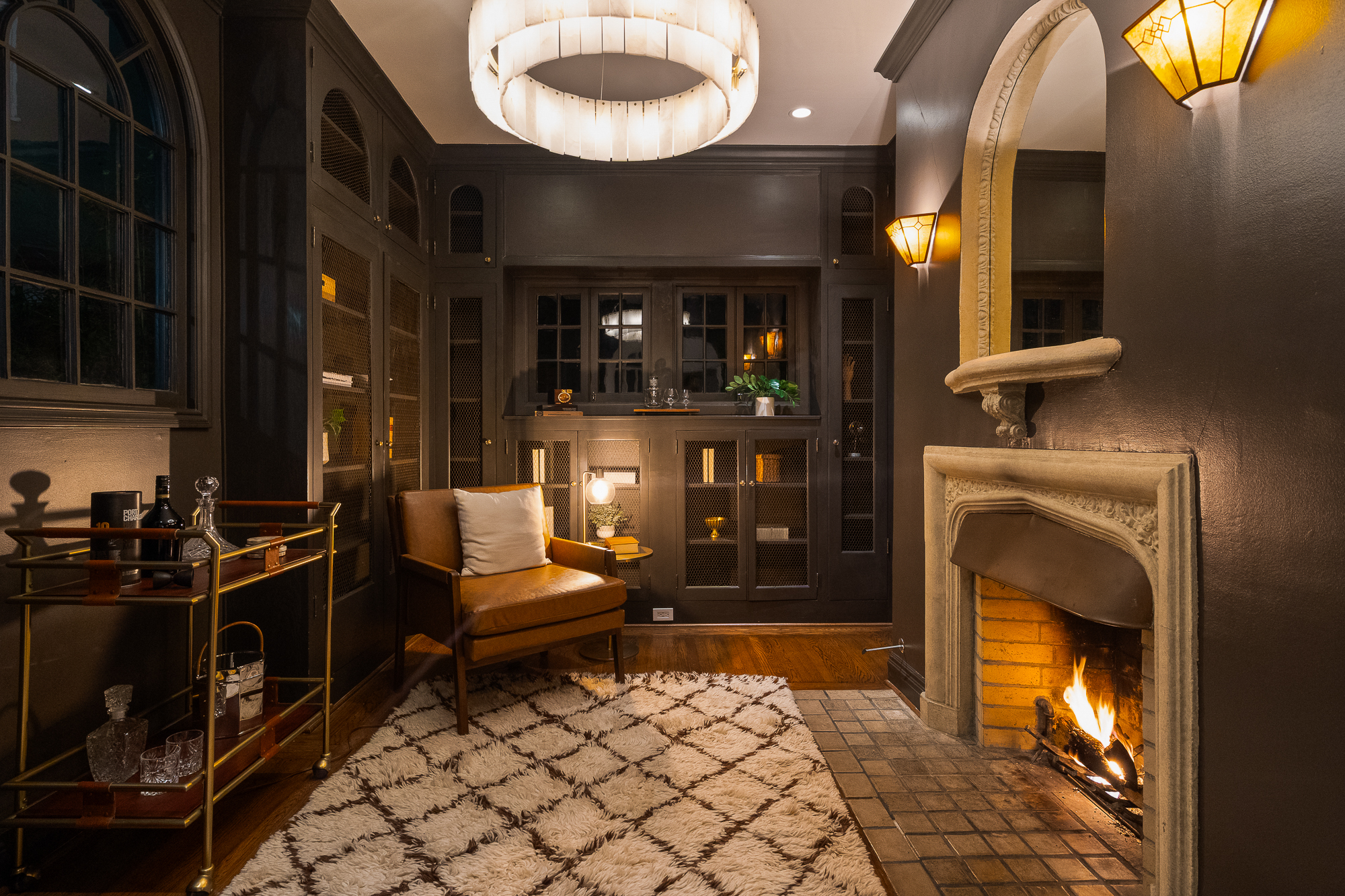 — Sultry library & elegant living room each with dedicated fireplace
