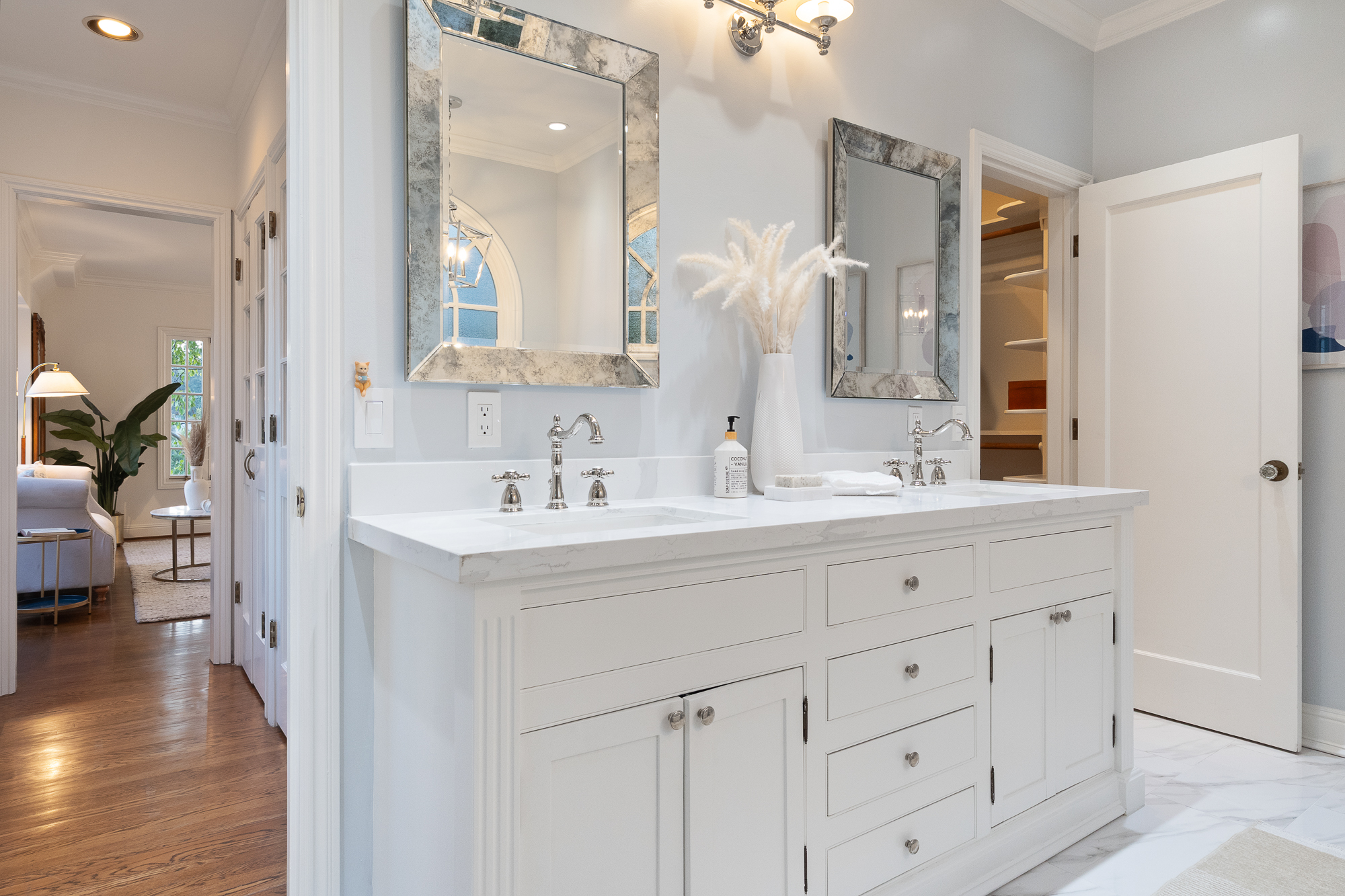 — Primary suite w/ double walk-in closets & lavish bath