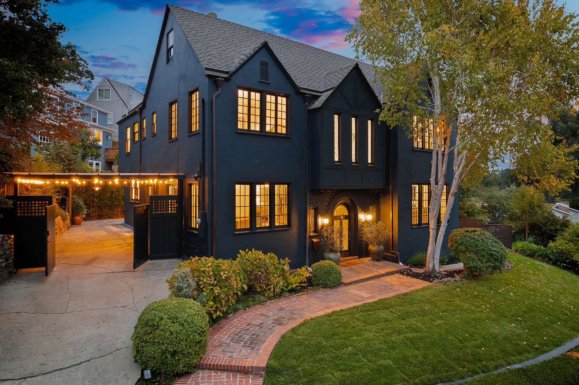 Elegant Crocker Highlands Tudor blending architectural pedigree with modern refinement. Original details include arched doorways, rich woodwork, and abundant leaded French glass windows framing grand formal spaces. Chef’s eat-in kitchen with marble countertops, subway tile backsplash, custom cabinetry, and stainless steel professional appliances guaranteed to delight the chef of the household. Large, light-filled dining room perfect for the upcoming holiday season, and stately living room with French windows and wood-burning fireplace ideal for entertaining. Sultry, adjacent library with enchanting stone fireplace, inviting both conversation or quiet reprieve.