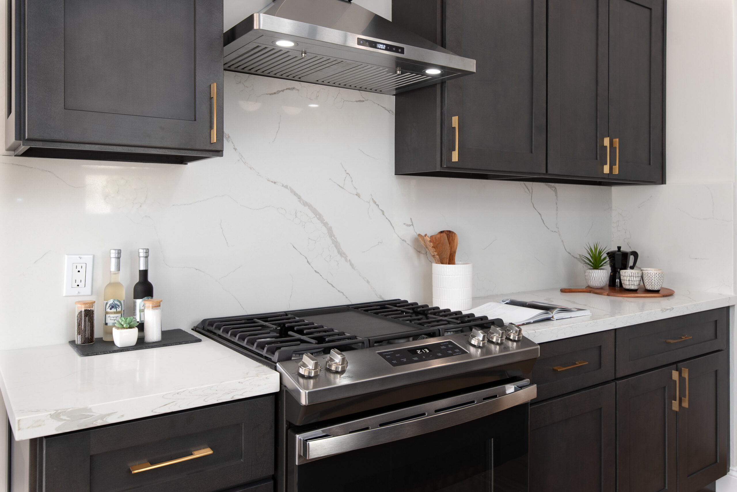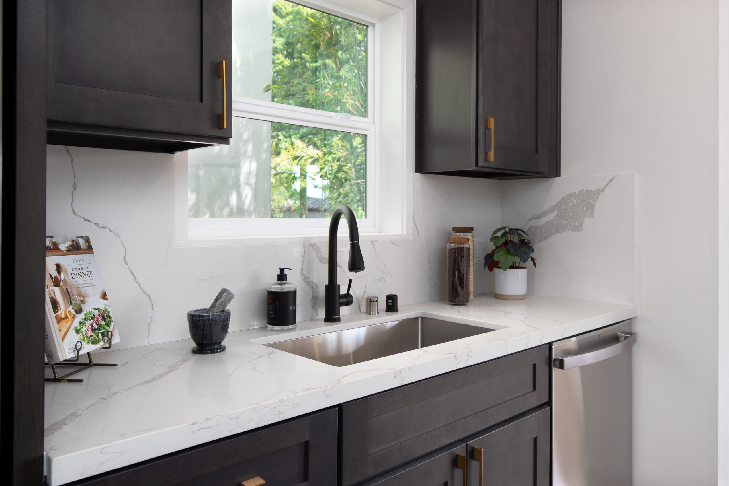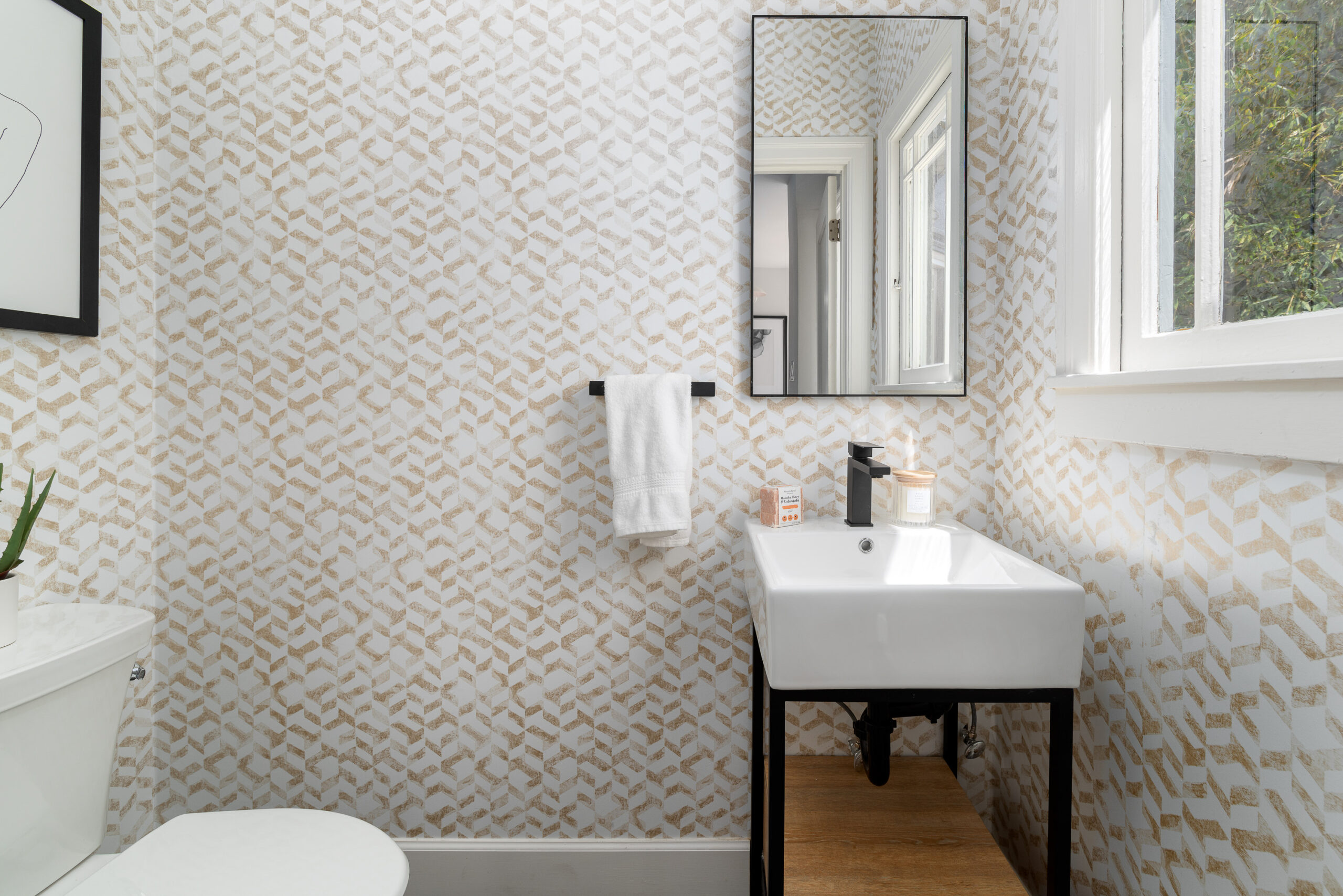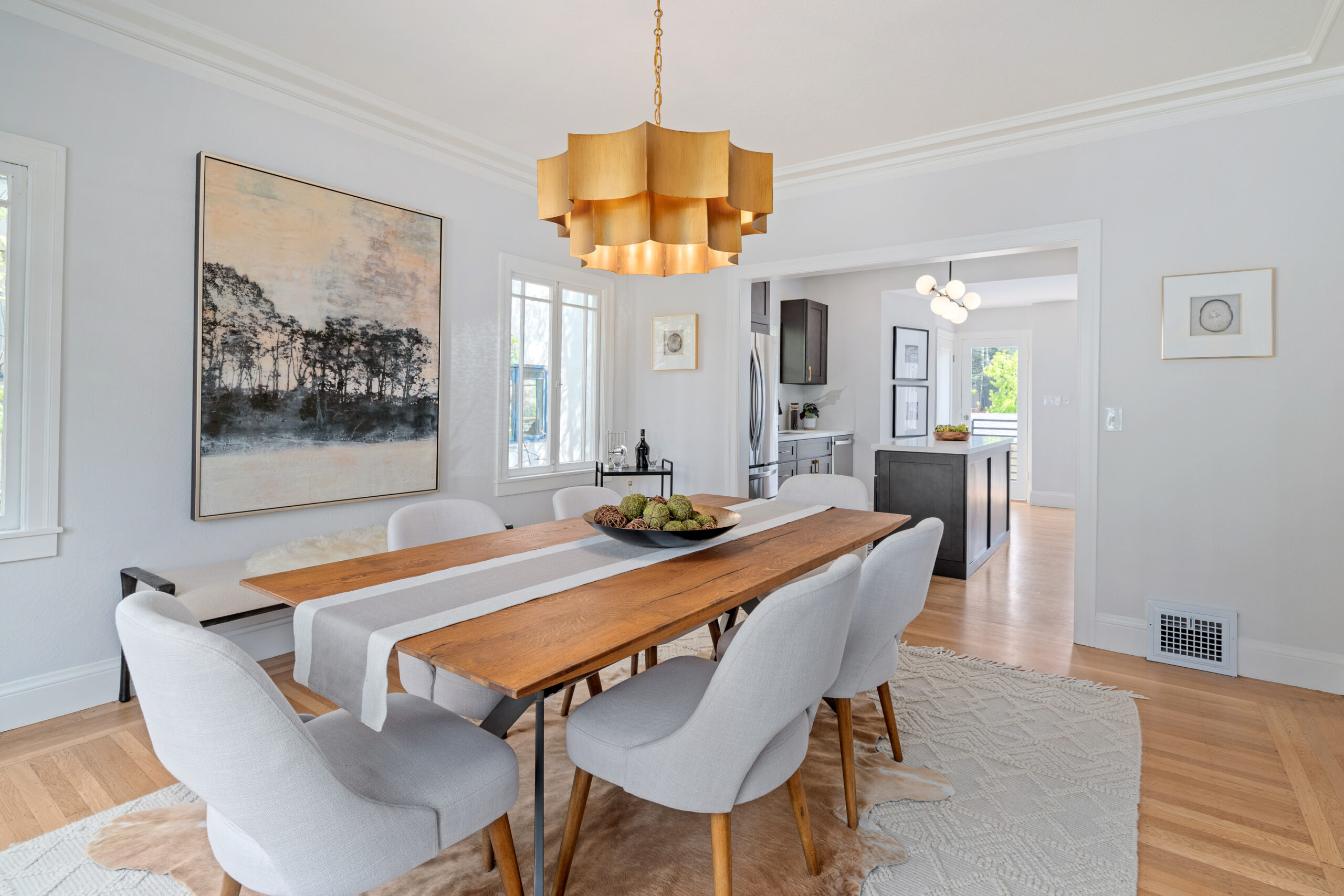 Stunning Crocker Highlands Mediterranean featuring Dwell inspired finishes. Light filled formal living and dining rooms, recently renovated kitchen with stone counters, inset sink, center island and stainless appliances including gas range and 4-door LG refrigerator. Dramatic foyer with designer lighting, wallpaper and impressive staircase leading to three well proportioned bedrooms including a primary suite with modernized full bath and a highly stylized full hall bathroom.