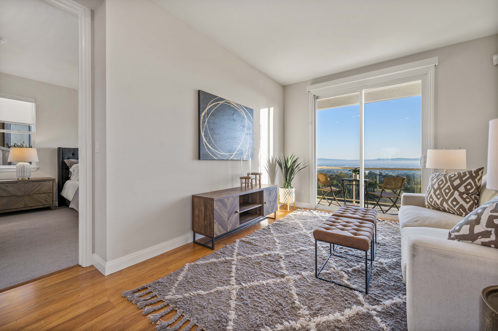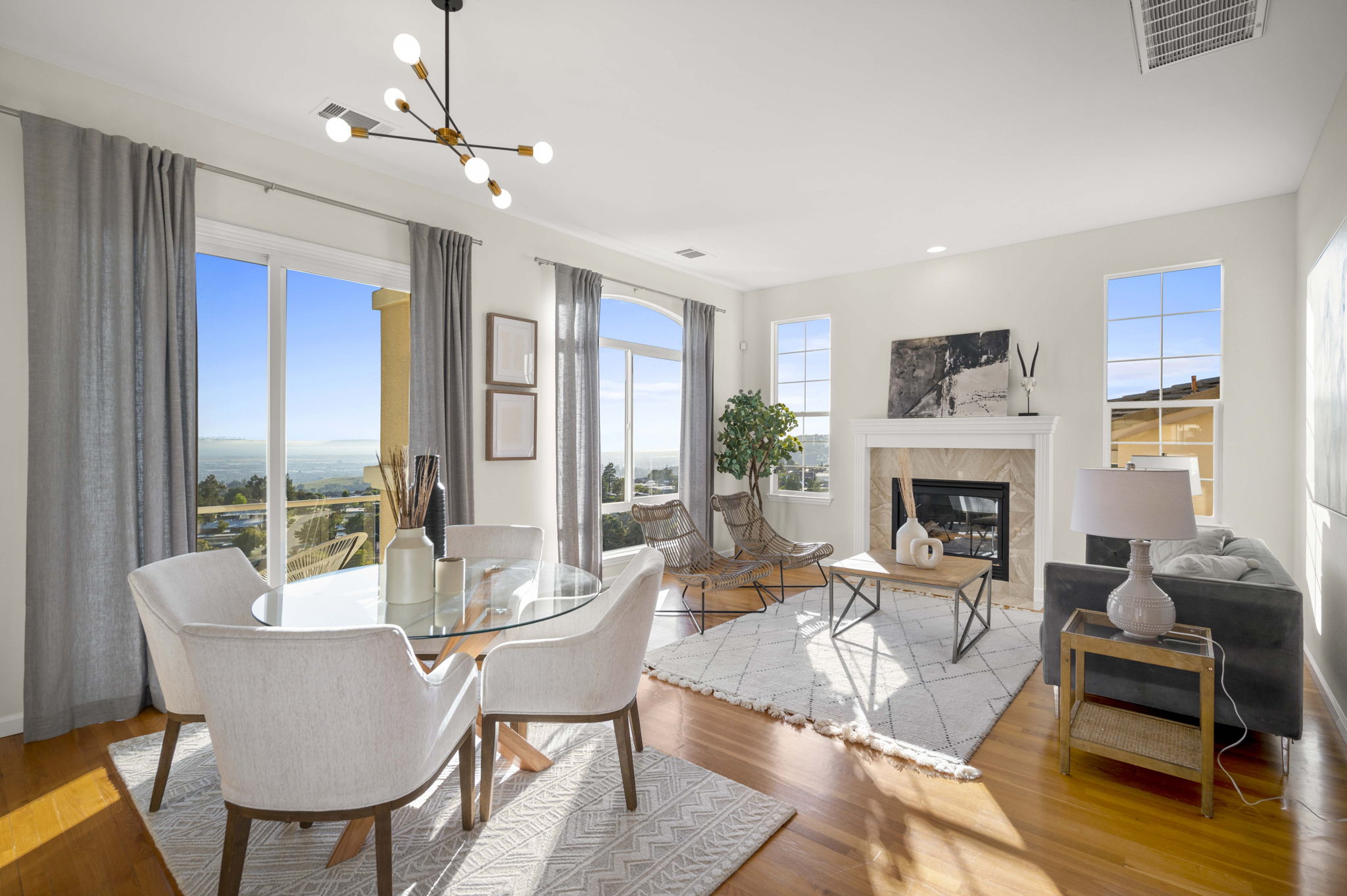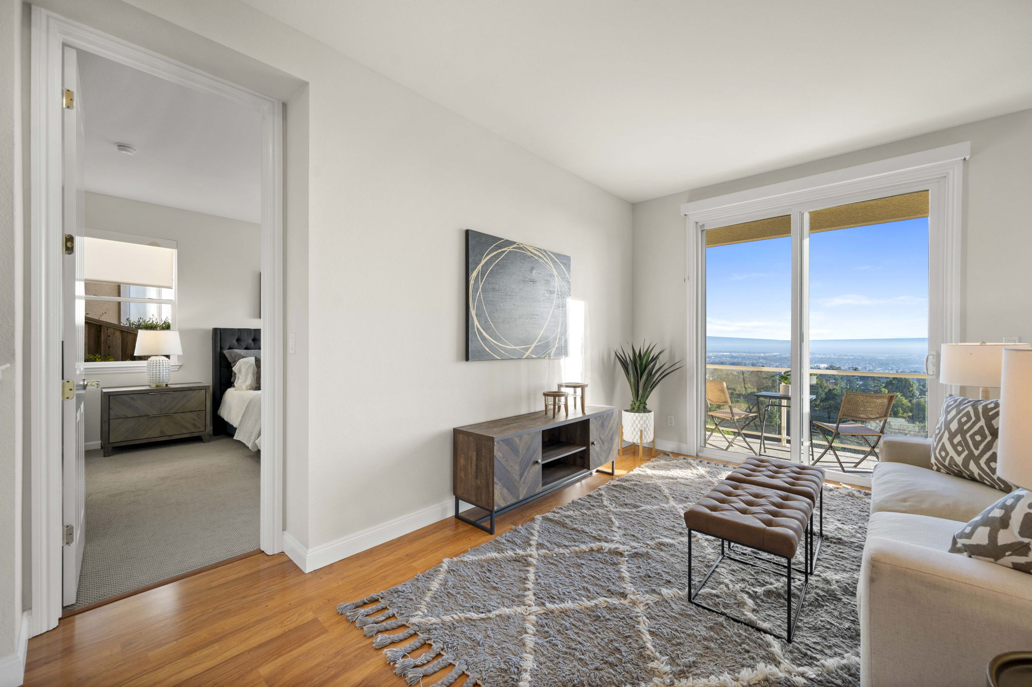 SOLD! Breathtaking Contemporary with a Panoramic Four Bridge View located inside of a quiet gated enclave perched in the Oakland Hills! Step into a wide open floor plan with dramatic high ceilings and large picture windows that pour natural sunlight all throughout the home. The Chef’s kitchen features a center island, stainless steel appliances, walk-in pantry, and eat-in area. The first floor is level-in with one bedroom and one bathroom, along with an attached two car garage with interior access.