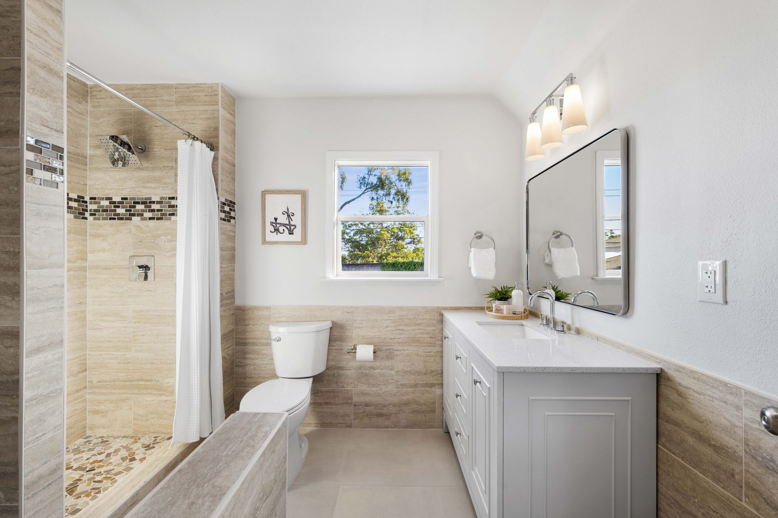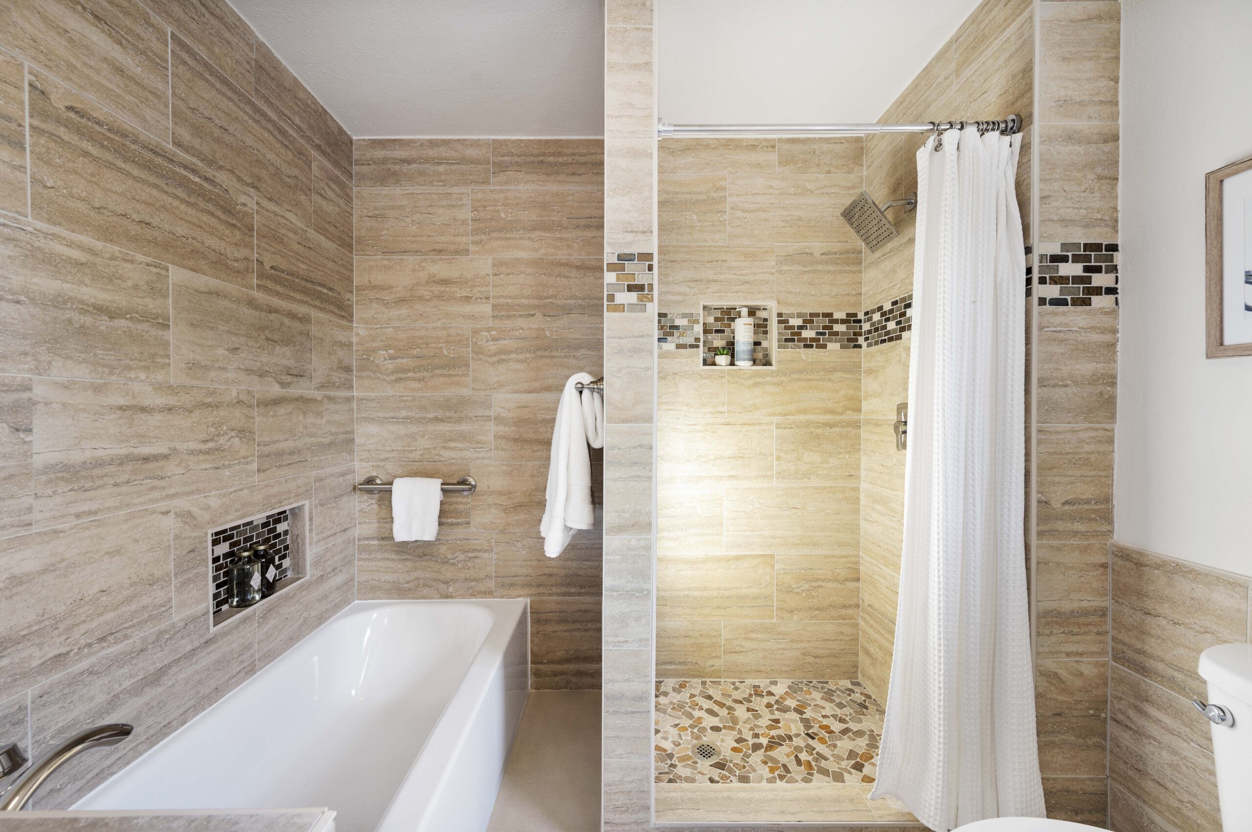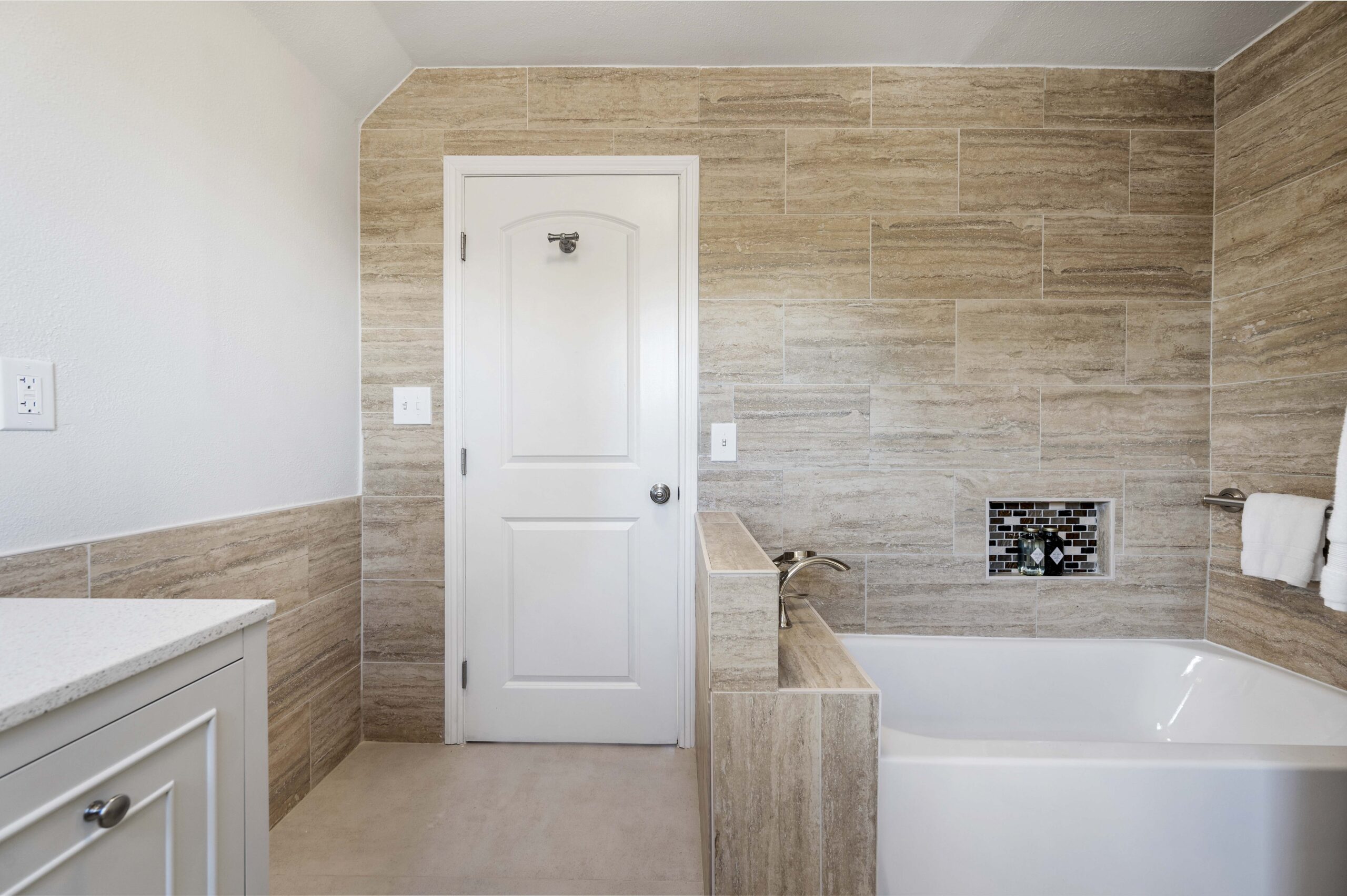 *Spa-inspired upper hall bathroom with designer tile