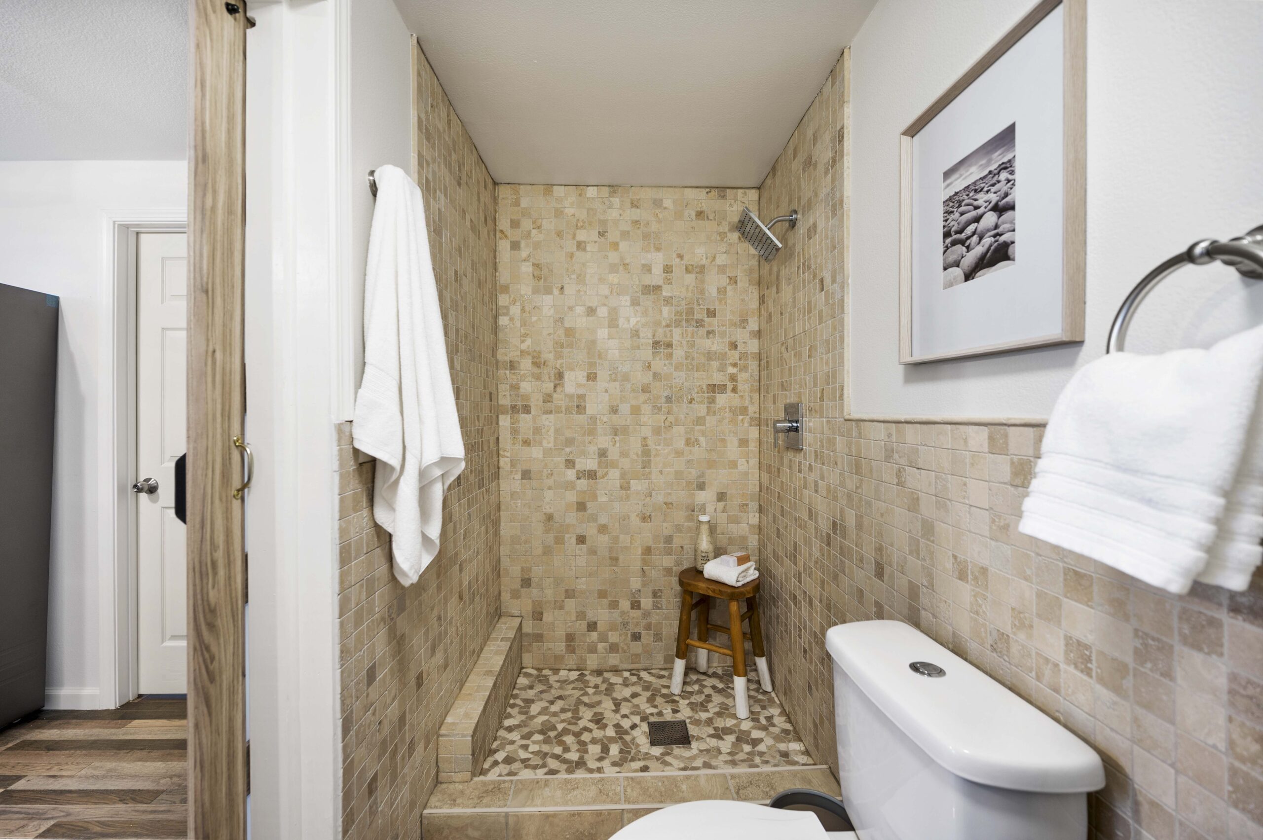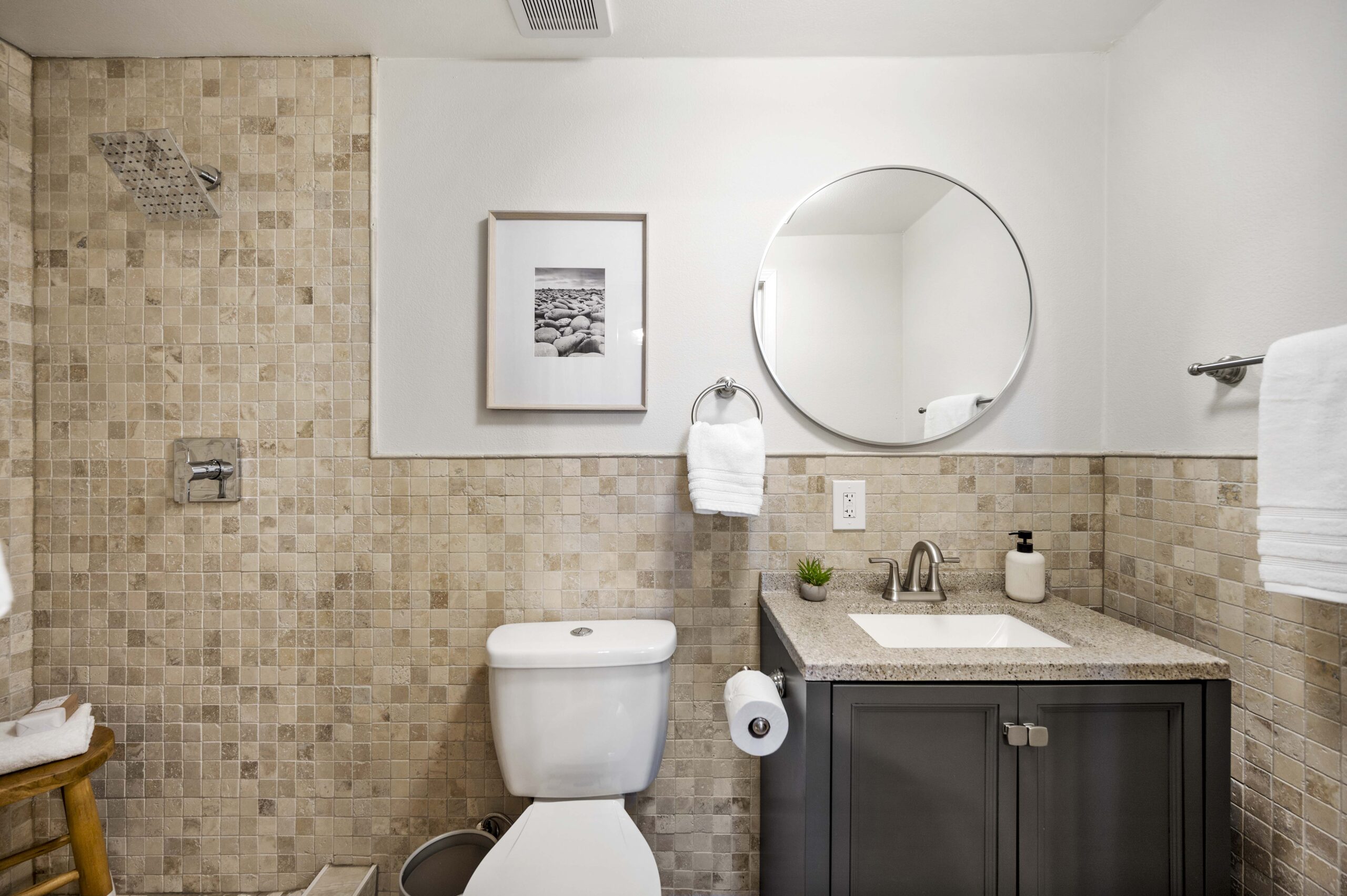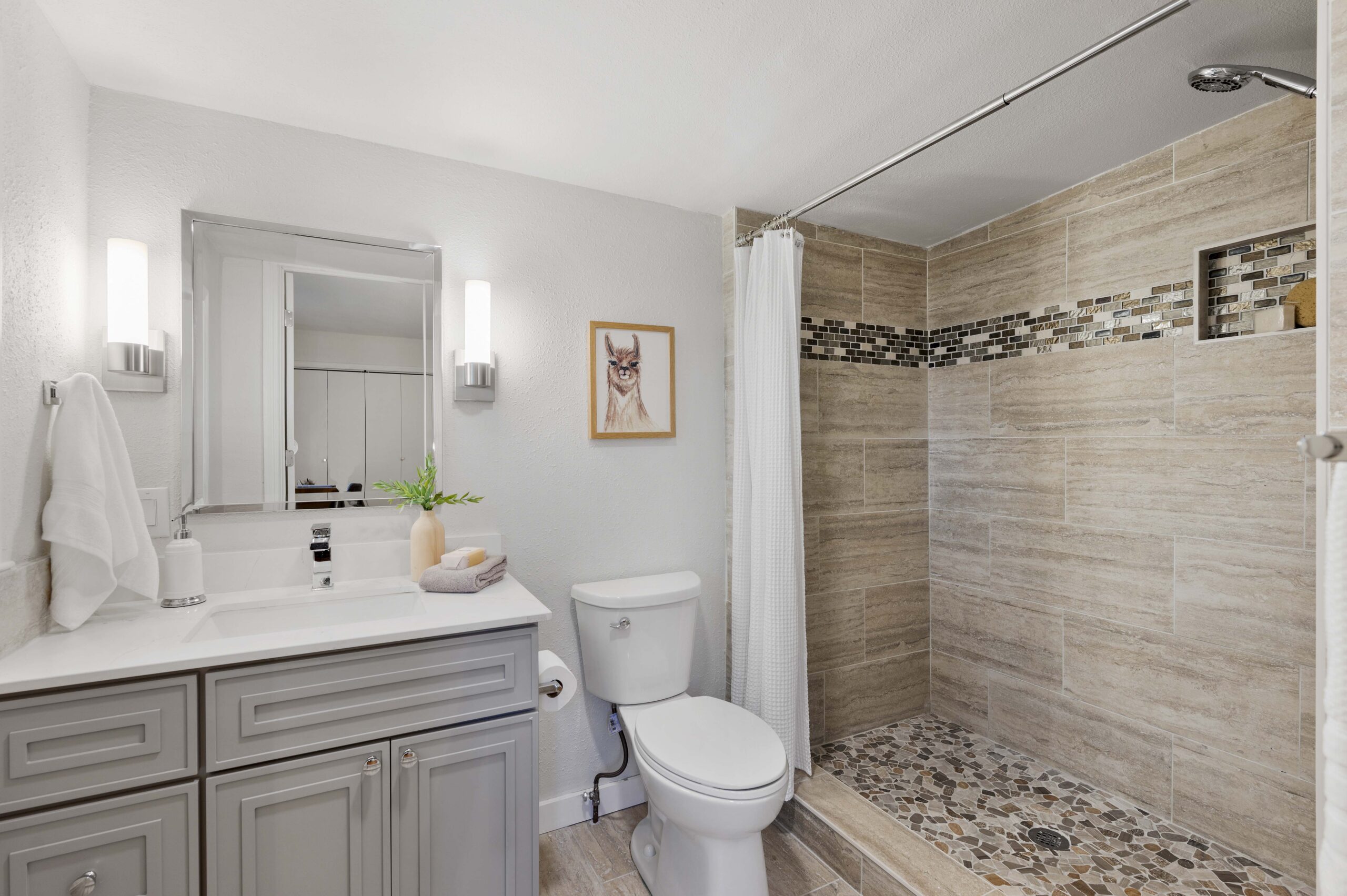 *Spa-inspired upper hall bathroom with designer tile