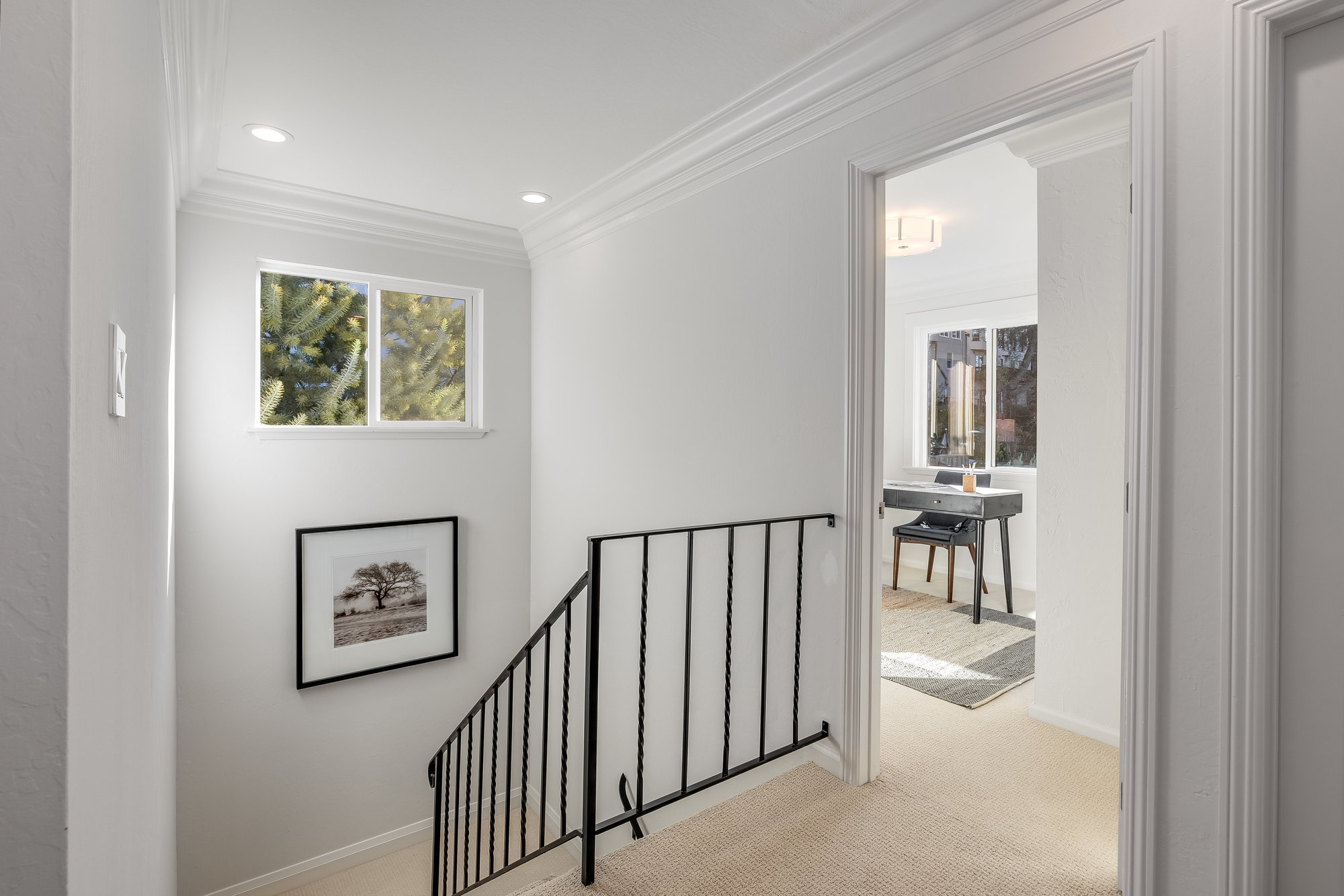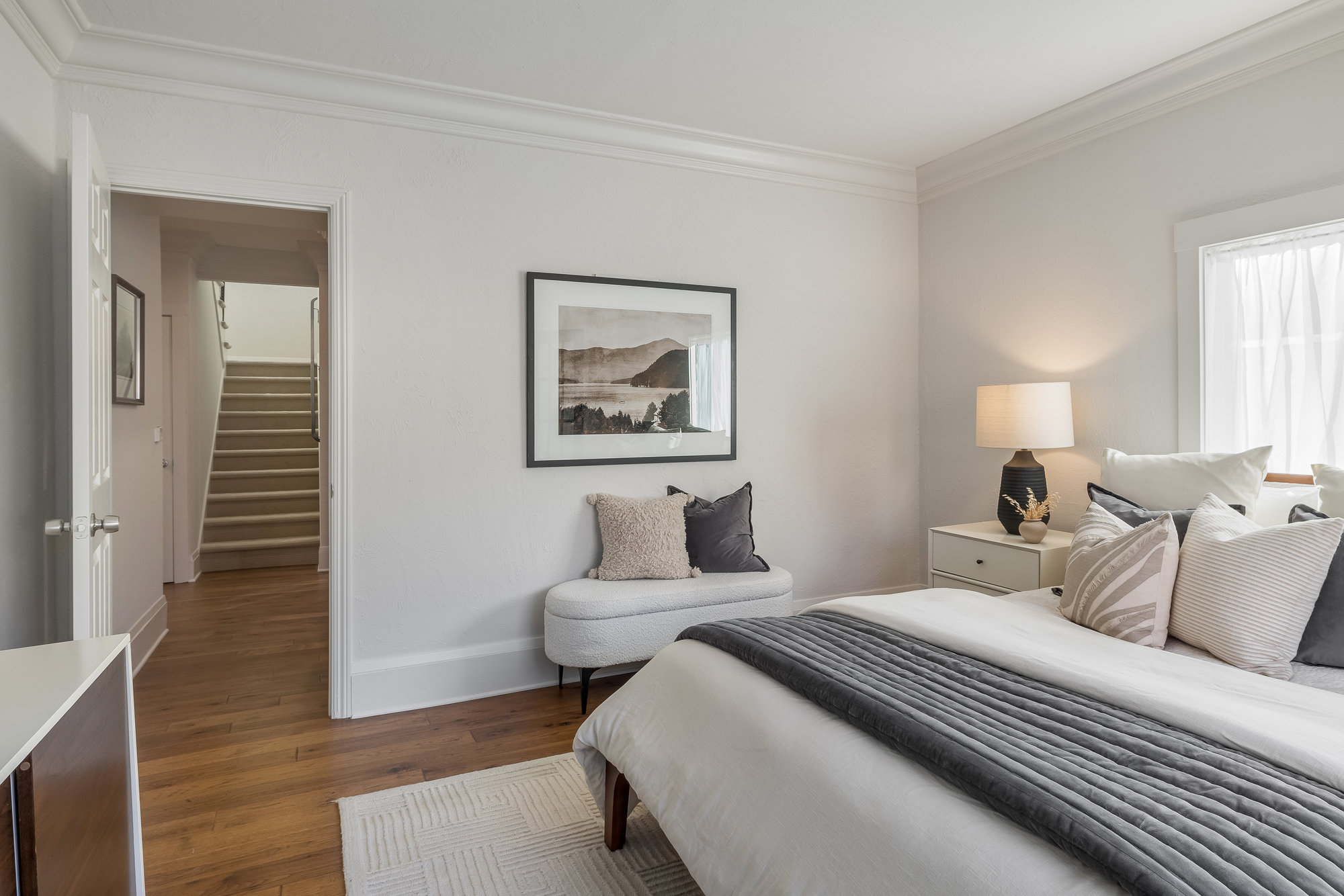 With five bedrooms (two down and three up), the home offers great flexibility of use. The expansive primary suite lends beautiful neighborhood views and offers a recently refreshed bath with frameless glass shower and striking black quartz vanity paired with matte gold fixtures. Two additional design forward full bathrooms promise to delight and complete the homes living areas. Hobby and storage space is located in the basement area which is also accessible from an exterior side door. Located just blocks from the award winning Crocker Highlands Elementary, fabulous shops and restaurants of the Grand Lake District plus quick access to I-580 and the Bay Bridge to San Francisco.