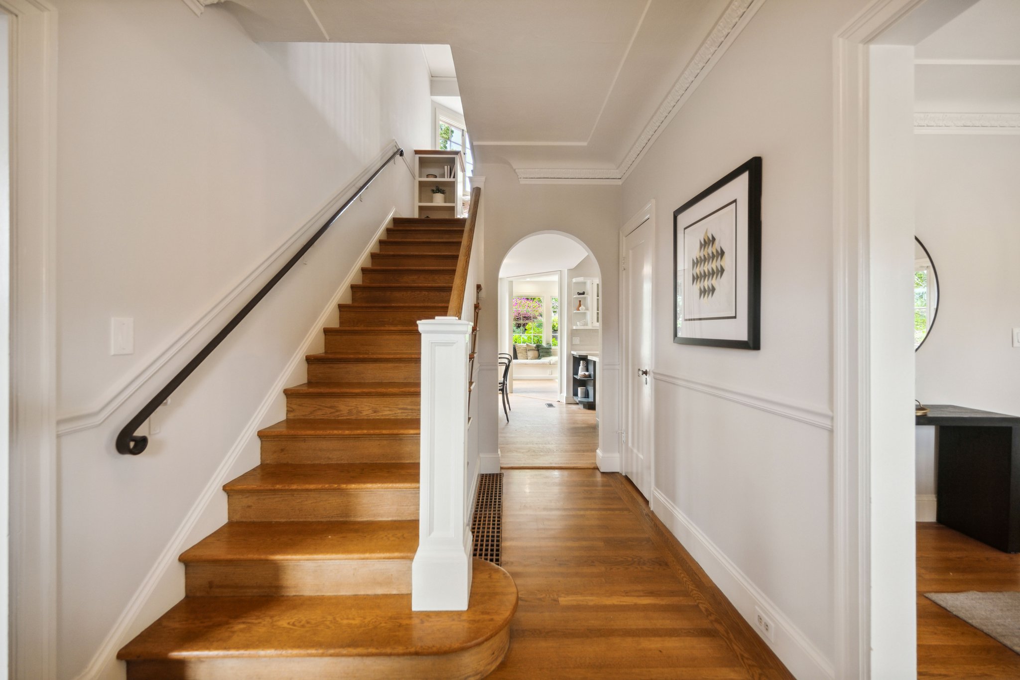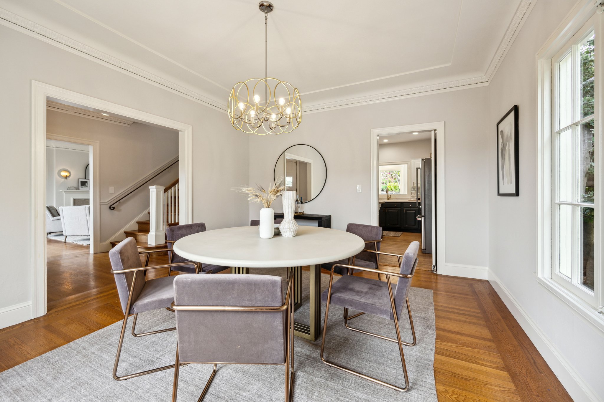 SOLD! Welcome to 842 Rosemount Rd. in Oakland. Beautifully appointed Crocker Highlands Traditional with formal living room, exquisite crown moldings, light-bathed french windows, and cozy wood-burning fireplace. Spacious dining room ideal for gatherings that flows into a meticulously designed chef’s kitchen. Offering designer finishes, spacious center island, quartz countertops, stainless appliances, gas range and double ovens, it’s a true haven for the cooking enthusiast. Adjacent family room with built-ins and french doors opens onto rear gardens and is perfect for both entertaining and play. All bedrooms located upstairs including luxurious primary suite with serene garden views, full bath and a walk-in closet as well as an additional full hall bath updated with European finishes.