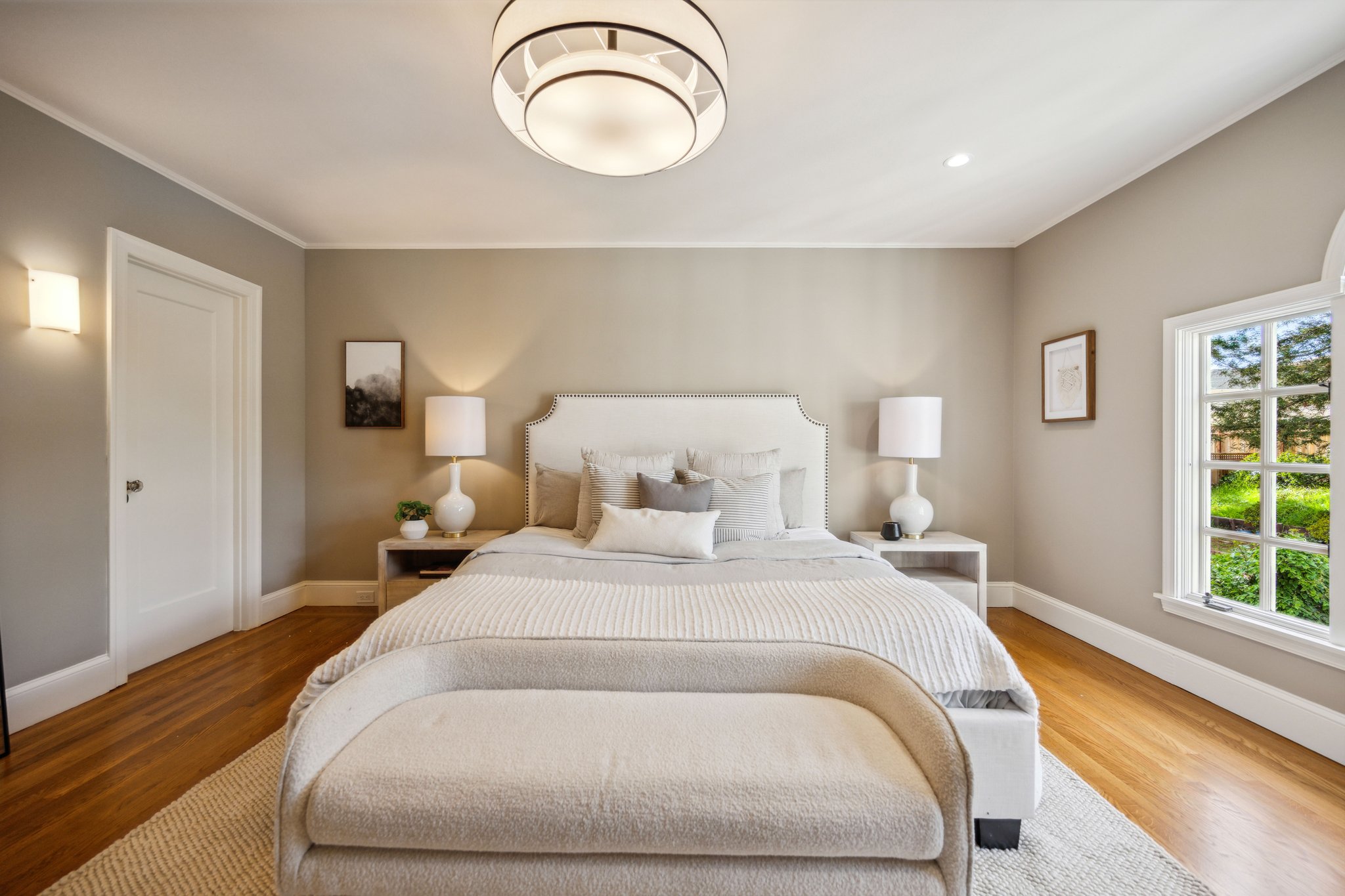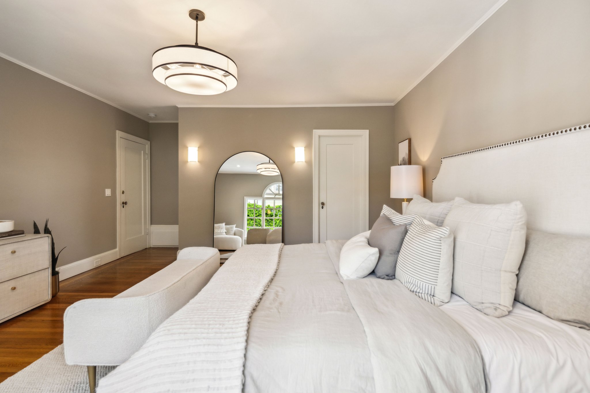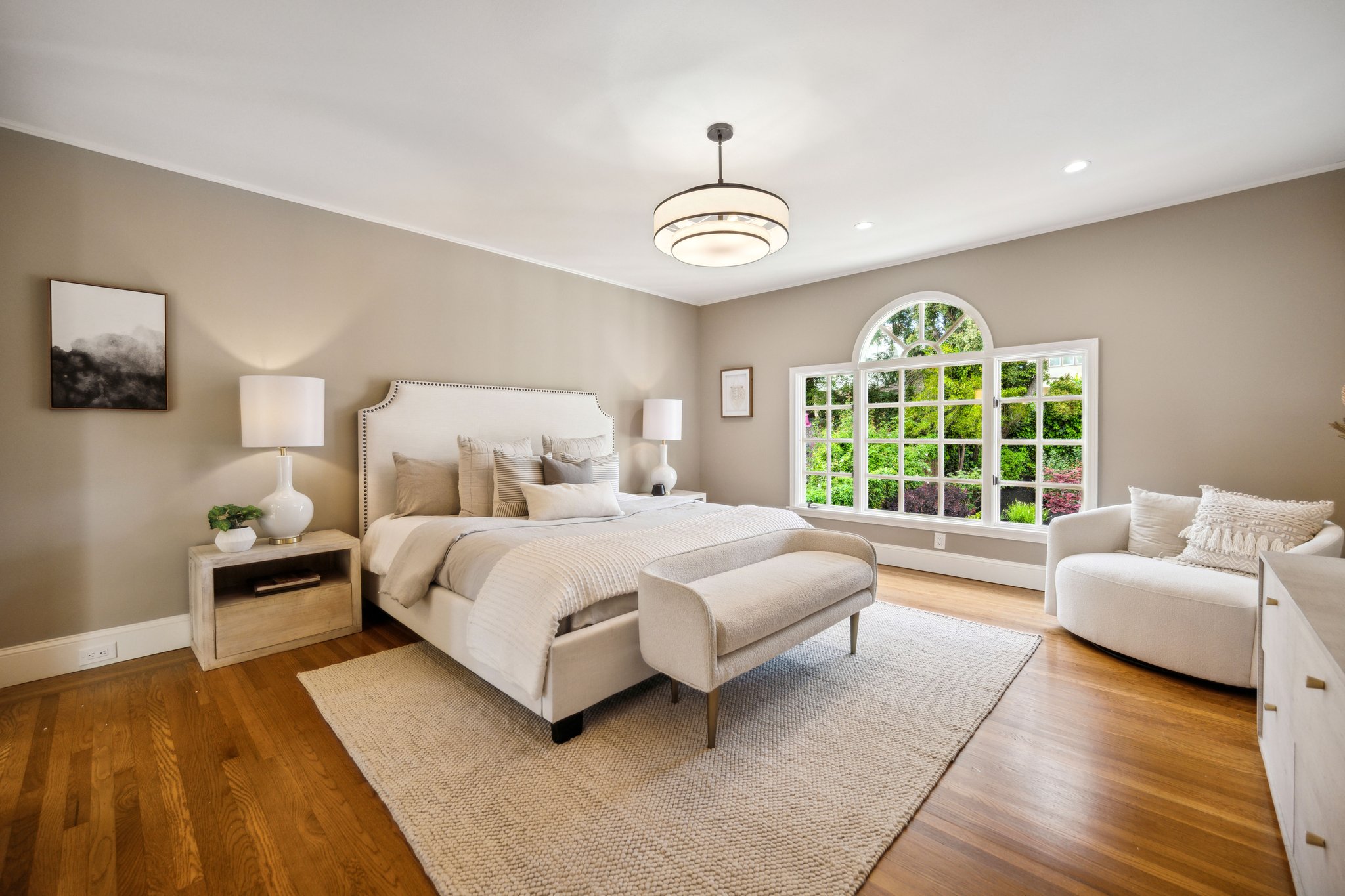 — Spacious primary suite with garden views