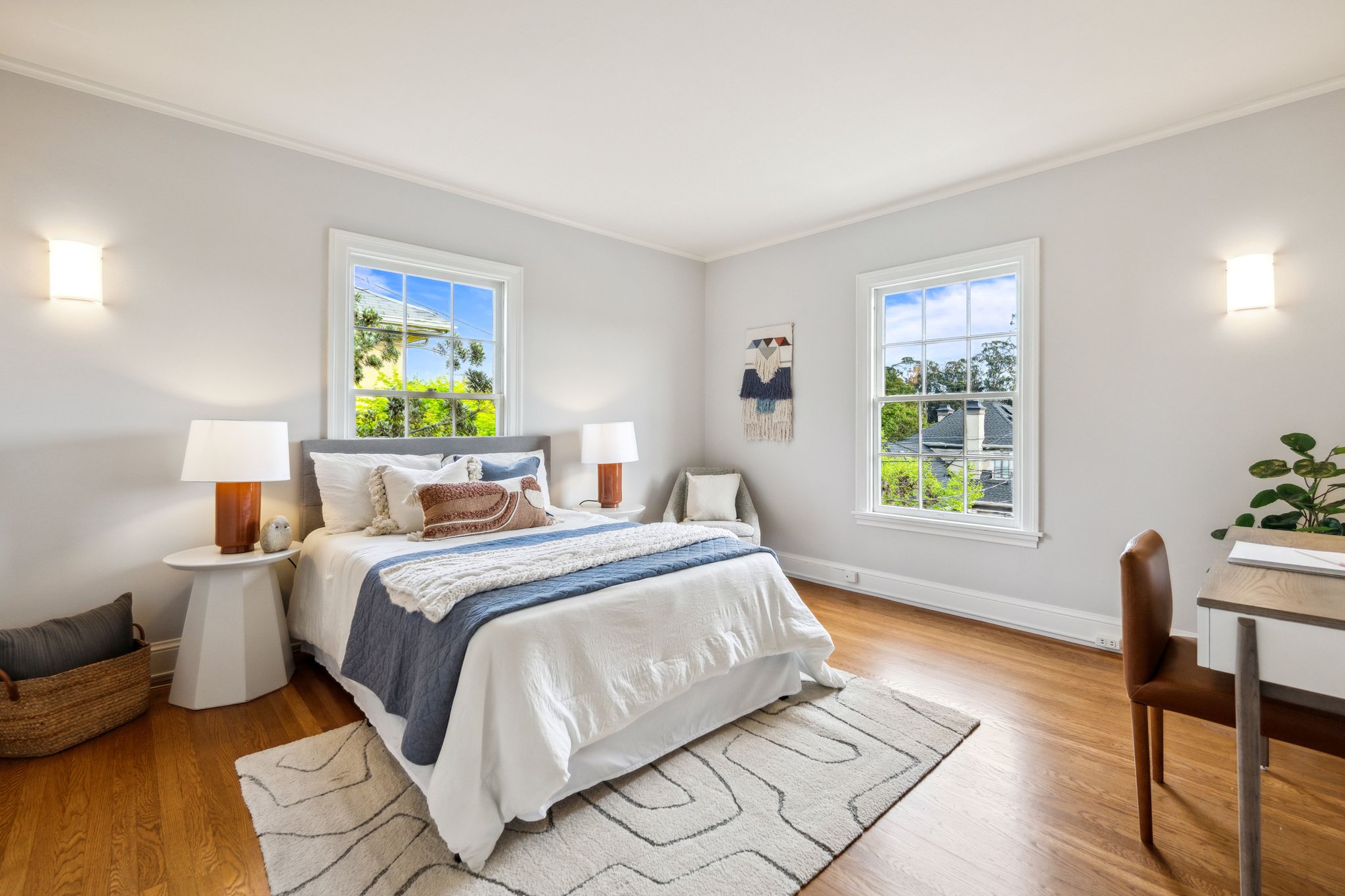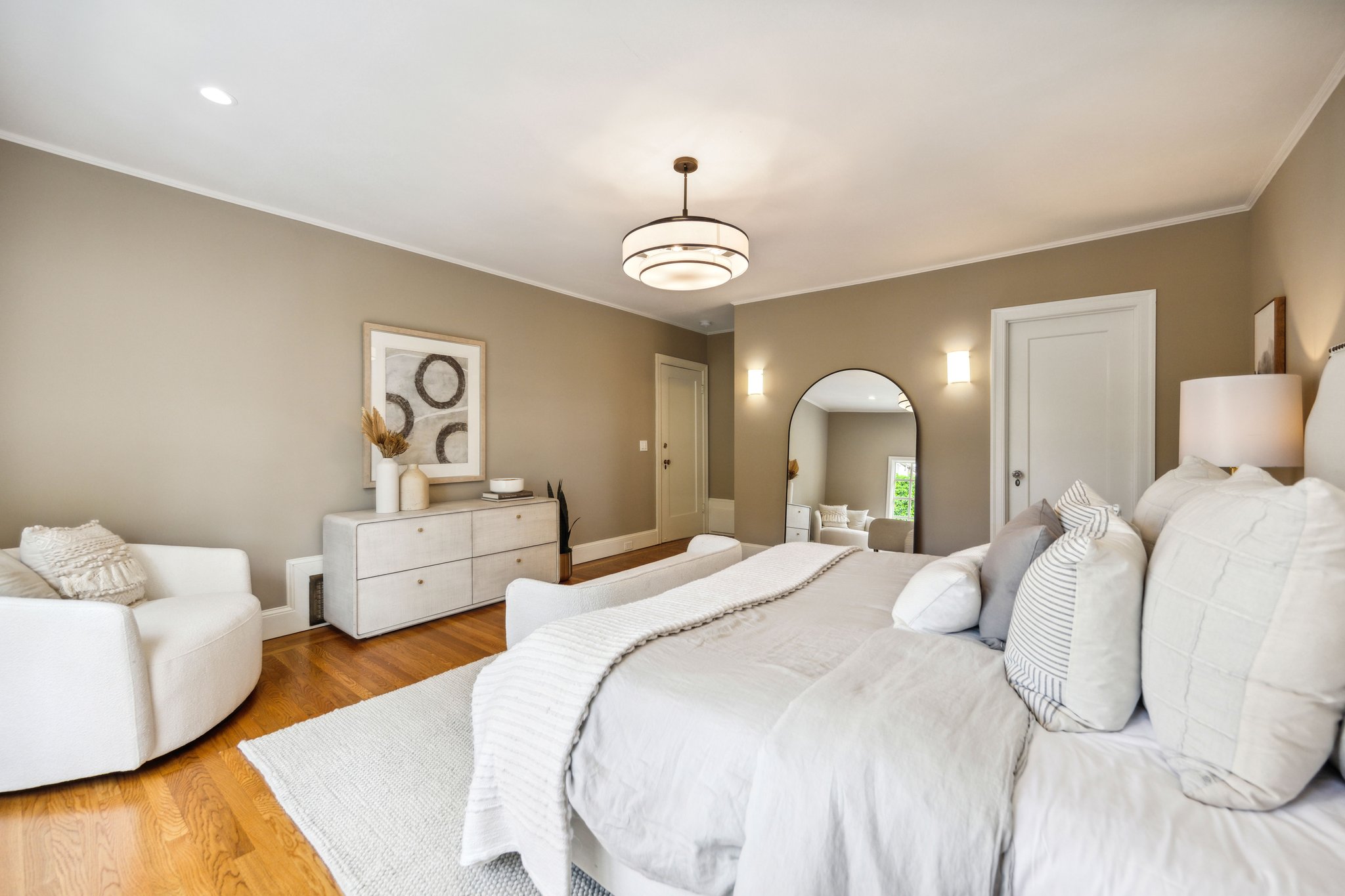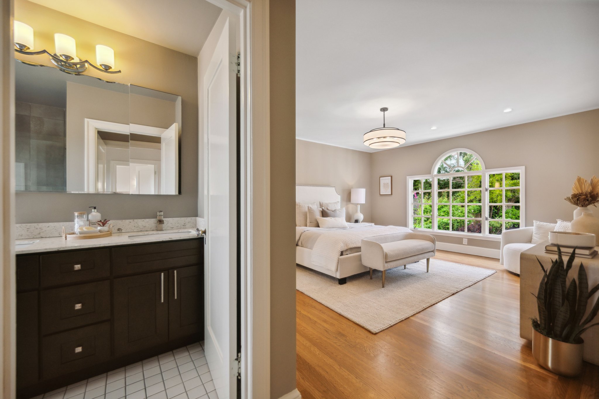 — Spacious primary suite with garden views
