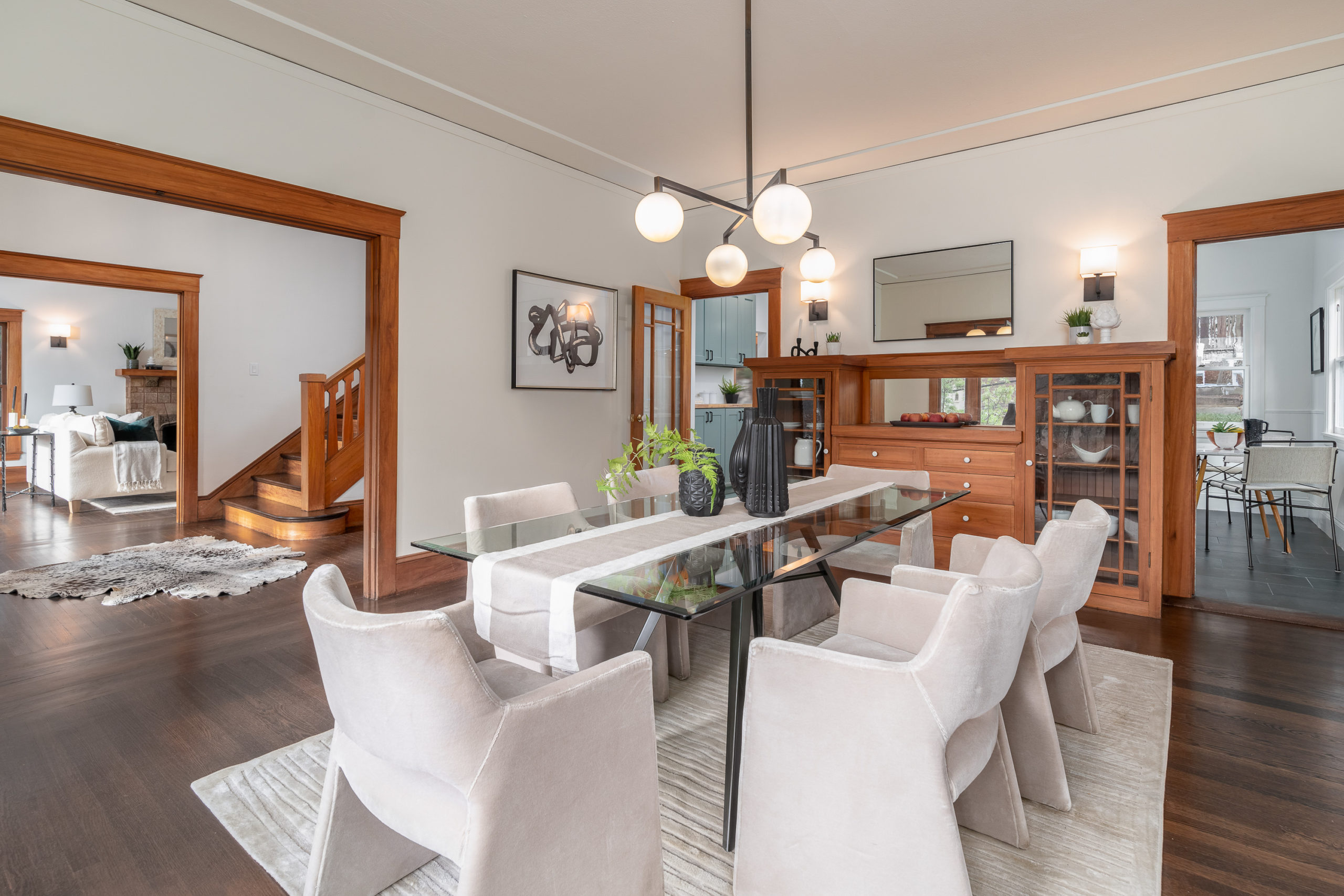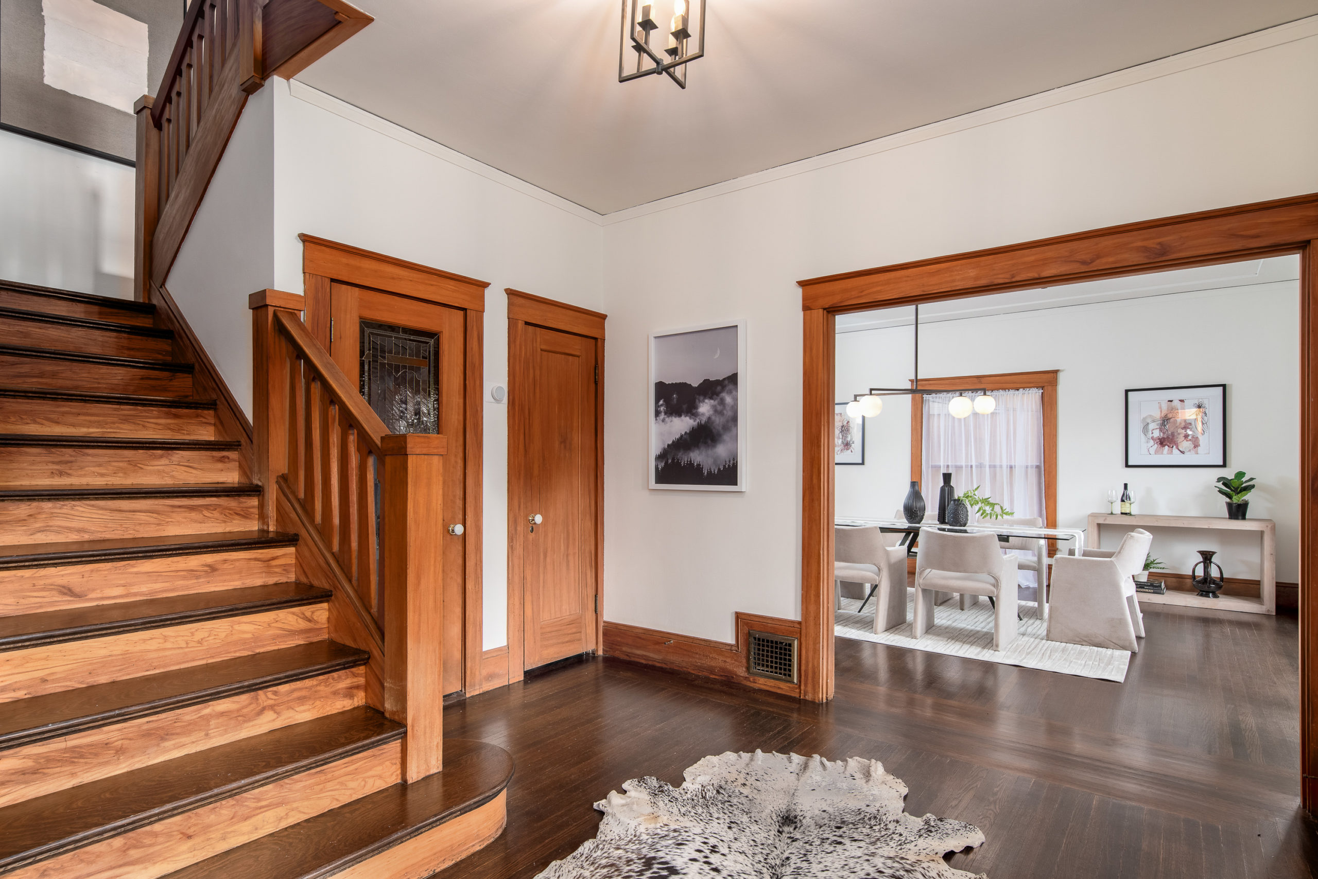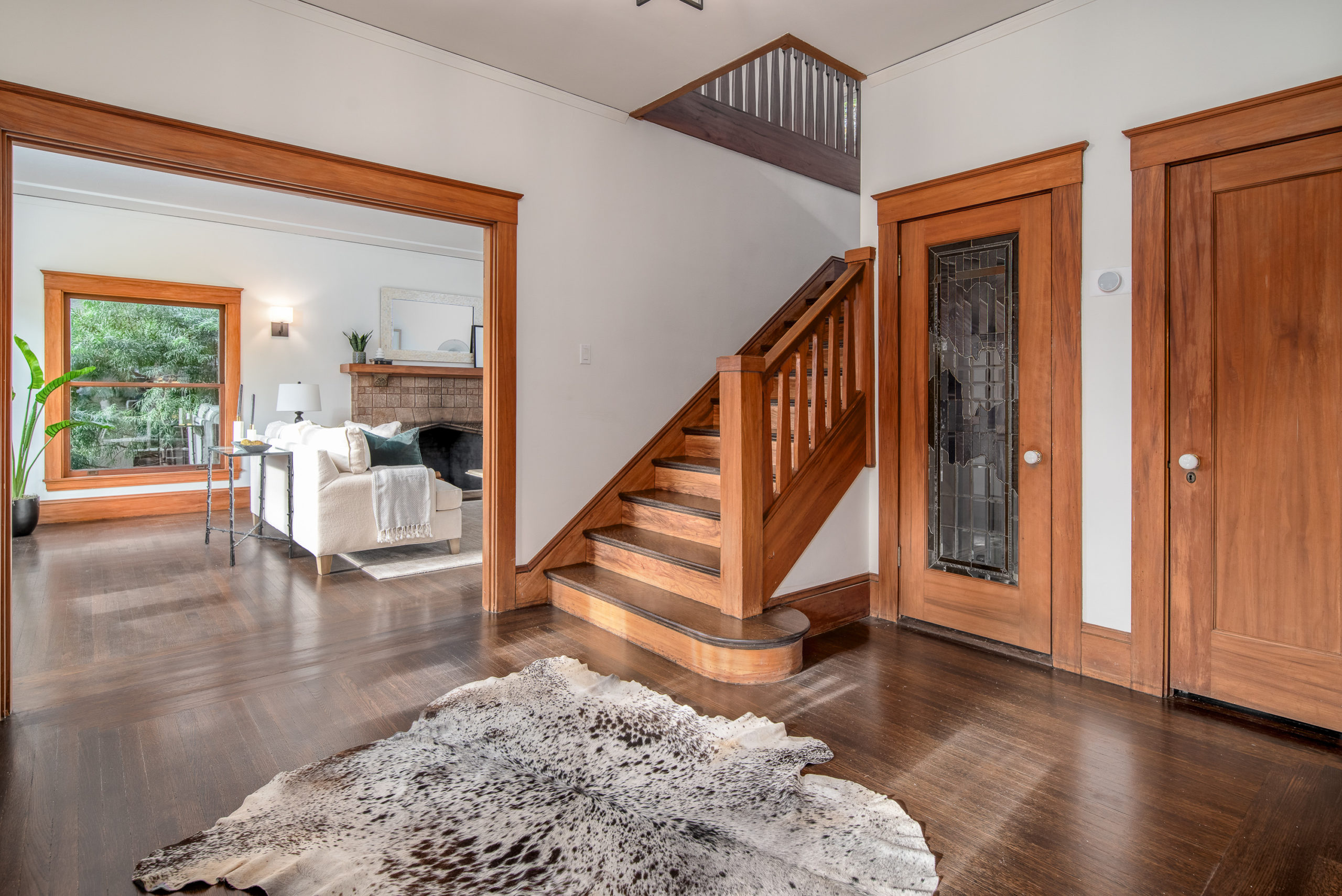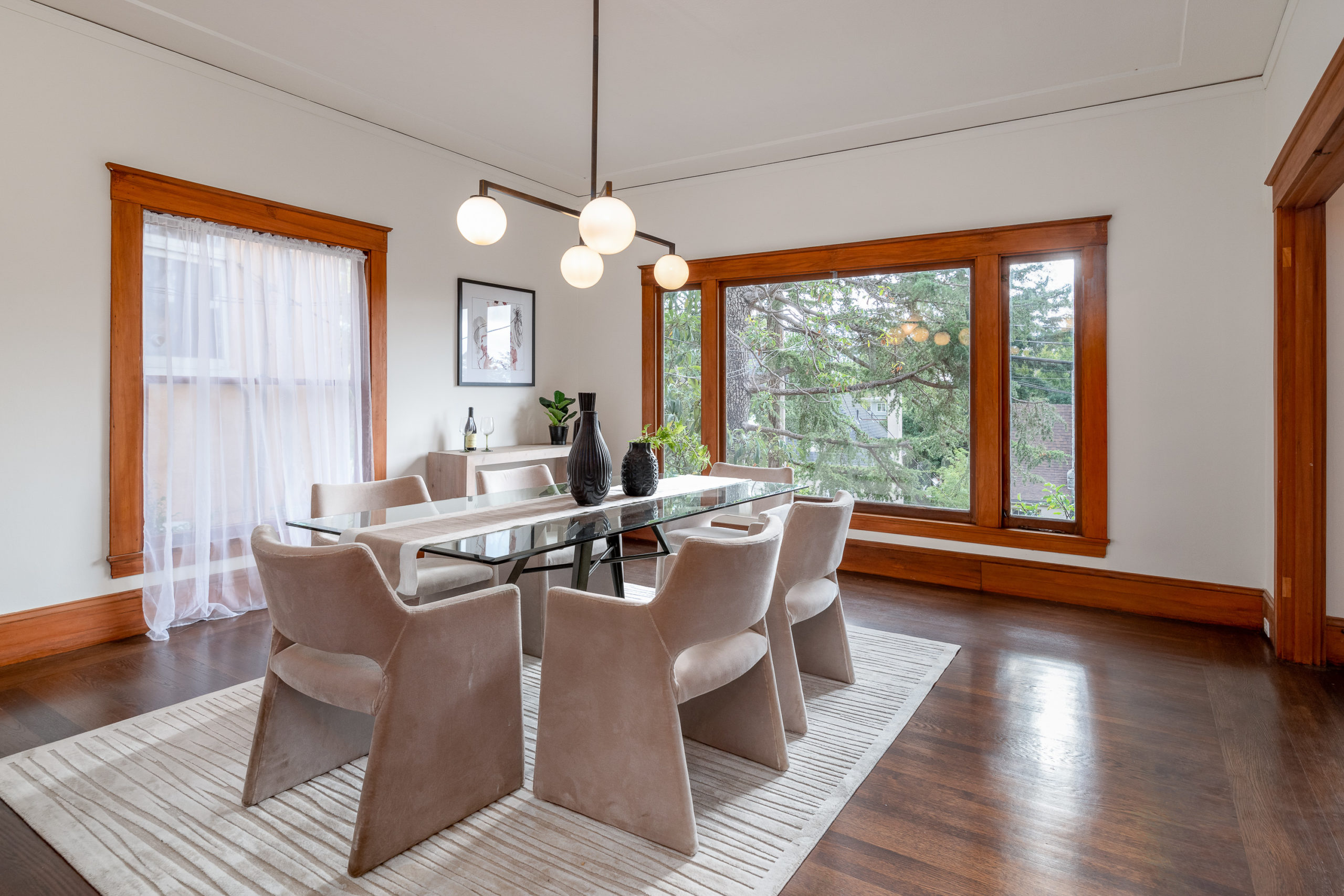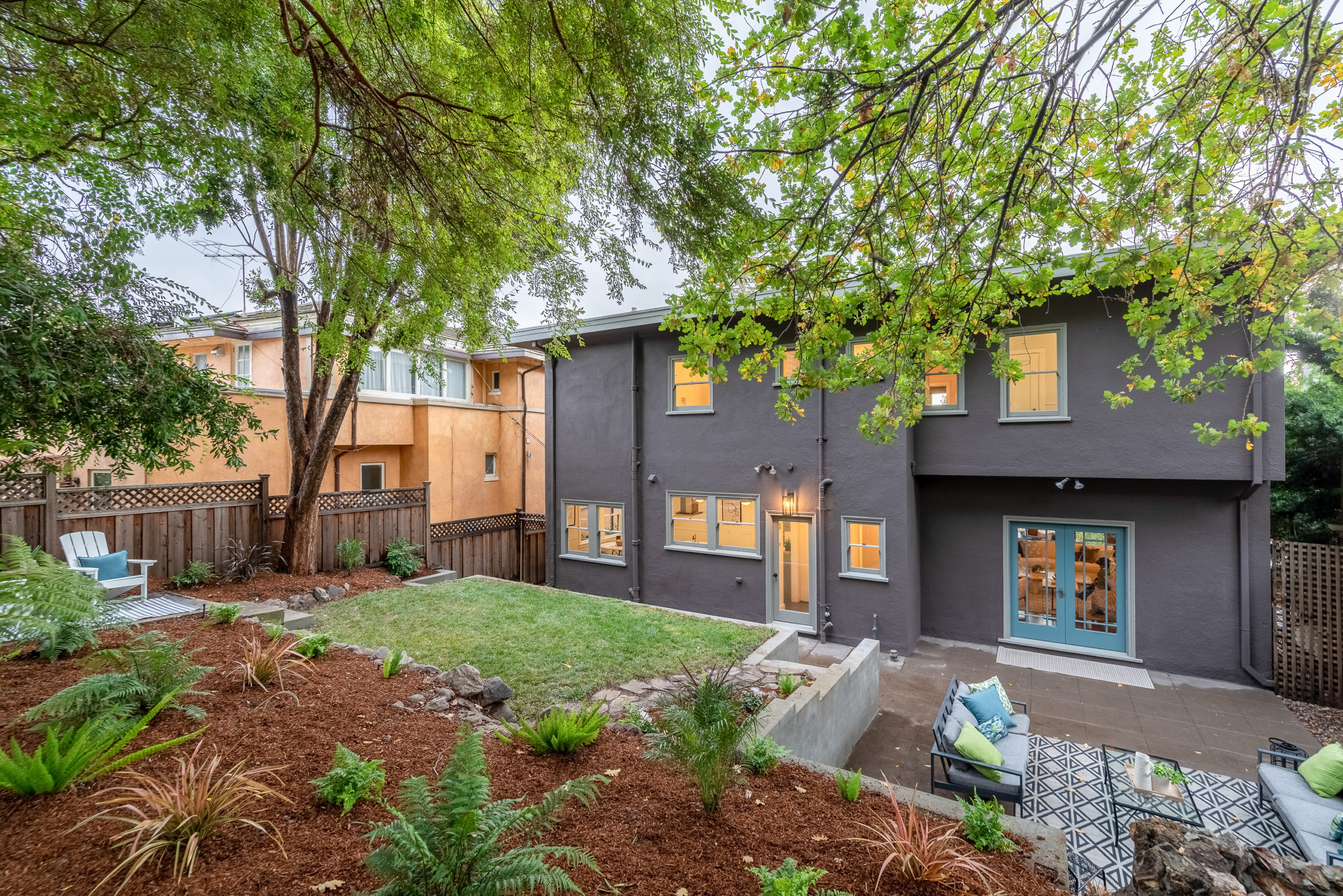 Rare Crocker Highlands Prairie Style Craftsman, just blocks from the award winning elementary offering both commanding neighborhood views and abundant privacy. Exterior stairs lead to a delightful covered front porch and into an impressive foyer that lends to the homes magnificent scale and quality. Pristine trim and moldings, high ceilings and artisan boxed ceilings are centered by a magnificent Craftsman staircase. The living room is planked with original Oak hardwoods and anchored by a handsome fireplace. French doors from the room open to the rear gardens, perfect for entertaining. The elegant formal dining room is large enough for the biggest of upcoming holiday gatherings and boasts a pristine original built-in buffet with cabinets and leaded glass. Doors from the dining room lead you to the chef’s eat-in kitchen. Freshly updated with stone counters and a door leading to the rear patio, this kitchen is sure to thrill the epicurean of the household. Heading back to the foyer, the Mission Style Arts and Crafts bannister leads you up the staircase, arriving at the spacious upper landing with sun room that acts as a lounge, home office or play area. With all bedrooms upstairs, the primary suite is overly spacious with updated bathroom and large walk-in closet. Two additional bedrooms and cheerful full bathroom with custom tile work are also found on this level. Off the kitchen, you’ll find access to the lower level staircase leading to the laundry room, additional flex area perfect as an office, den or home gym and a door directly to the attached two-car garage. Whether entertaining, relaxing, or enjoying play, the rear gardens offer perfect privacy. The gently rolling lawn and patios are framed by lovely trees and add great privacy. Positioned just blocks from award winning Crocker Highlands Elementary and just minutes to the shops and restaurants of Grand Lake, Lake Merritt and the Bay Bridge to S.F.