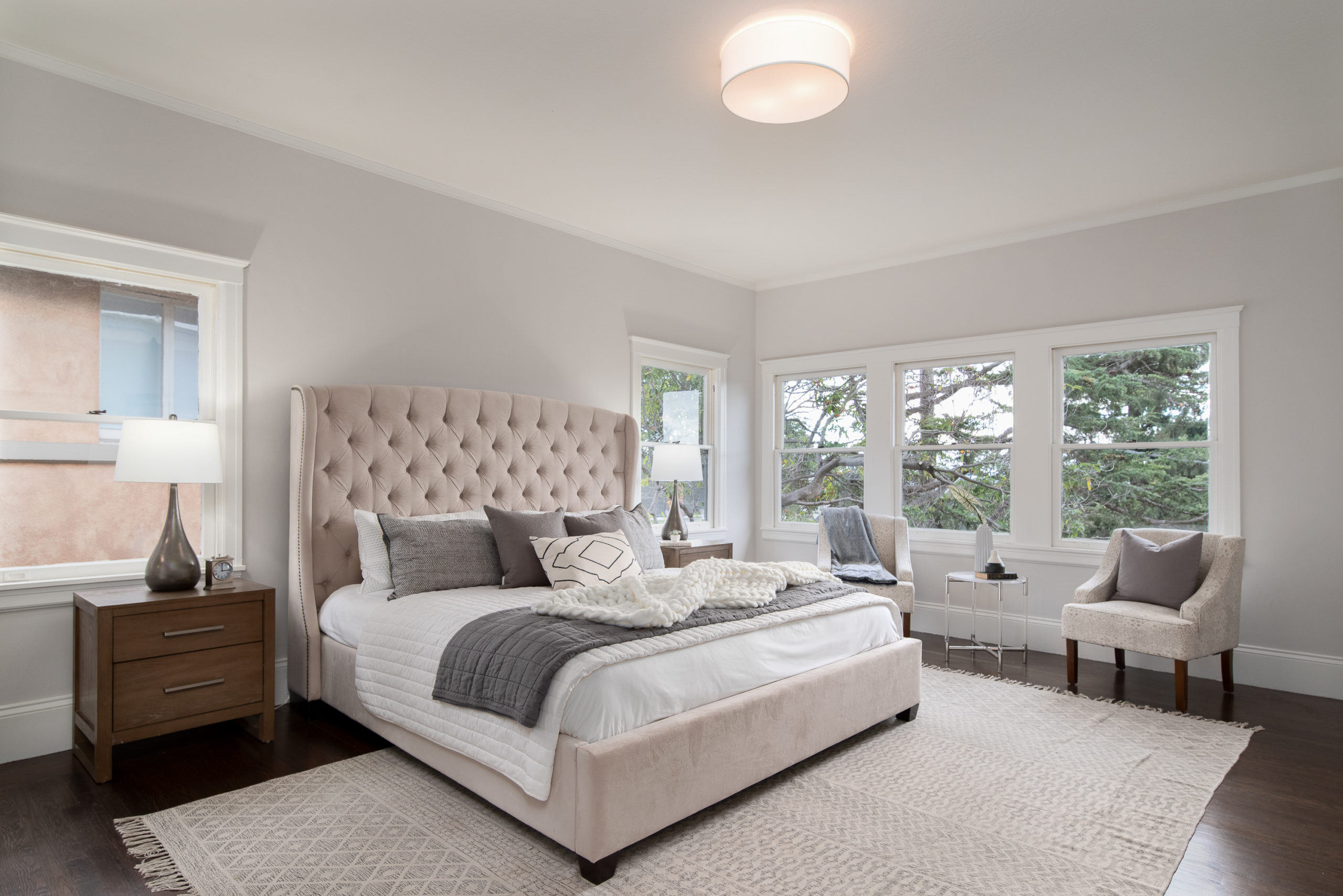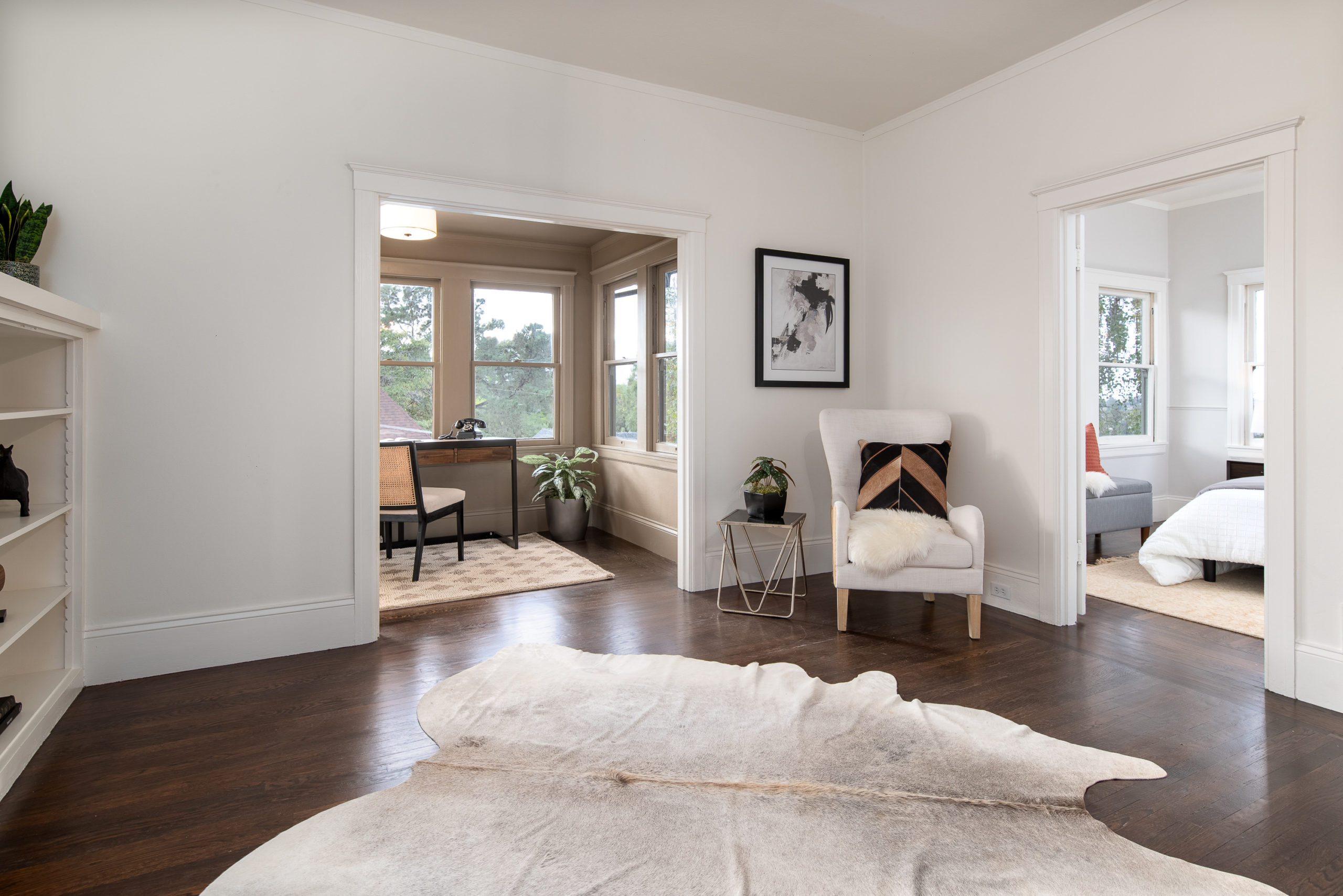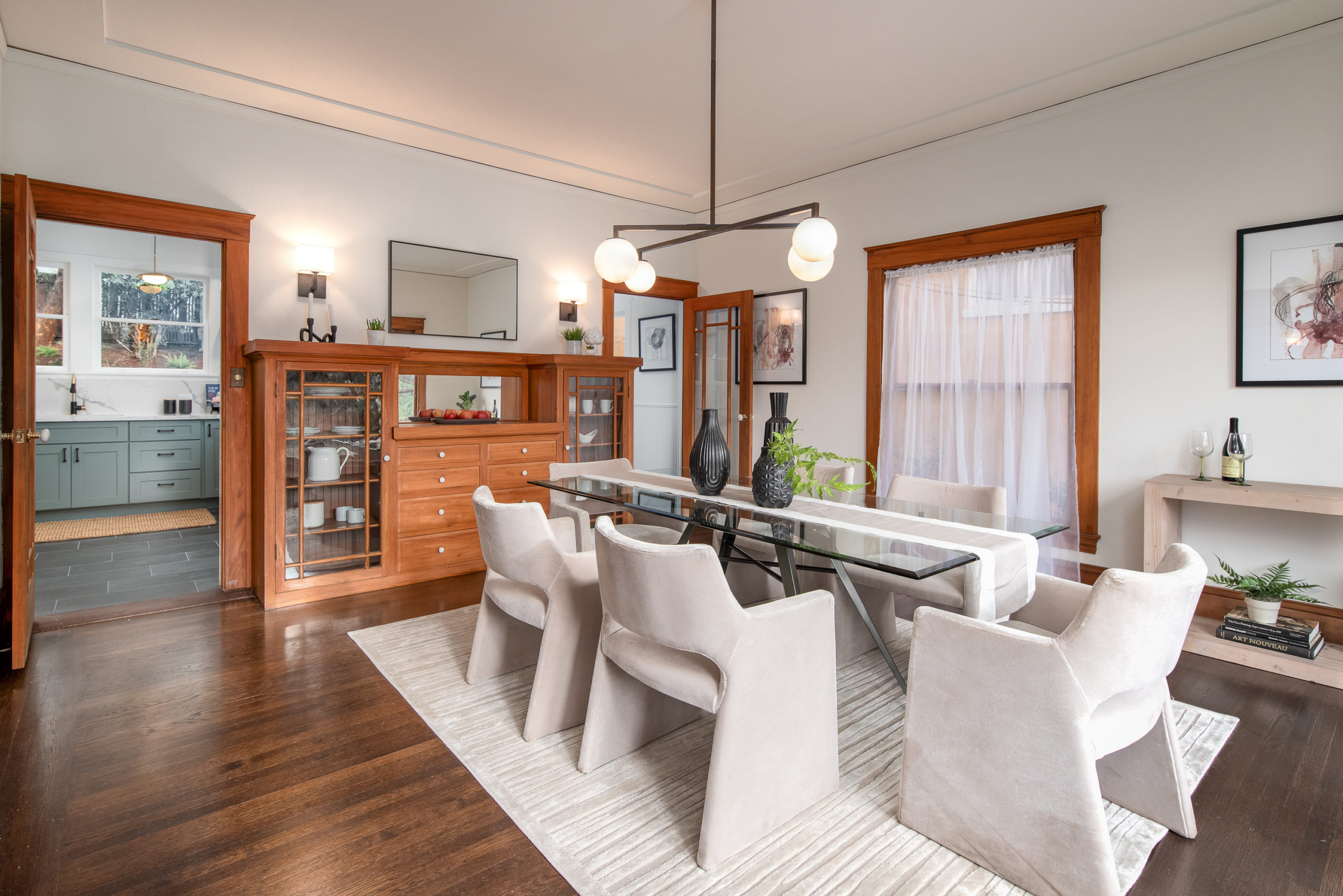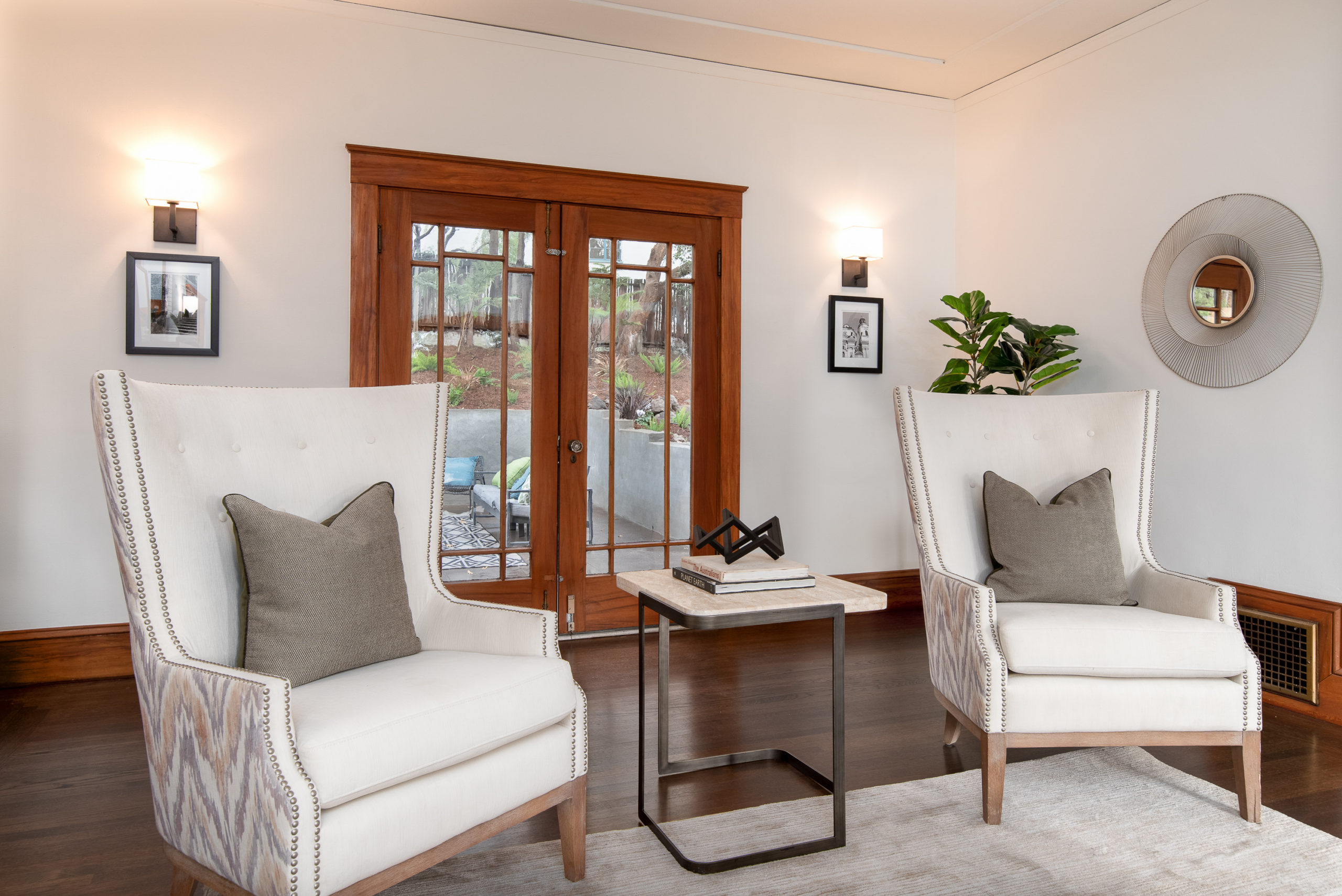 Rare Crocker Highlands Prairie Style Craftsman, just blocks from the award winning elementary offering both commanding neighborhood views and abundant privacy. Exterior stairs lead to a delightful covered front porch and into an impressive foyer that lends to the homes magnificent scale and quality. Pristine trim and moldings, high ceilings and artisan boxed ceilings are centered by a magnificent Craftsman staircase. The living room is planked with original Oak hardwoods and anchored by a handsome fireplace. French doors from the room open to the rear gardens, perfect for entertaining. The elegant formal dining room is large enough for the biggest of upcoming holiday gatherings and boasts a pristine original built-in buffet with cabinets and leaded glass. Doors from the dining room lead you to the chef’s eat-in kitchen. Freshly updated with stone counters and a door leading to the rear patio, this kitchen is sure to thrill the epicurean of the household. Heading back to the foyer, the Mission Style Arts and Crafts bannister leads you up the staircase, arriving at the spacious upper landing with sun room that acts as a lounge, home office or play area. With all bedrooms upstairs, the primary suite is overly spacious with updated bathroom and large walk-in closet. Two additional bedrooms and cheerful full bathroom with custom tile work are also found on this level. Off the kitchen, you’ll find access to the lower level staircase leading to the laundry room, additional flex area perfect as an office, den or home gym and a door directly to the attached two-car garage. Whether entertaining, relaxing, or enjoying play, the rear gardens offer perfect privacy. The gently rolling lawn and patios are framed by lovely trees and add great privacy. Positioned just blocks from award winning Crocker Highlands Elementary and just minutes to the shops and restaurants of Grand Lake, Lake Merritt and the Bay Bridge to S.F.