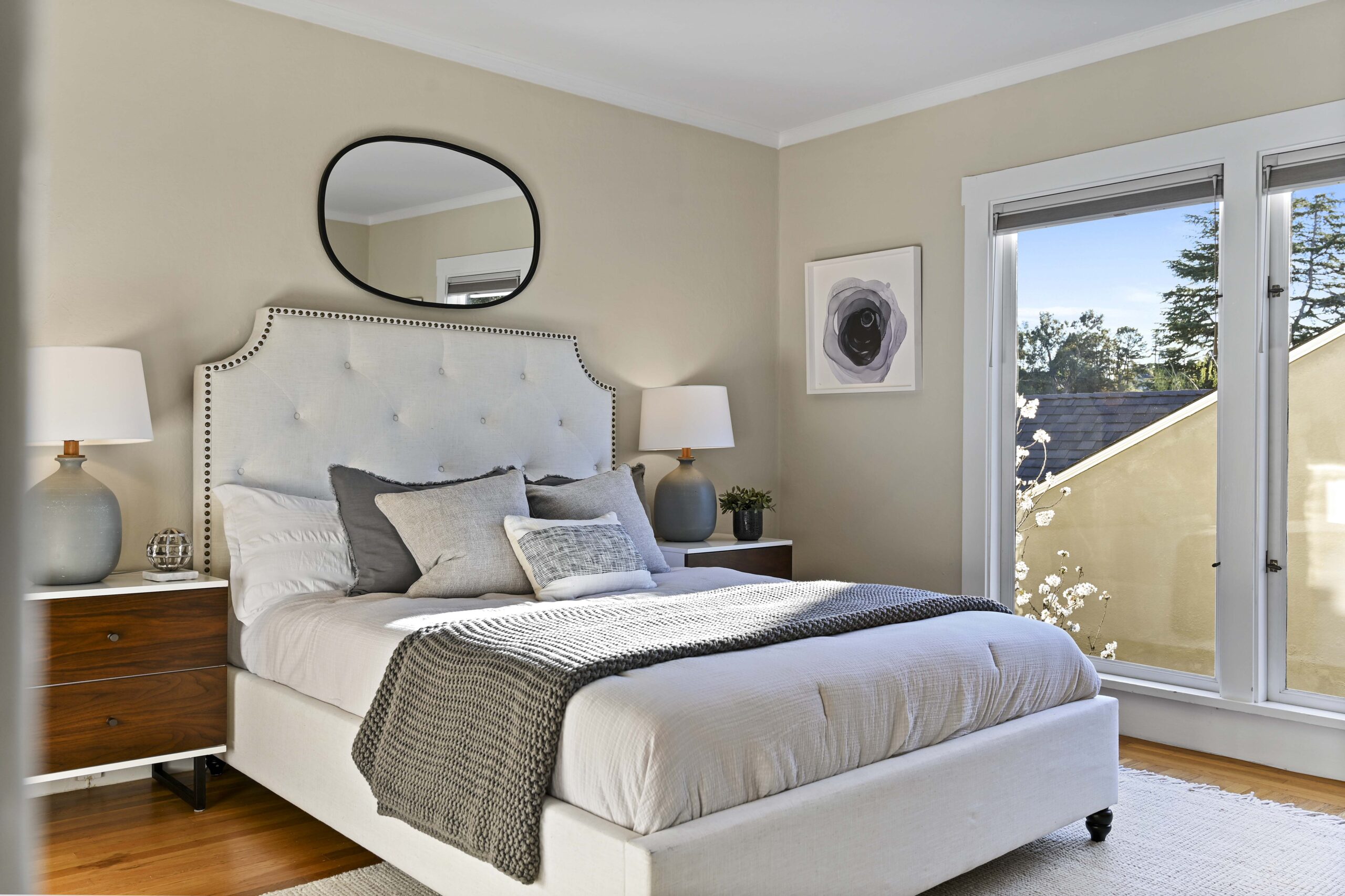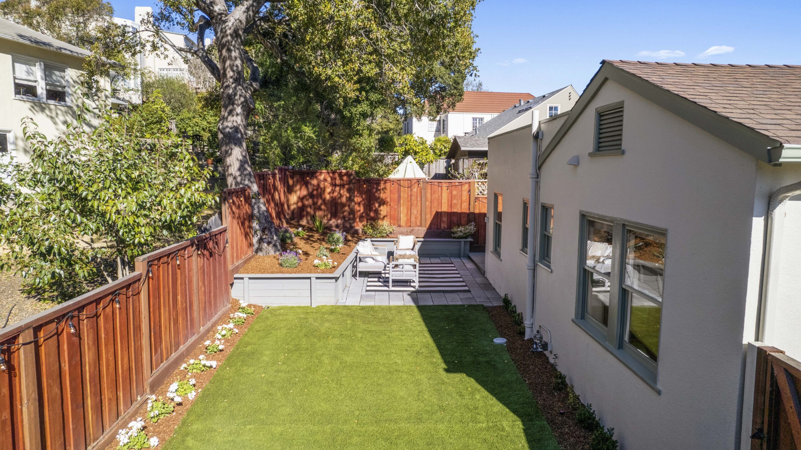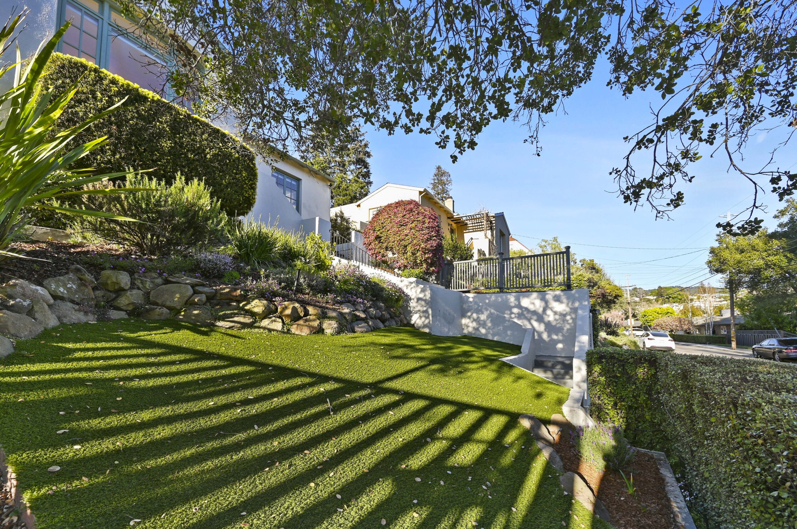 Crocker Highlands jewel just one block from the elementary school. Enjoy abundant natural light combined with neighborhood views and privacy in this delightful storybook retreat. Cheerful living and dining rooms blend with a mix of period details and modern accents. Delightful chef’s kitchen with stone counters and stainless appliances for the epicurean. Primary suite with updated bath featuring modern barn door & frameless glass shower. Private rear gardens perfect for play and entertaining that offers a level out grassy play area and decks and a street level garage. Situated just minutes from the Bay Bridge to San Francisco and under a block from the Transbay bus line to SF. Area attractions include the Saturday Farmers Market, Lake Merritt and the shops and restaurants of Lakeshore and Grand Ave.