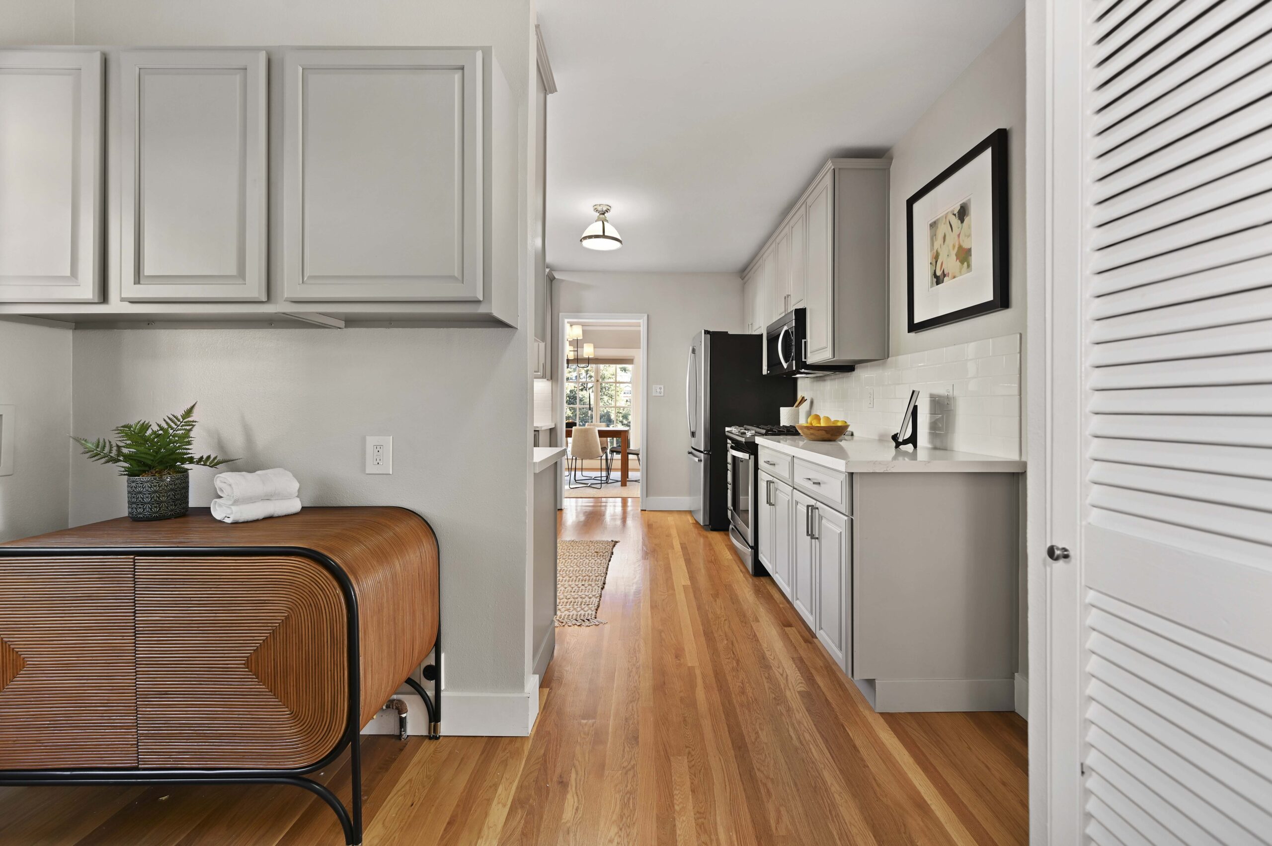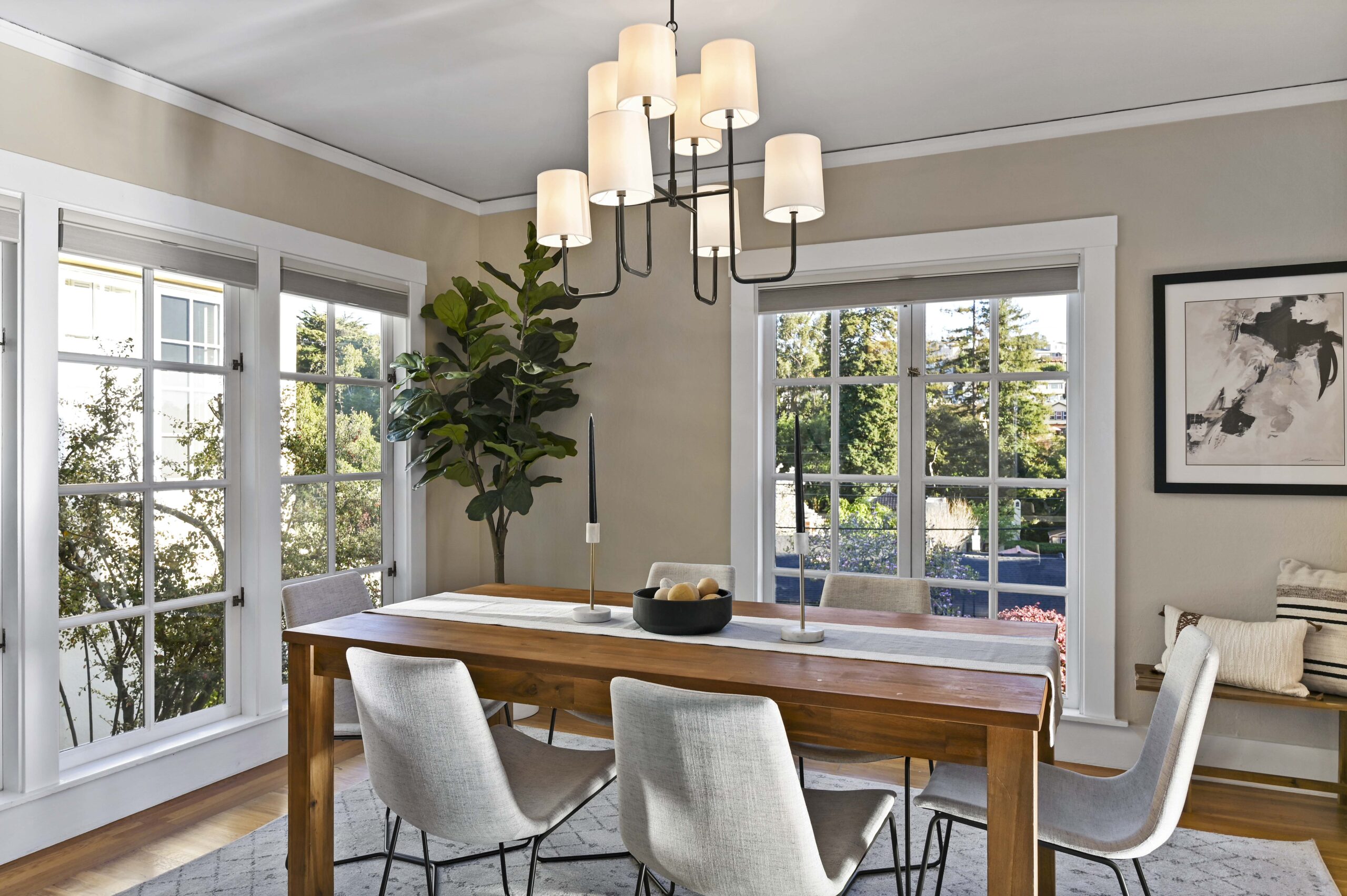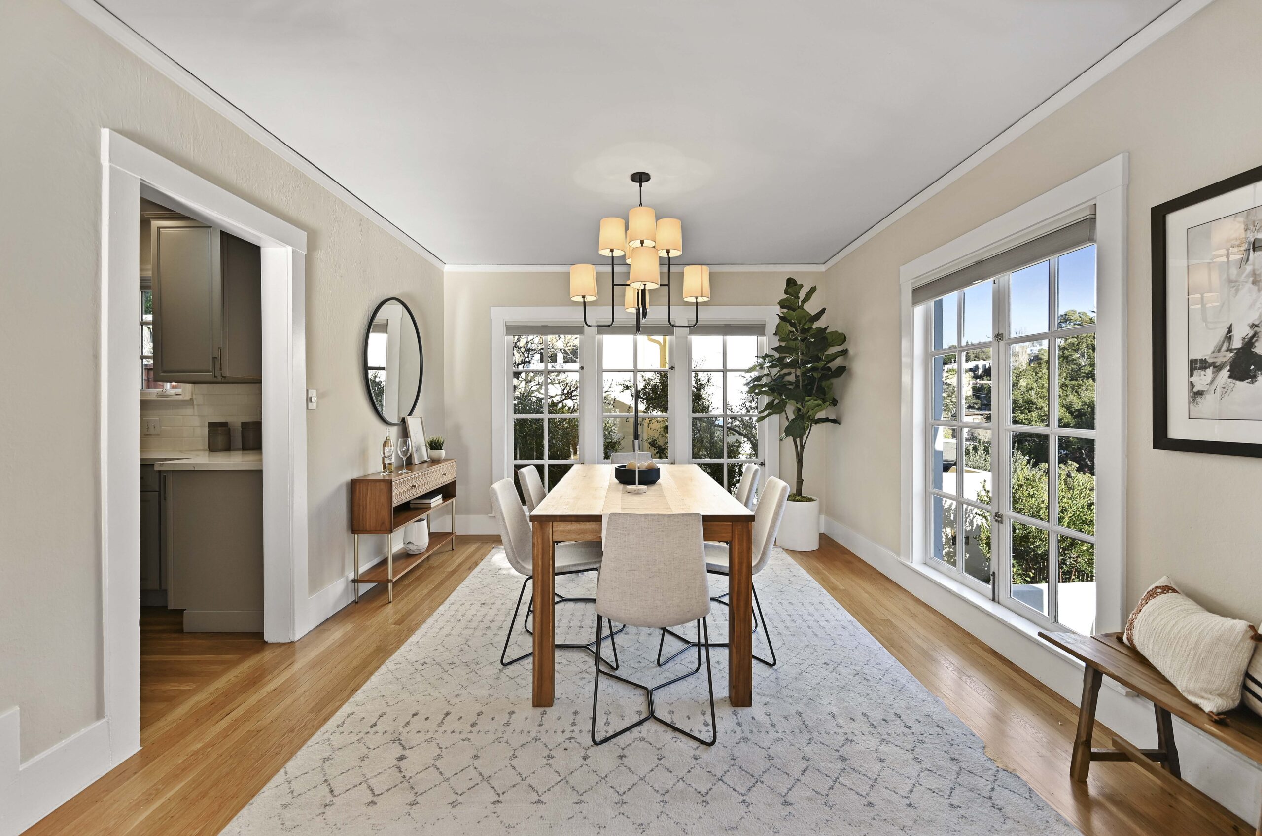 Crocker Highlands jewel just one block from the elementary school. Enjoy abundant natural light combined with neighborhood views and privacy in this delightful storybook retreat. Cheerful living and dining rooms blend with a mix of period details and modern accents. Delightful chef’s kitchen with stone counters and stainless appliances for the epicurean. Primary suite with updated bath featuring modern barn door & frameless glass shower. Private rear gardens perfect for play and entertaining that offers a level out grassy play area and decks and a street level garage. Situated just minutes from the Bay Bridge to San Francisco and under a block from the Transbay bus line to SF. Area attractions include the Saturday Farmers Market, Lake Merritt and the shops and restaurants of Lakeshore and Grand Ave.