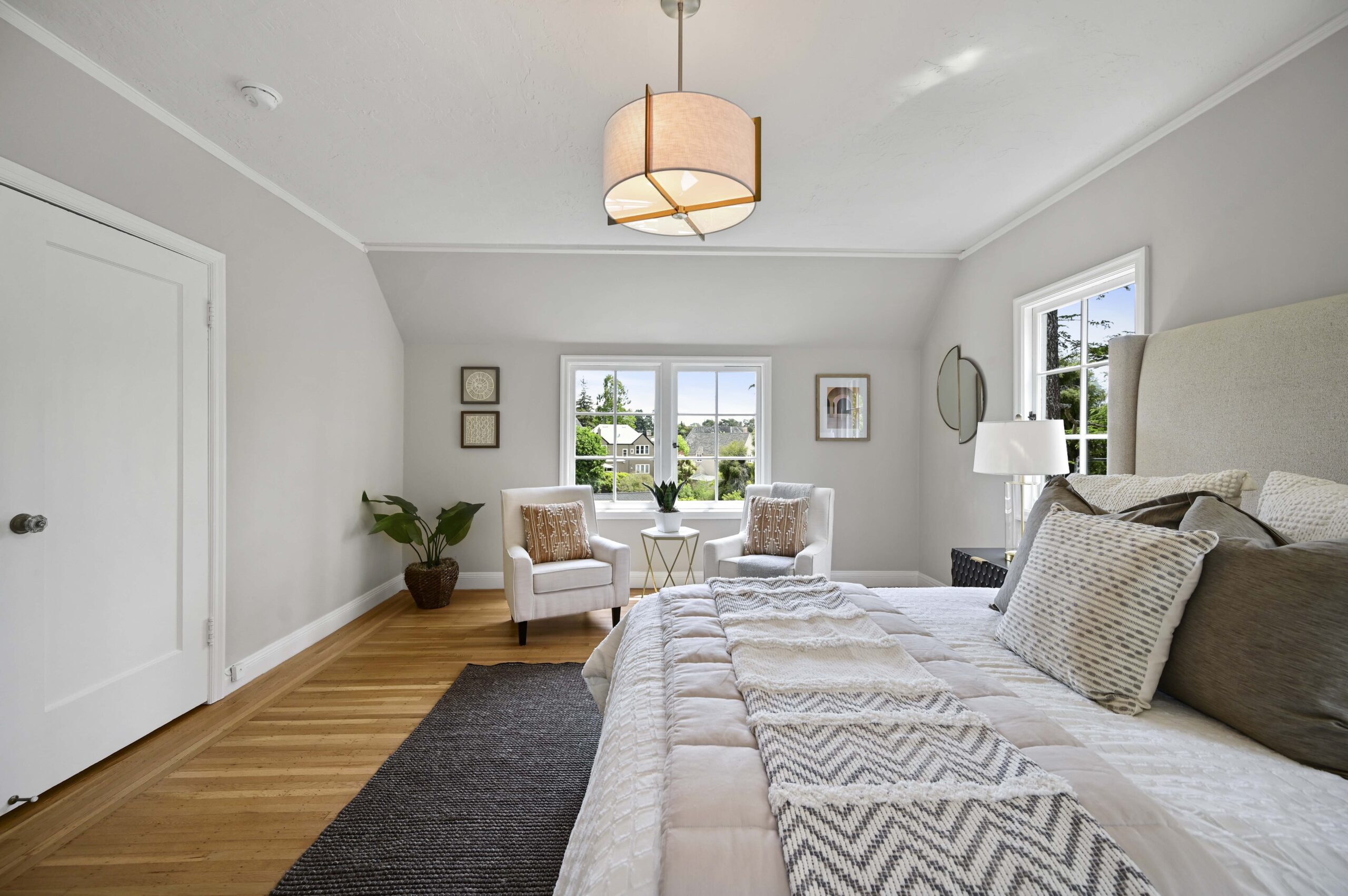 Spacious primary suite, recently refreshed hall bathroom and two additional bedrooms of generous proportion are located on the upper level. An additional plus space on the lower level of the home offers a door leading out to the lush front gardens and grounds perfect for gatherings. Located just blocks from the award-winning Crocker Highlands Elementary, the shops and restaurants of Lakeshore and Grand, and a lovely swing in the green space across the street!