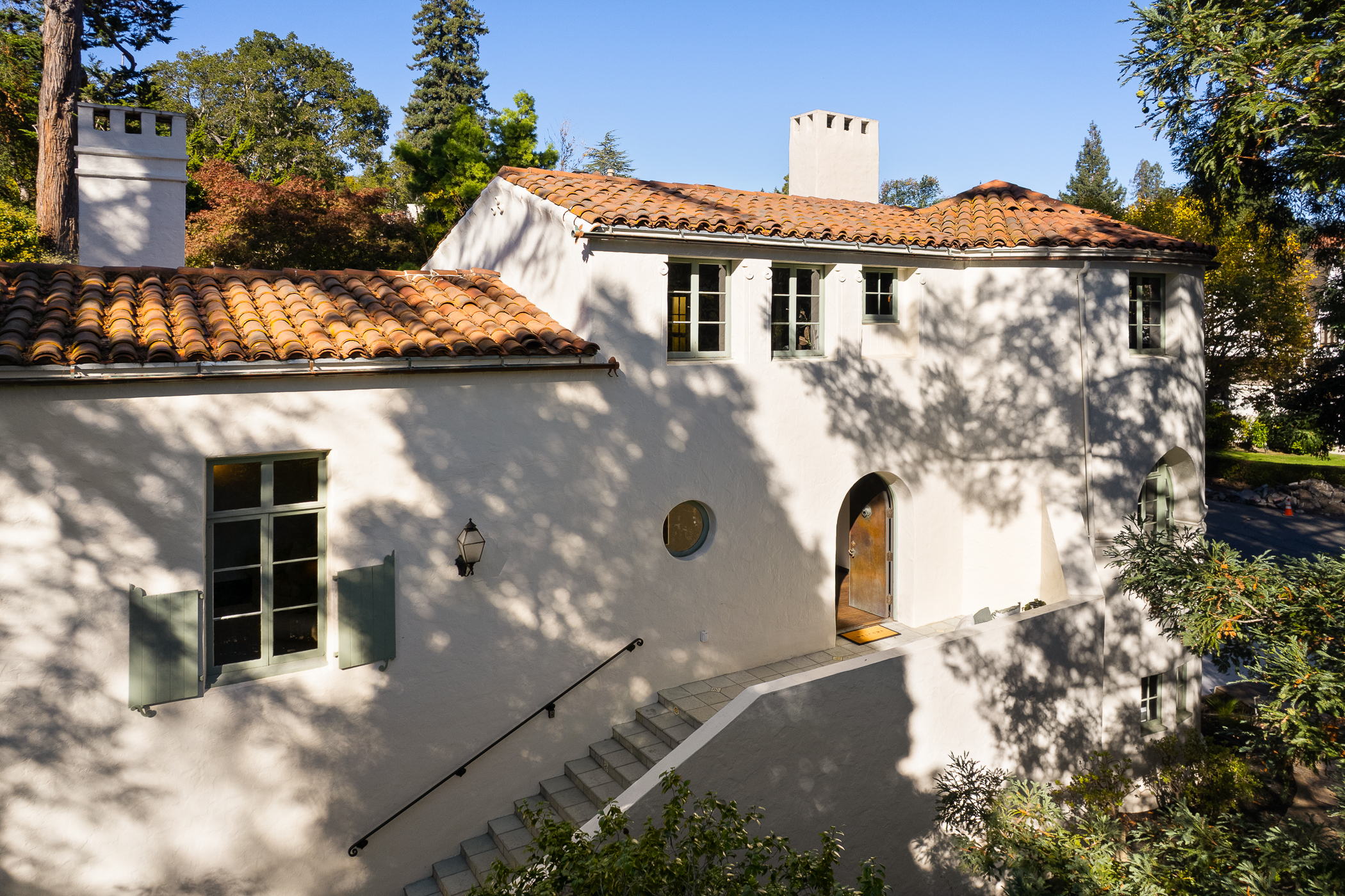 Welcome to 953 Grosvenor Place.ย Exceptional Spanish Revival designed by Lionel Henry Pries, blending timeless architecture with modern comfort in coveted Crocker Highlands. Nestled among tall evergreens, this light-filled home features white stucco walls, a red clay tile roof, arched divided-light windows and a charming arched entry framed by wrought-iron accents. In the luminous grand living room an artisan-forged centerpiece chandelier evokes old-world romance and Moorish elegance beneath vaulted ceilings and exposed beams, complete with fireplace. The formal dining room sits in a dramatic octagonal turret, while the chefโs kitchen offers quartz countertops, custom cabinetry, a pro-grade Bertazzoni range and breakfast bar. A main-level ensuite bedroom featuring a wood burning fireplace doubles as guest suite, au pair space, or den, opening to a private patio with brick fireplace. Upstairs lives a serene primary suite plus additional ensuite bedroom with lounge nook. The bathrooms feature a mix of marble, hexagon tile, Venetian plaster and modern fixtures. The lower level includes a spacious garage ideal as gym/flex space, a separate laundry room and additional storage. Near Crocker Highlands Elementary, Lake Merritt, shops & SF access.